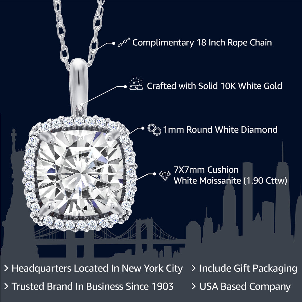 EXCEPTIONAL MOISSANITE BRILLIANCE: Elevate your elegance with this stunning pendant necklace featuring a 1.90 Cttw cushion-cut 7MM Moissanite. Moissanite's exceptional brilliance and fire make it a brilliant and ethical alternative to traditional diamonds.