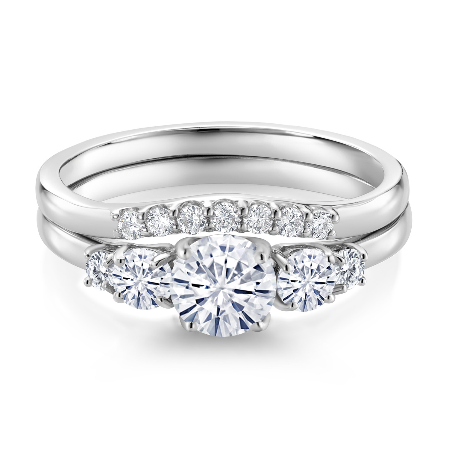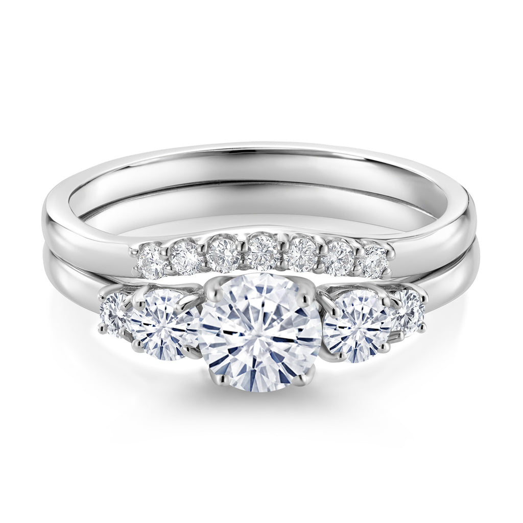 EXQUISITE WHITE MOISSANITE AND DIAMOND ENSEMBLE: This luxurious ring set features a brilliant combination of white moissanite and lab-grown diamonds, totaling 0.81 Cttw. Centered around a 5MM round moissanite, flanked by round moissanites measuring 3MM and round Lab Grown diamonds measuring 1.4MM this ensemble sparkles with unmatched brilliance, offering a cost-effective yet dazzling alternative to traditional diamonds.