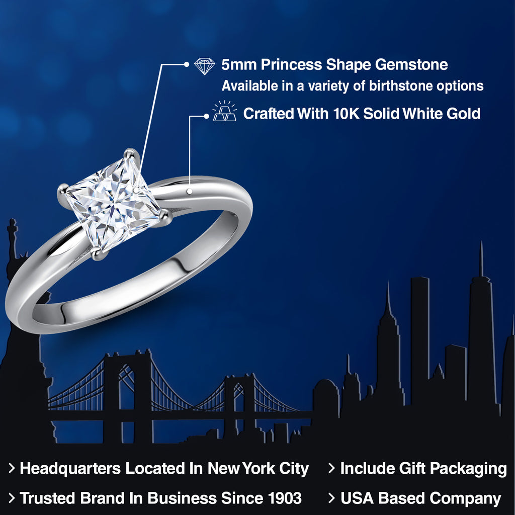 PRINCESS-CUT 5MM GEMSTONE ELEGANCE: Adorned with a stunning 5MM princess-cut gemstone, this engagement ring captures the essence of elegance and sophistication. Each gemstone is expertly cut to maximize its brilliance, ensuring a captivating sparkle that is sure to turn heads. Available in a variety of birthstones, this ring allows for a personalized touch, making it a perfect choice for those seeking a unique and meaningful piece of jewelry.