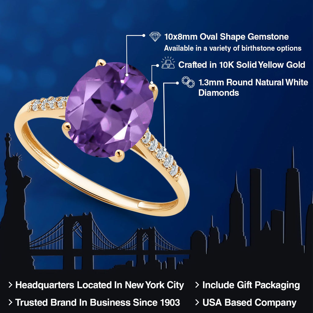 2-3 Cttw Oval Gemstone Birthstone and White Diamond Engagement Ring for Women | 10K Yellow Gold | Yellow Gold Ring For Women | Oval 10X8MM | Available in Size 5 - 9