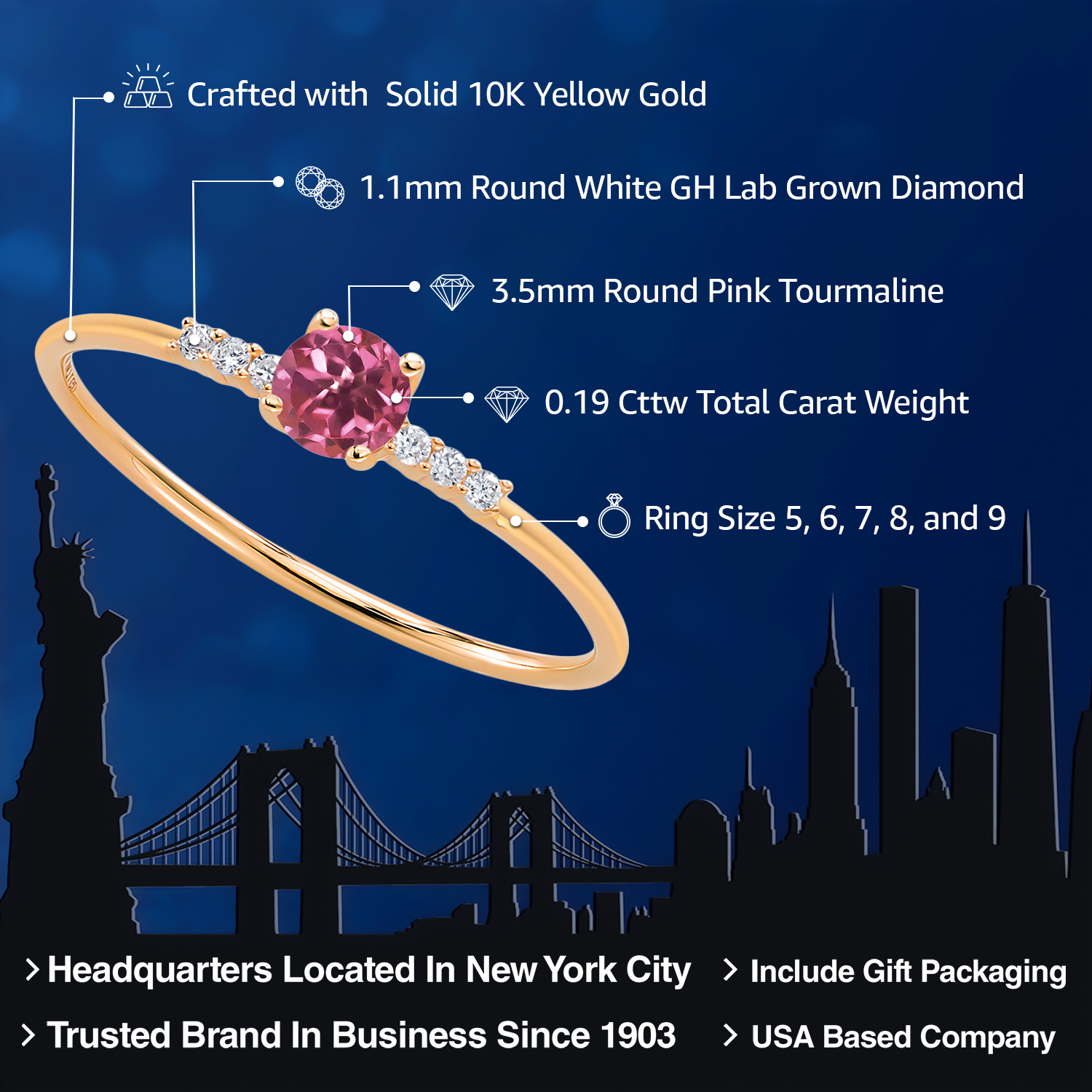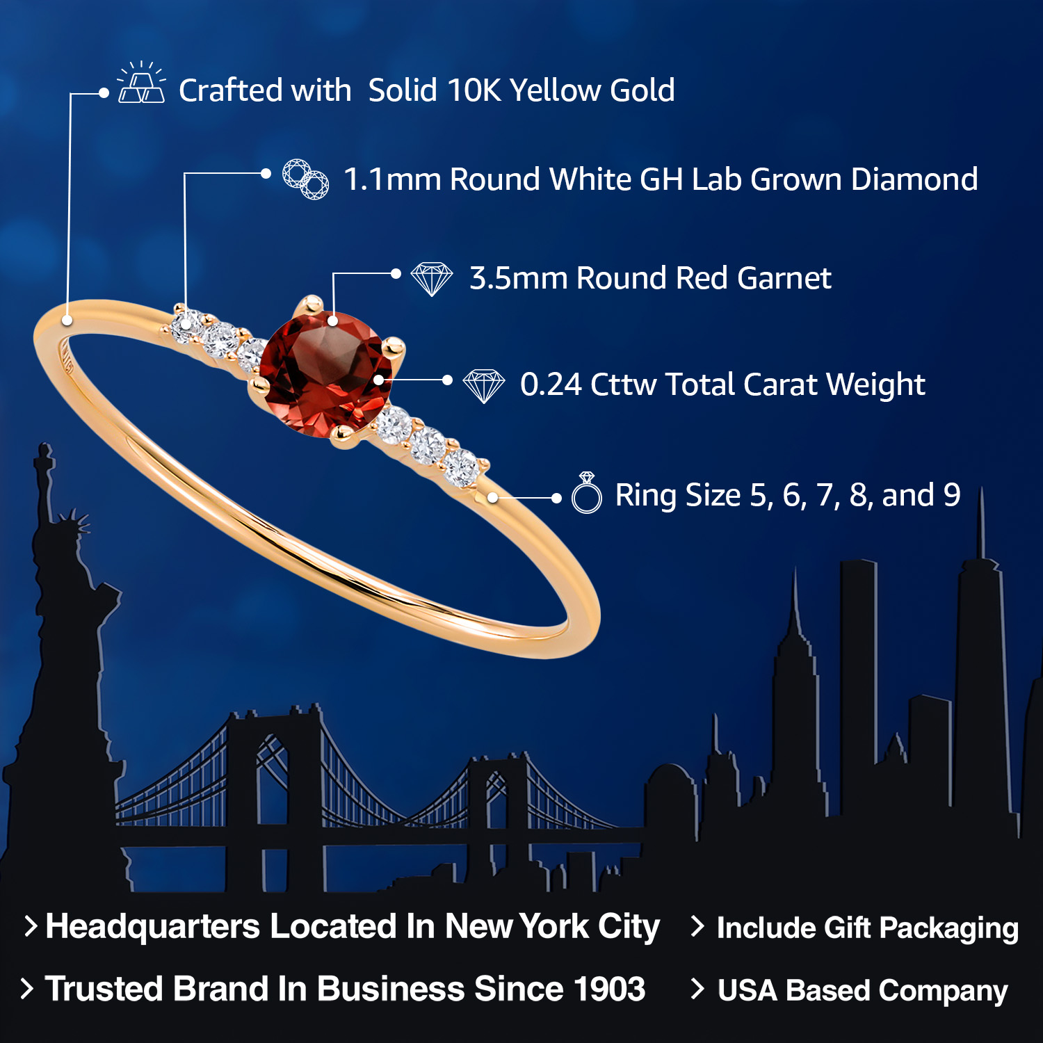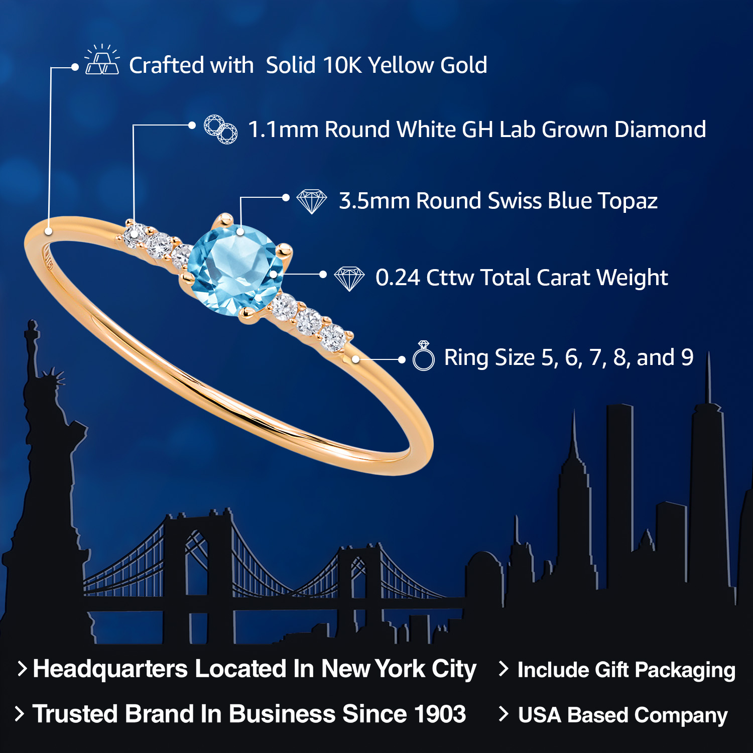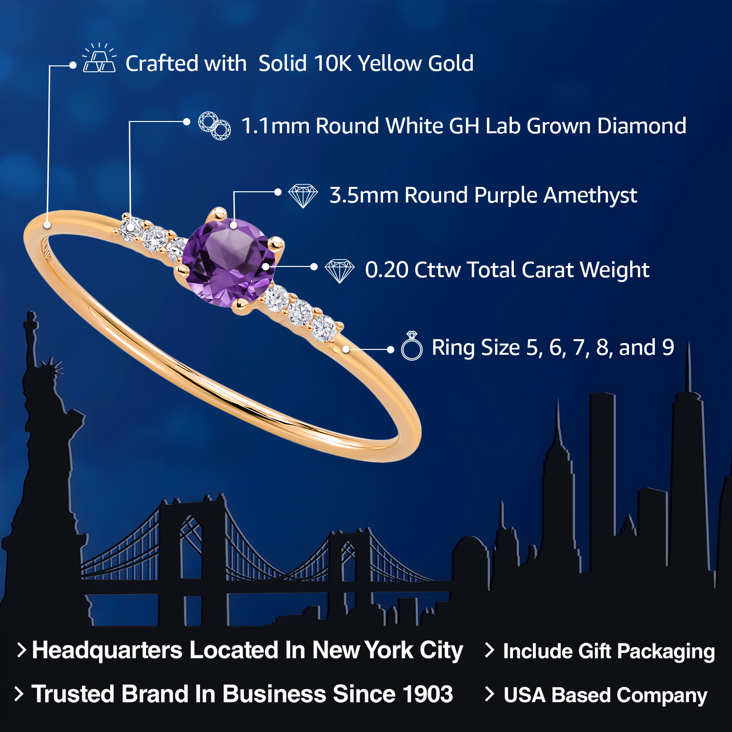 EXCEPTIONAL QUALITY AND CRAFTSMANSHIP: This elegant engagement ring features a 3.5MM round gemstone birthstone, beautifully accented by sparkling white lab-grown diamonds. Crafted from high-quality 10K yellow gold, this ring ensures durability and a luxurious finish, making it a timeless addition to any jewelry collection.