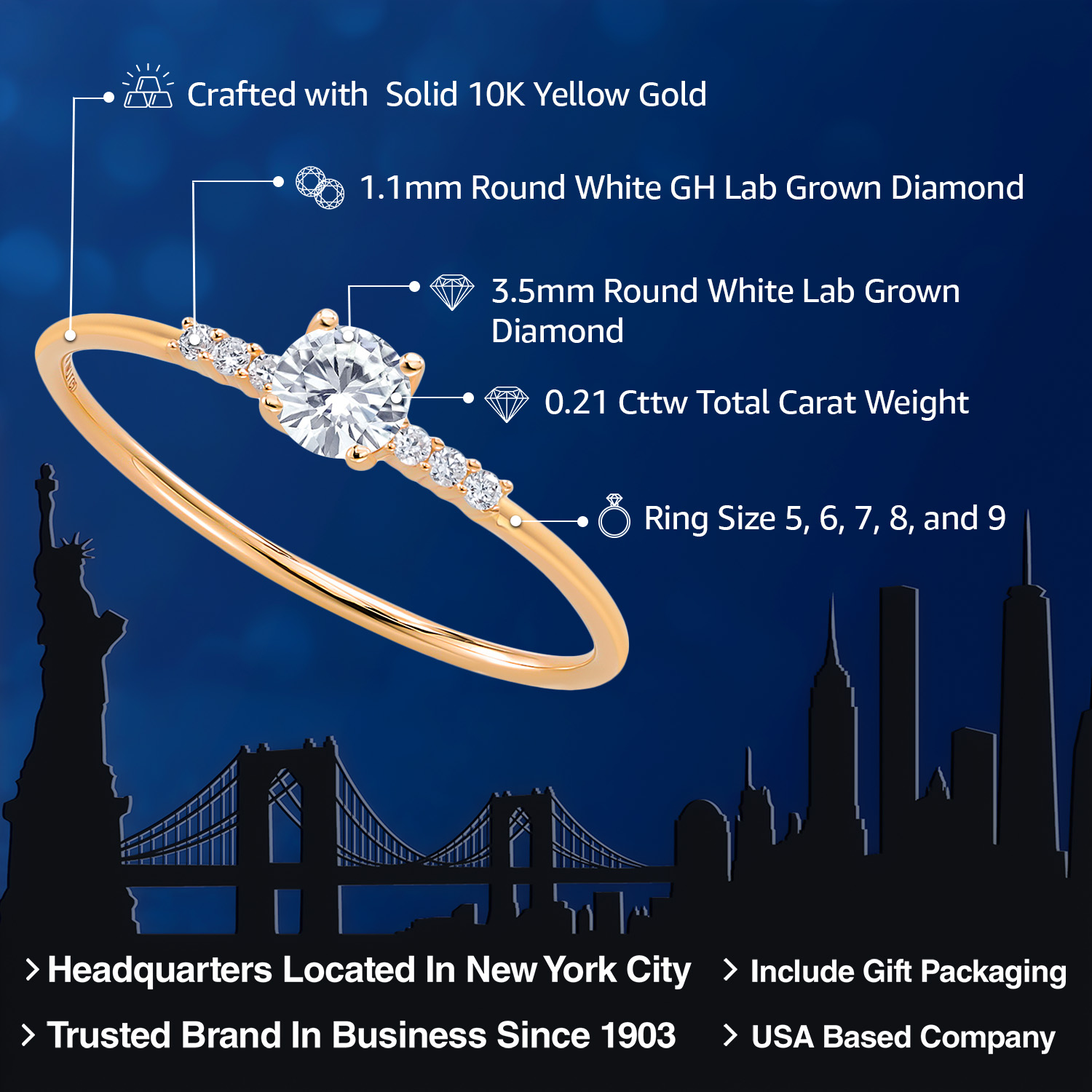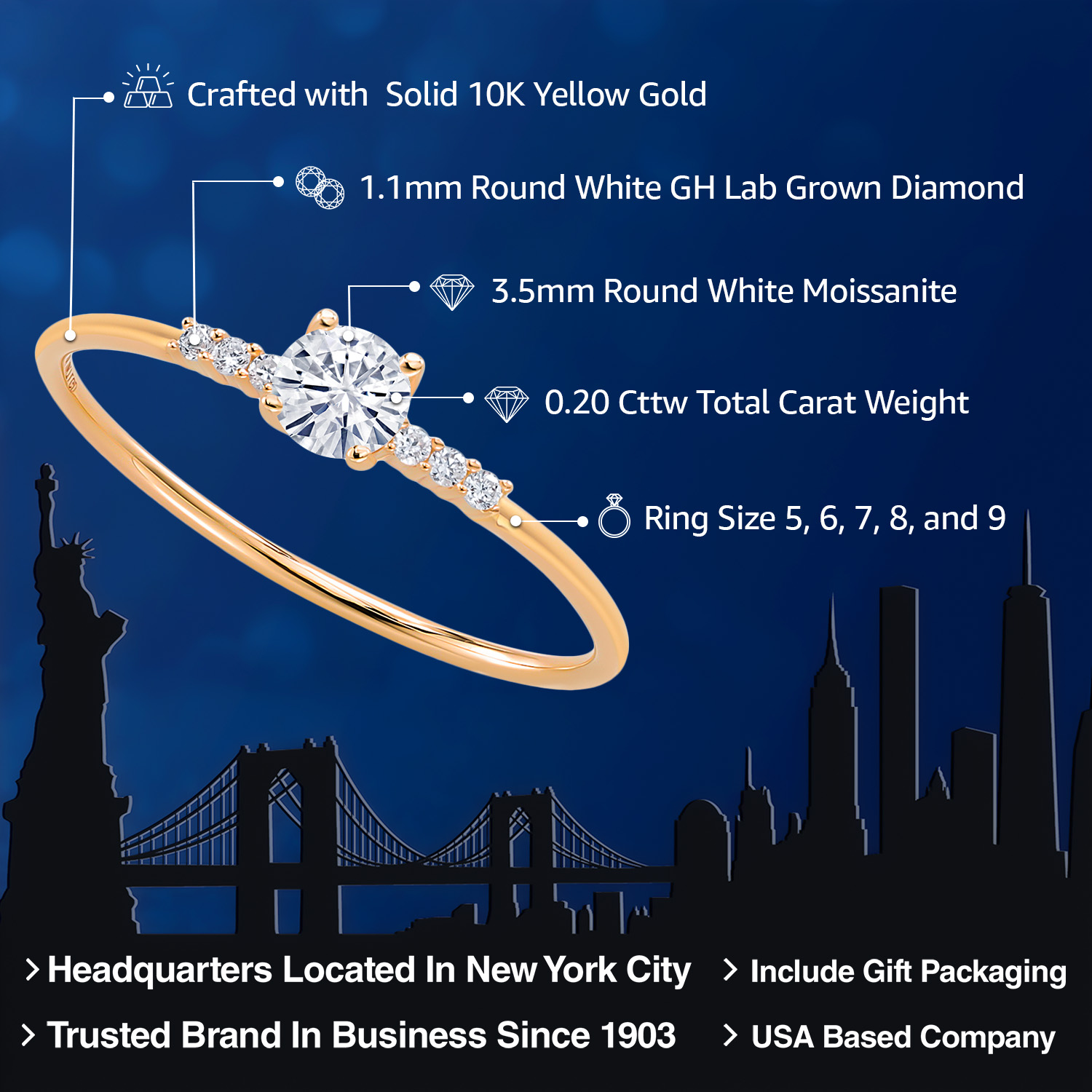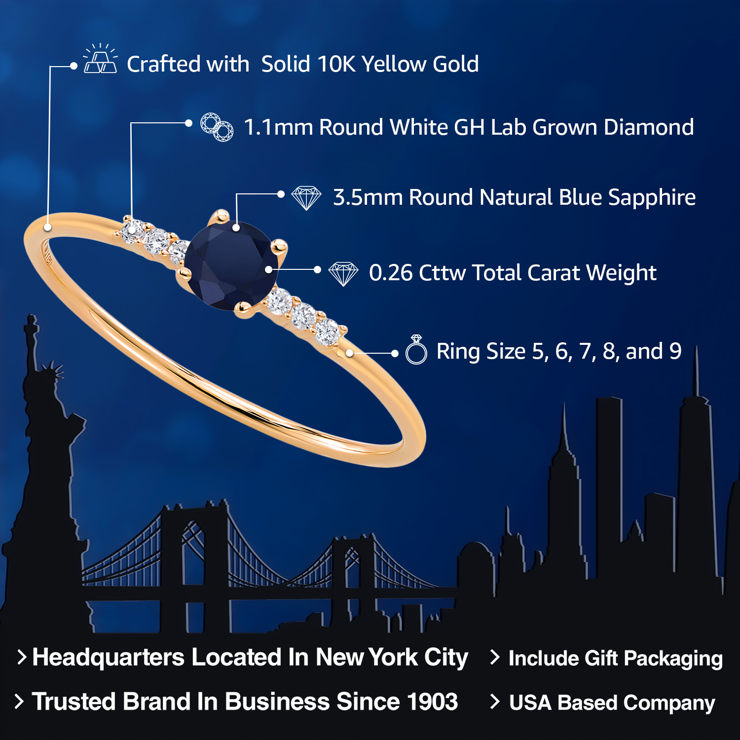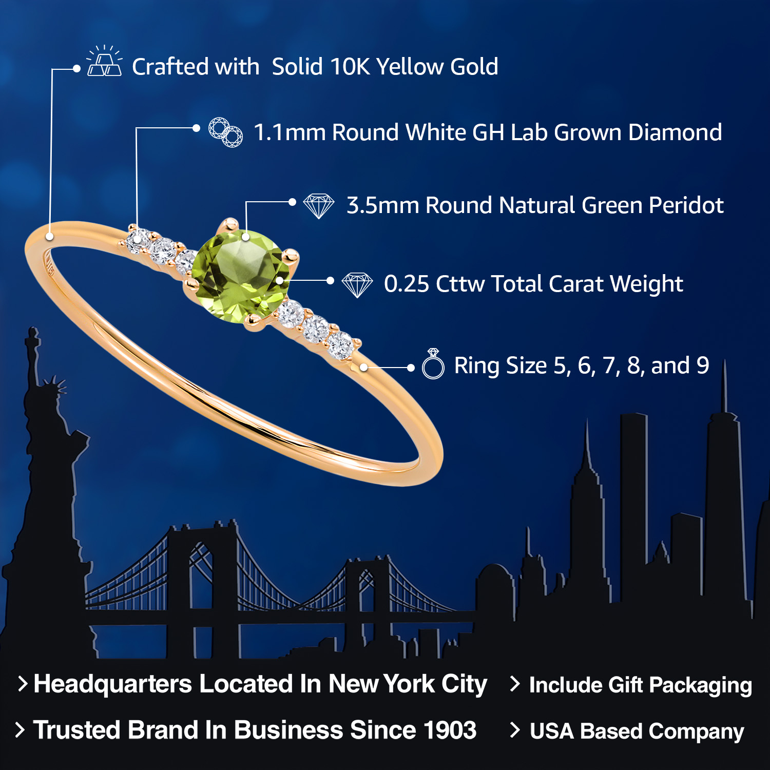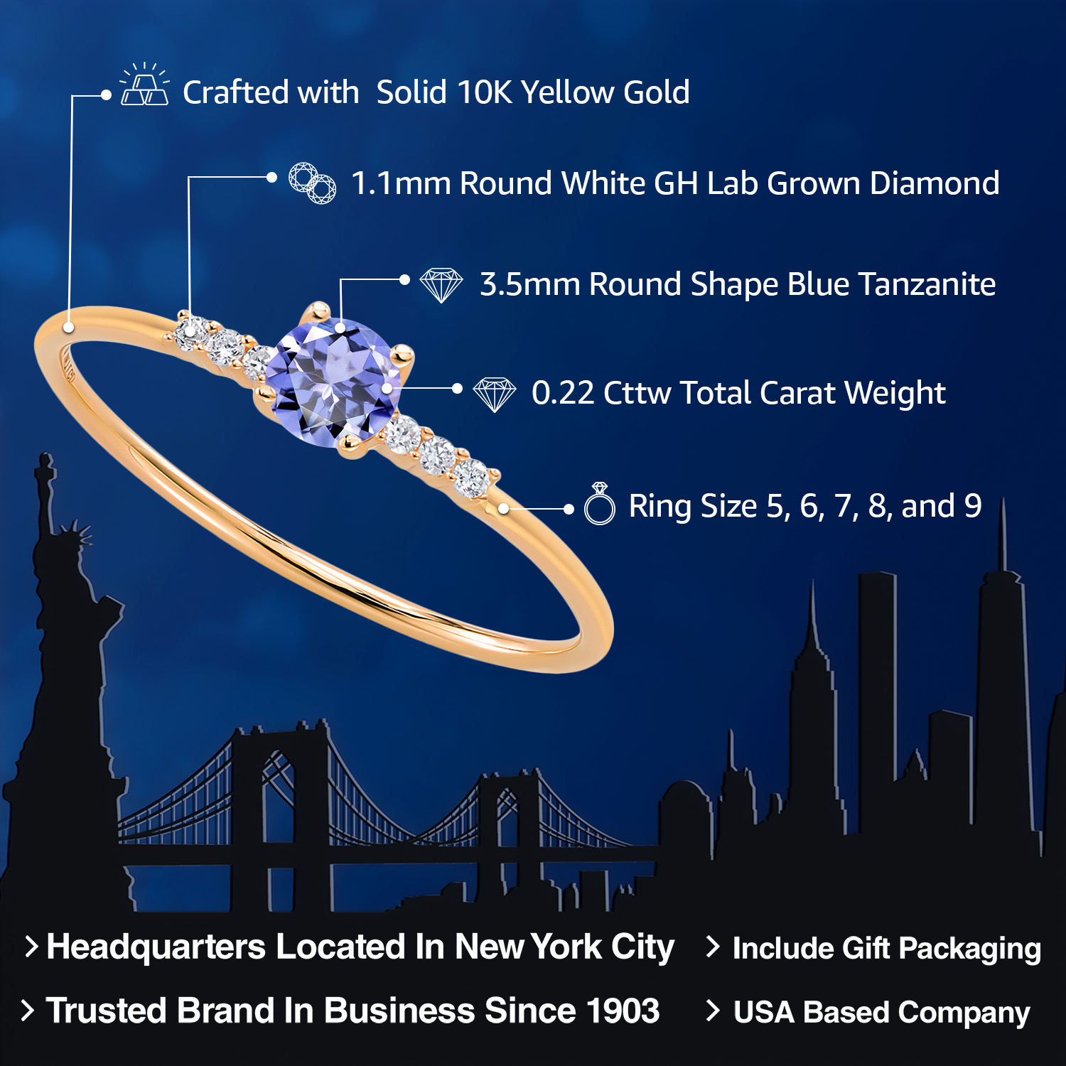 EXCEPTIONAL QUALITY AND CRAFTSMANSHIP: This elegant engagement ring features a 3.5MM round gemstone birthstone, beautifully accented by sparkling white lab-grown diamonds. Crafted from high-quality 10K yellow gold, this ring ensures durability and a luxurious finish, making it a timeless addition to any jewelry collection.