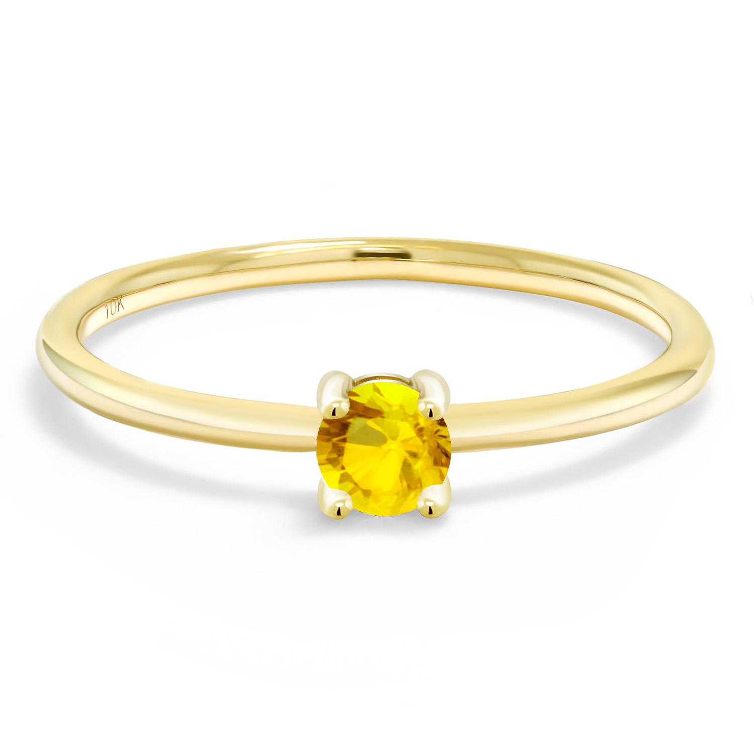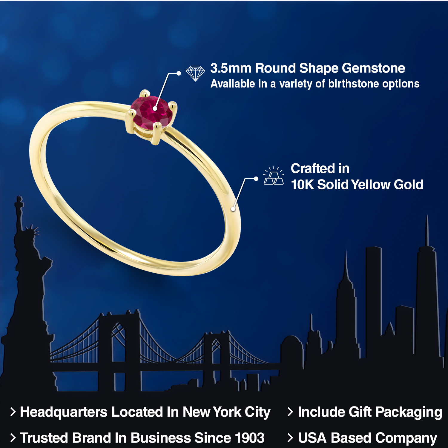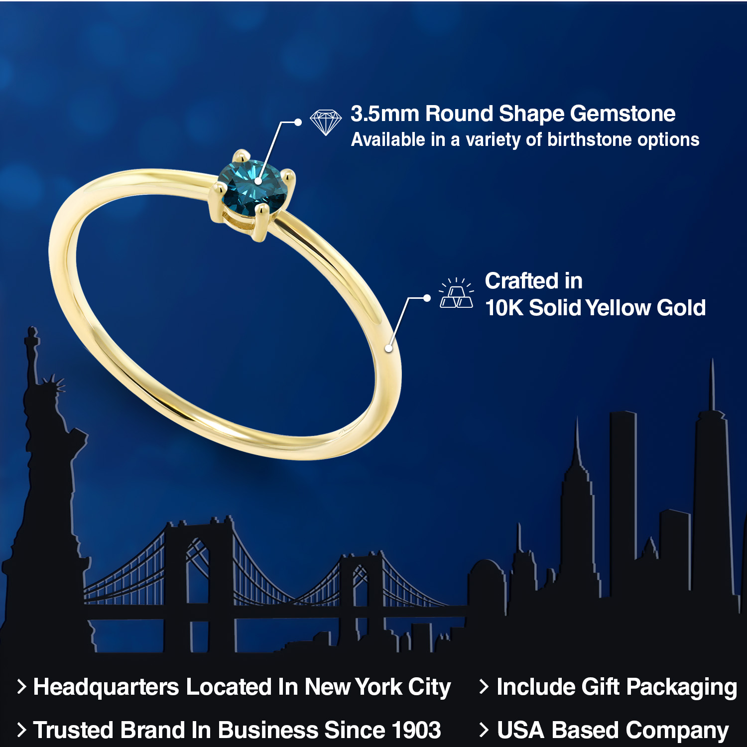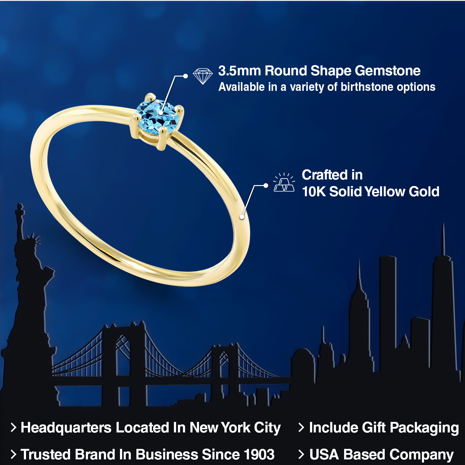 10K Yellow Gold 3.5MM Round Gemstone Birthstone Solitaire Engagement Ring | Wedding Anniversary Promise Gold Ring For Women | Available In Size 5, 6, 7, 8, 9