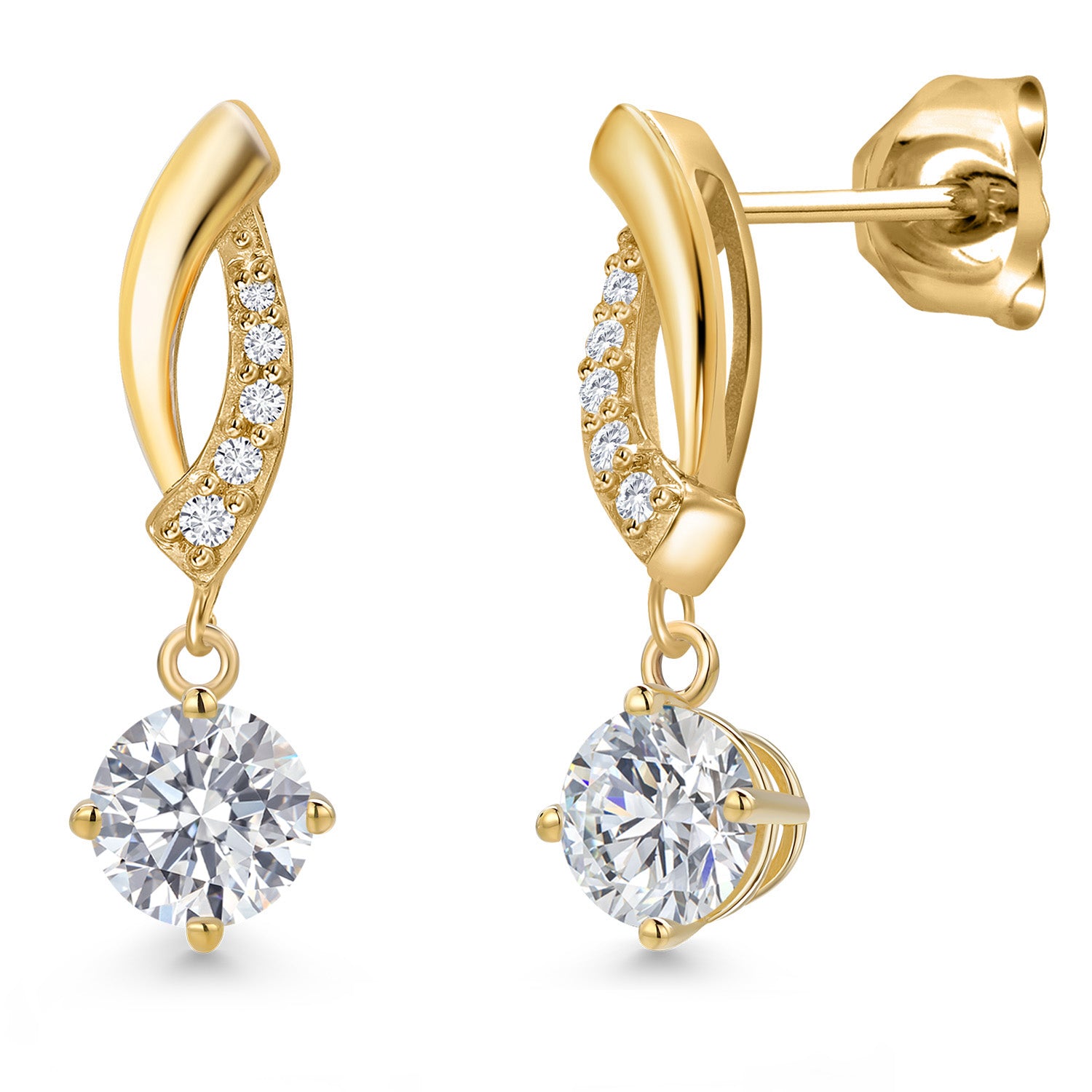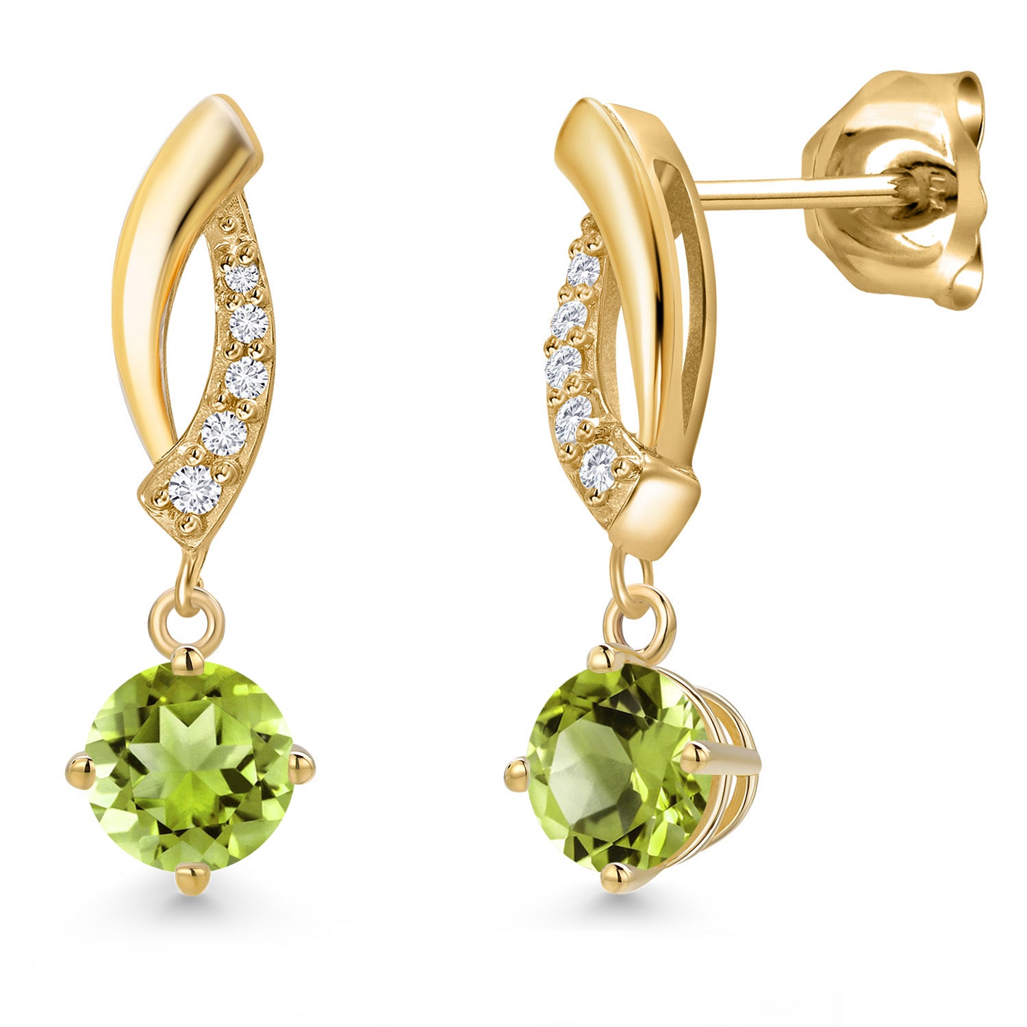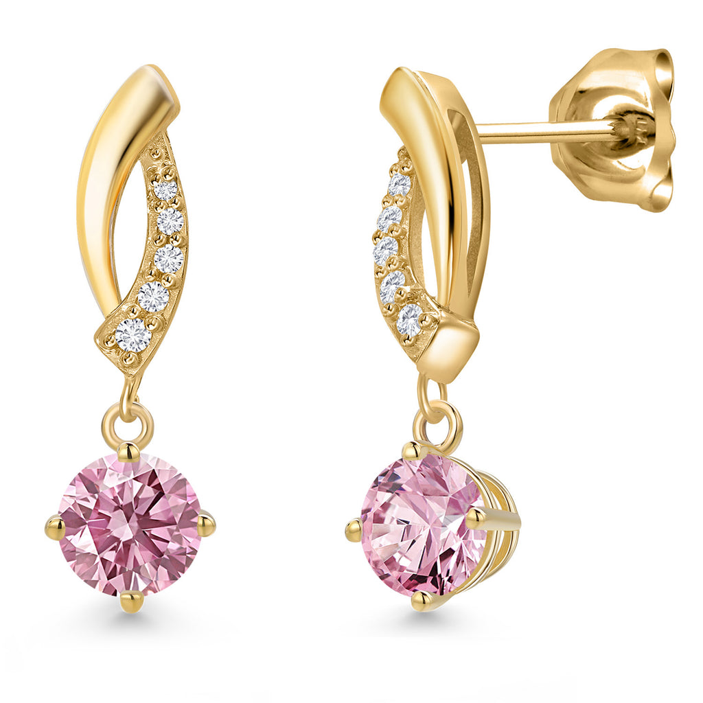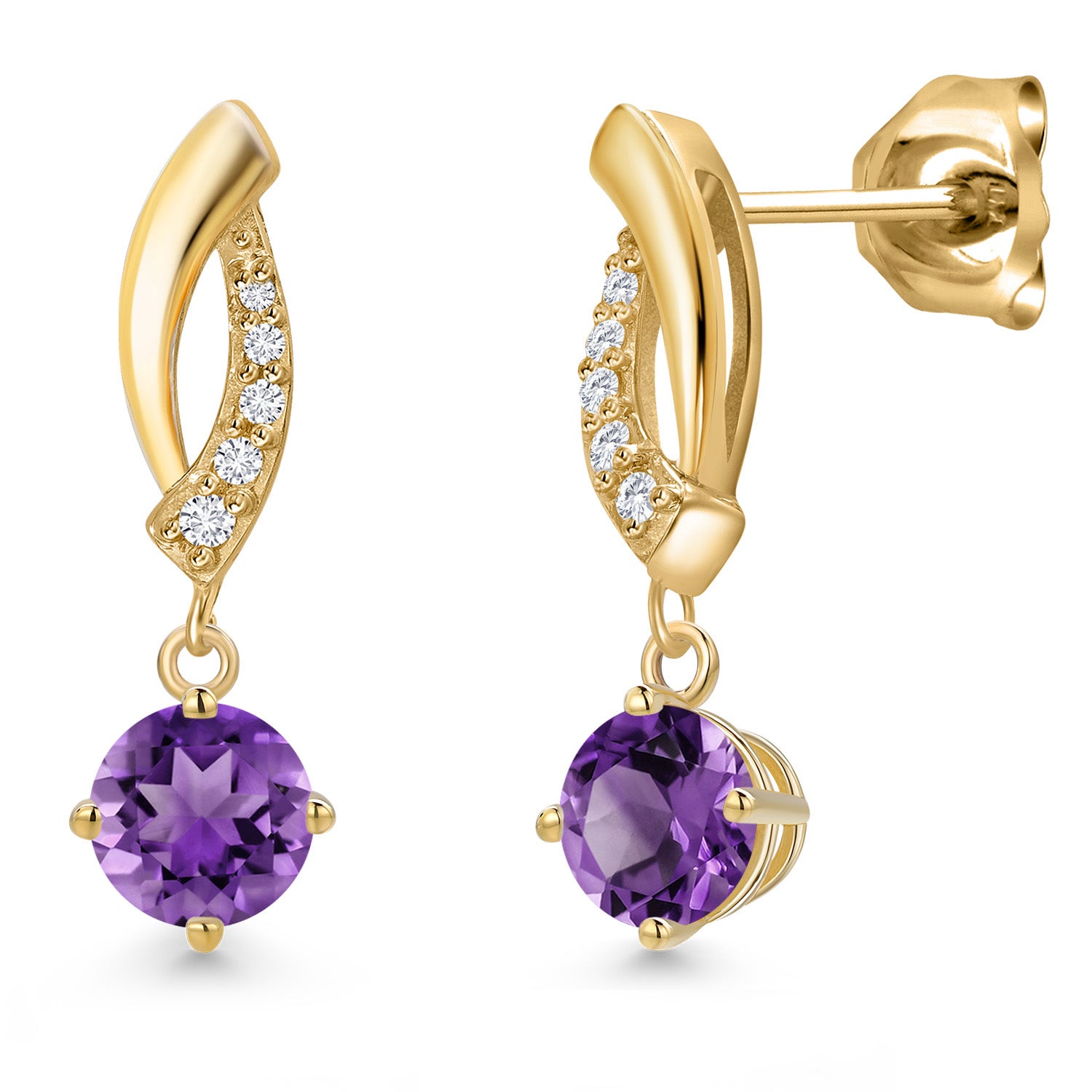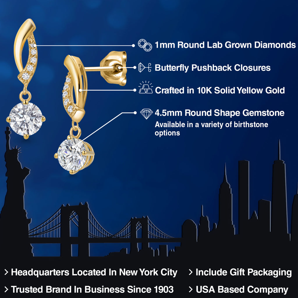 10K Yellow Gold 4.5MM Round Gemstone Birthstone and White Lab Grown Diamond Infinity Dangle Earrings For Women | Gold Earrings For Women