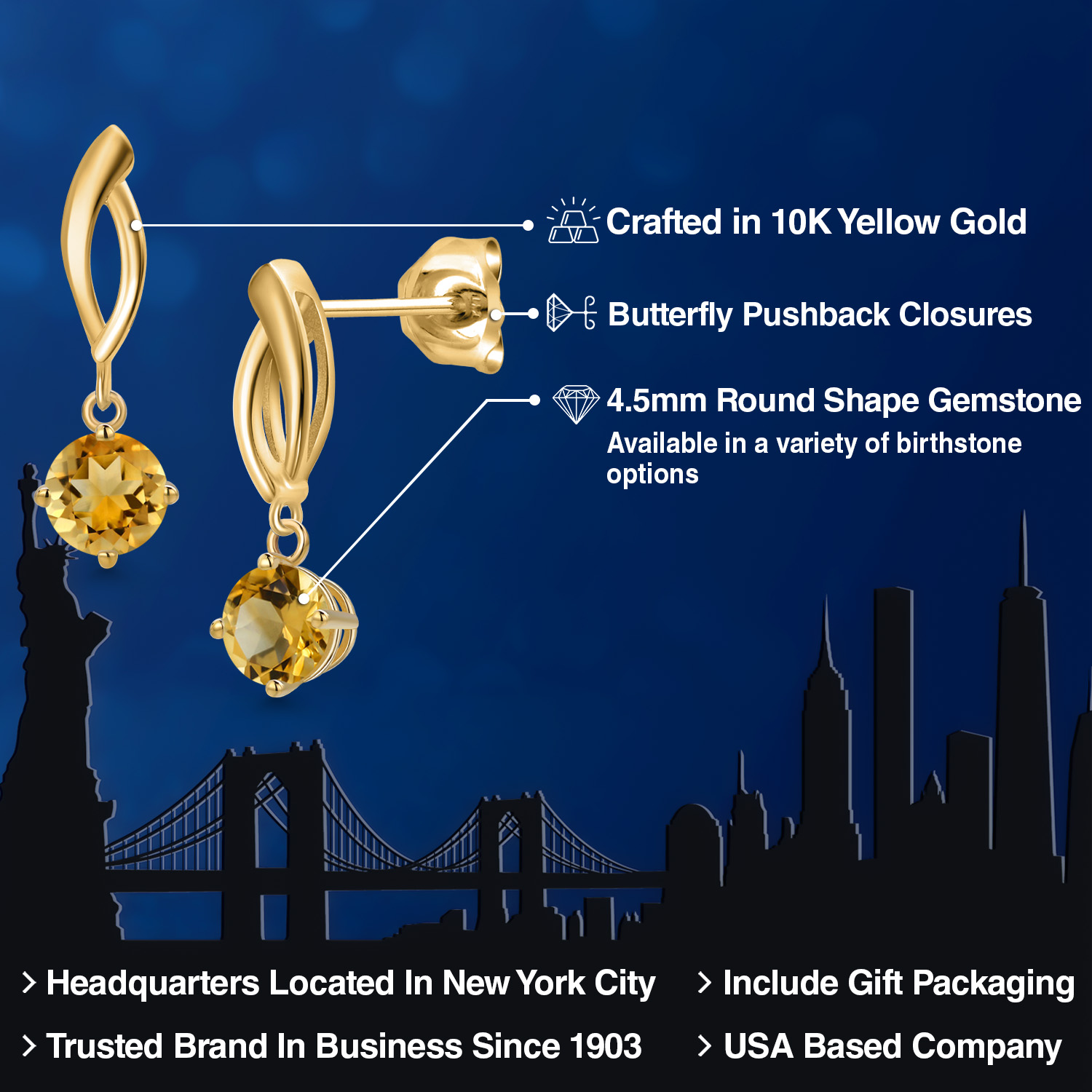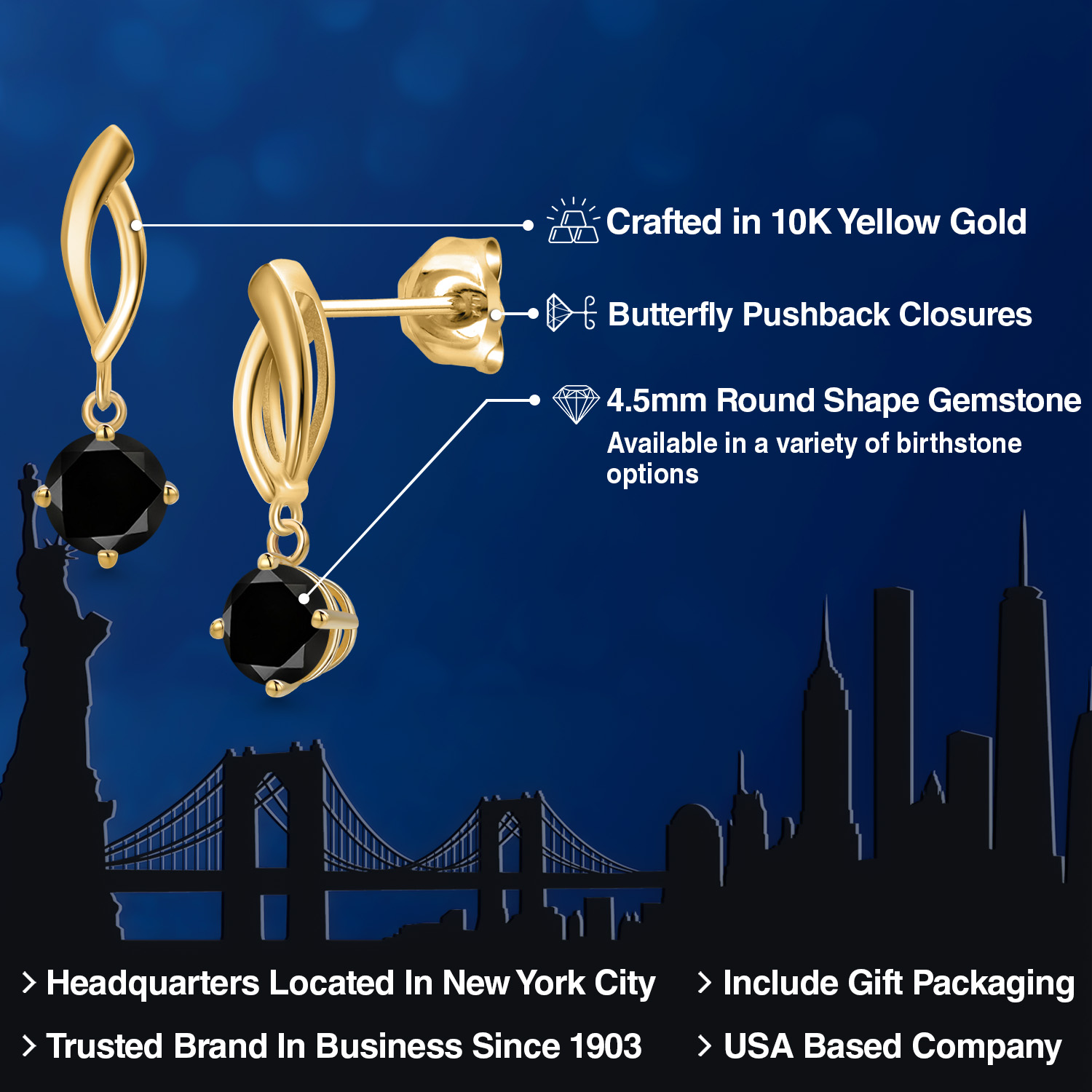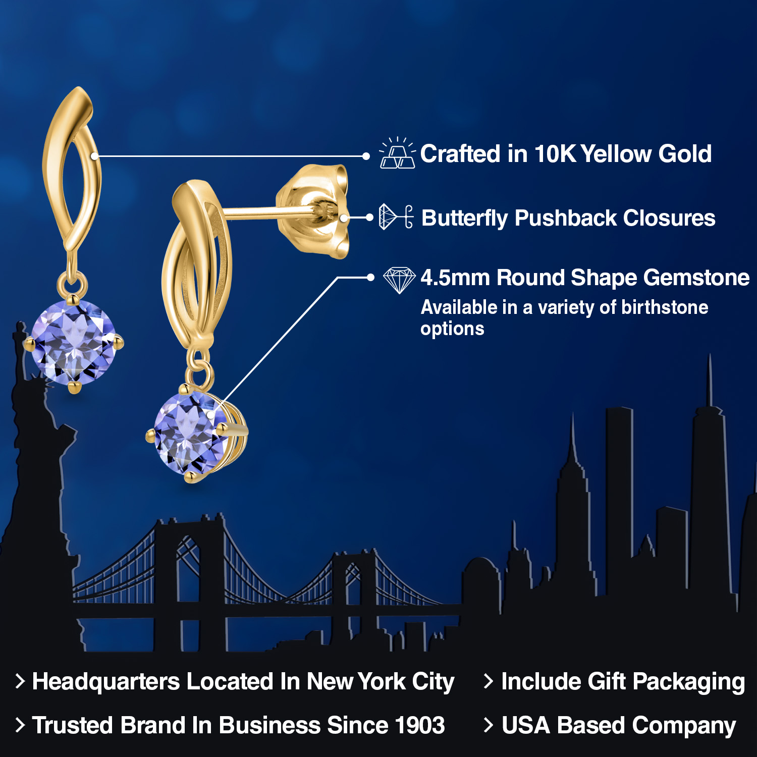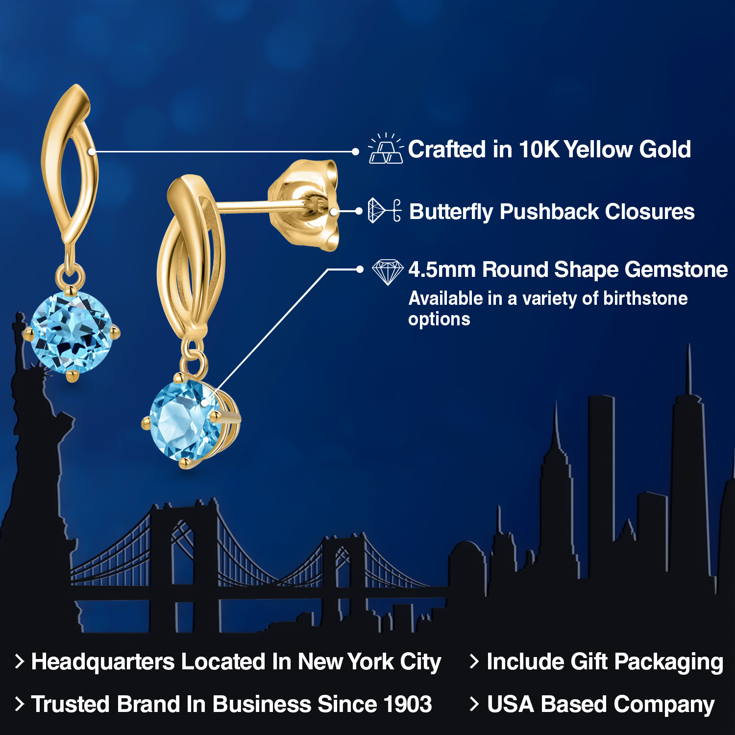RADIANT 4.5MM ROUND-CUT GEMSTONES: Designed to captivate, each earring is adorned with a 4.5MM round gemstone, carefully chosen for its brilliance and vibrant color. With a variety of birthstone options to select from, these earrings allow you to add a deeply personal and meaningful touch to your style.