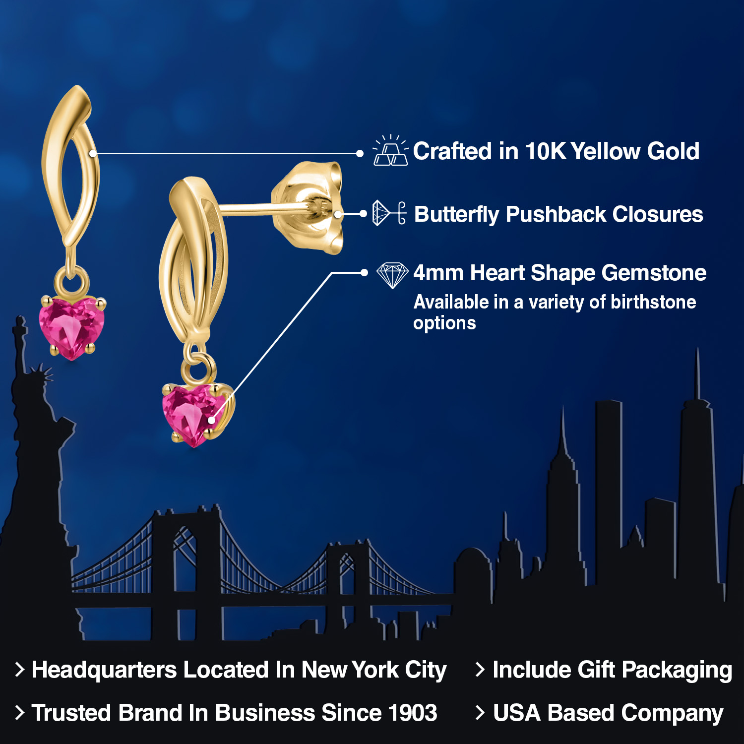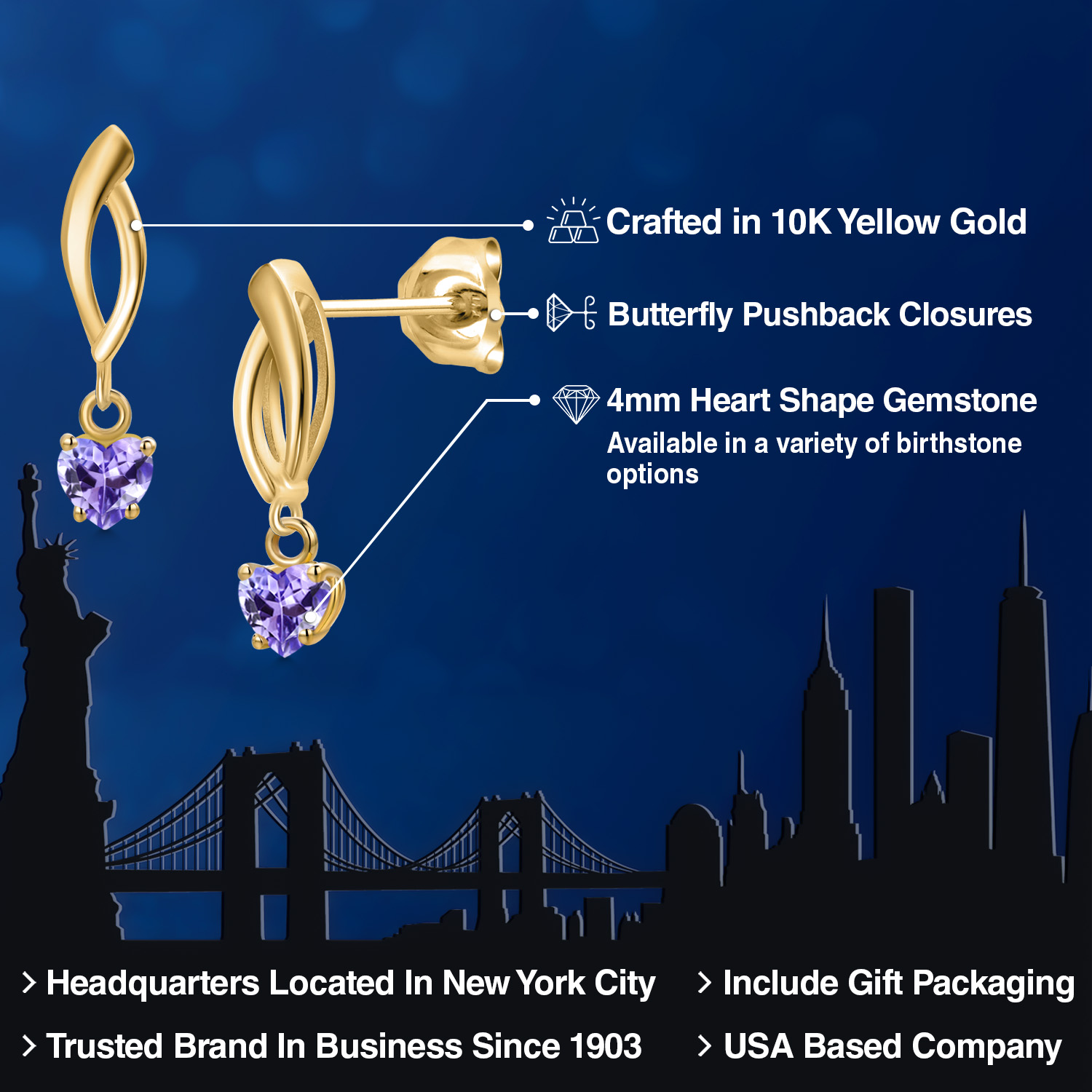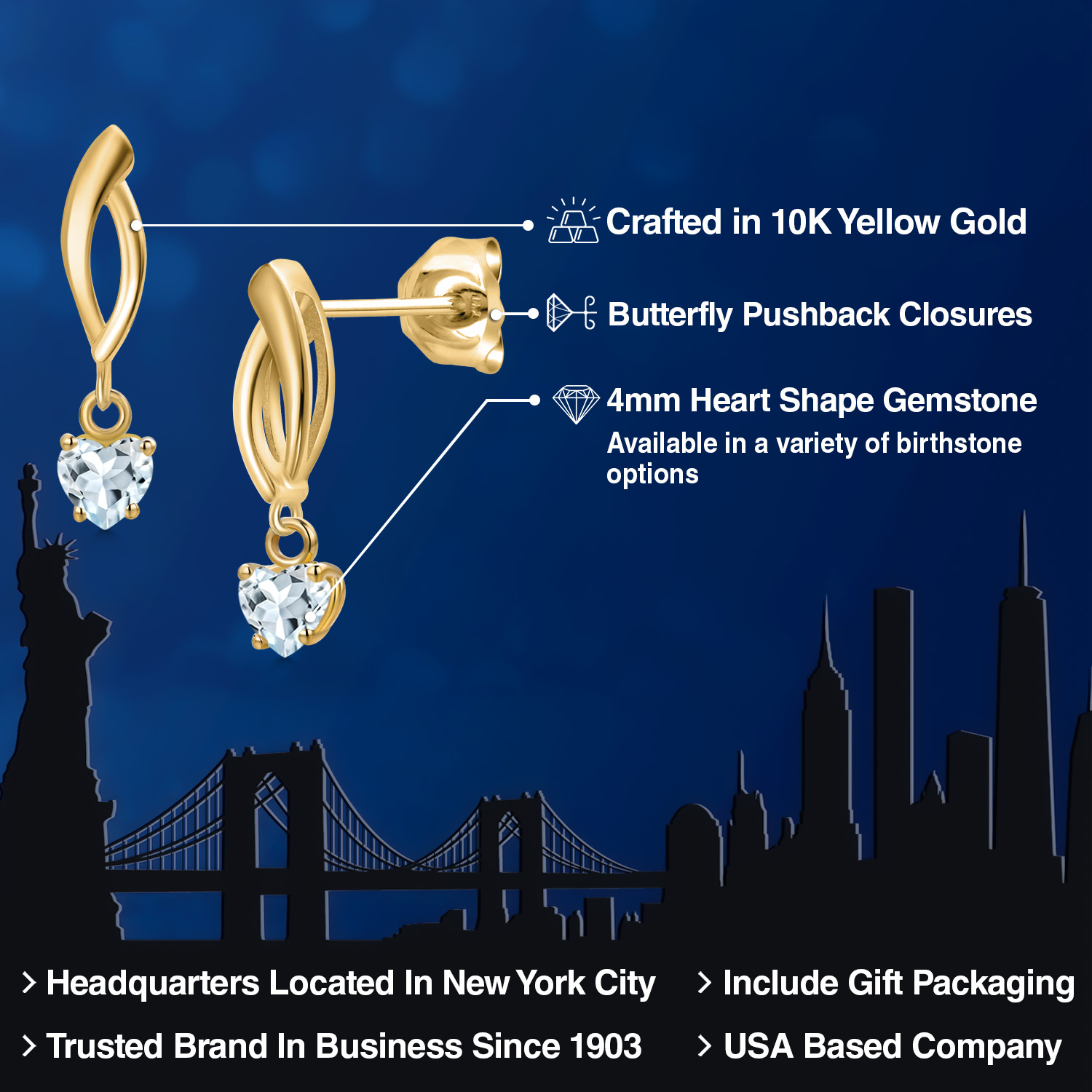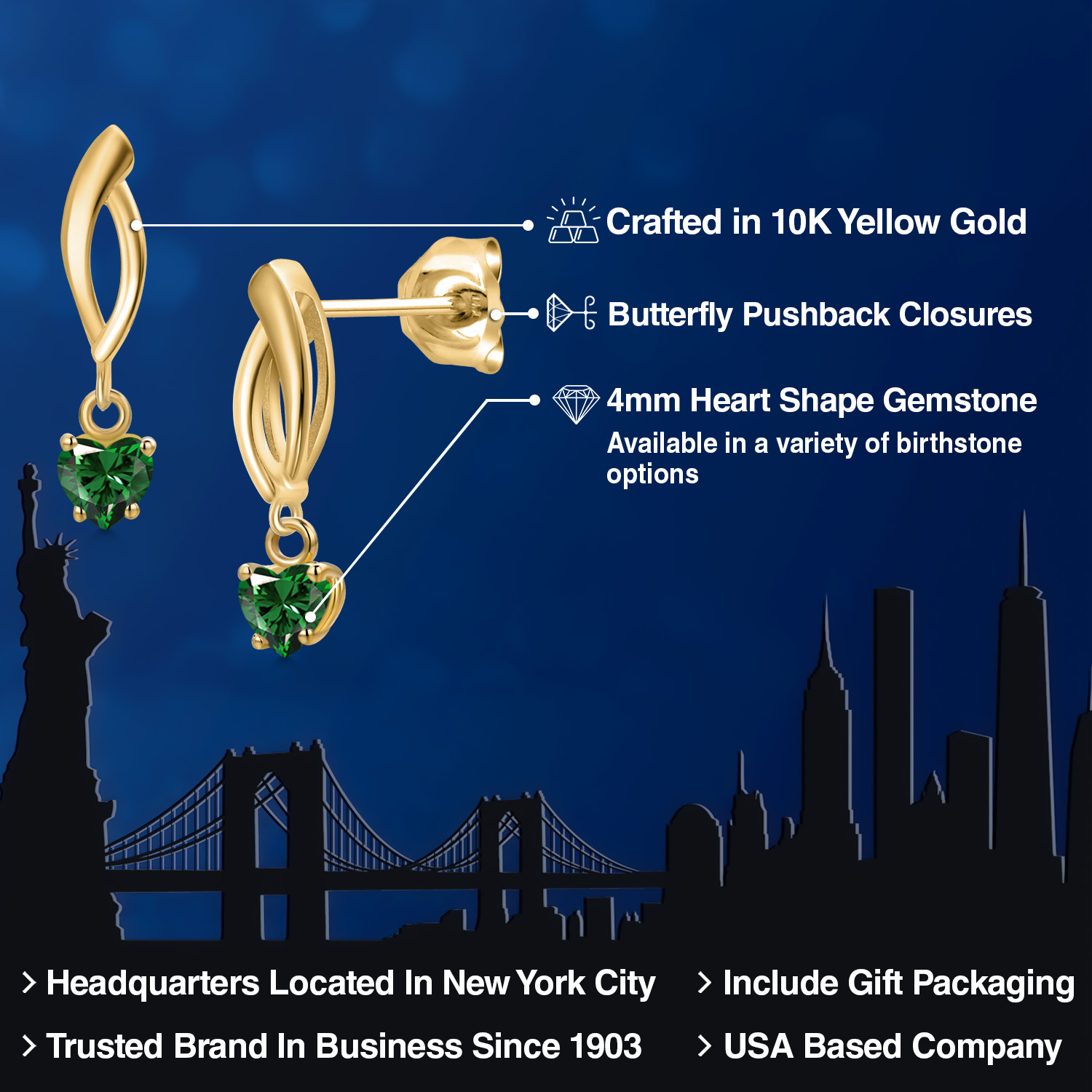 CRAFTED IN 10K YELLOW GOLD: Expertly fashioned from 10K solid yellow gold, these earrings boast a luminous, warm glow that complements the sparkle of the gemstone. A mark of superior craftsmanship, this metal ensures lasting quality and durability, making it an heirloom-worthy piece.