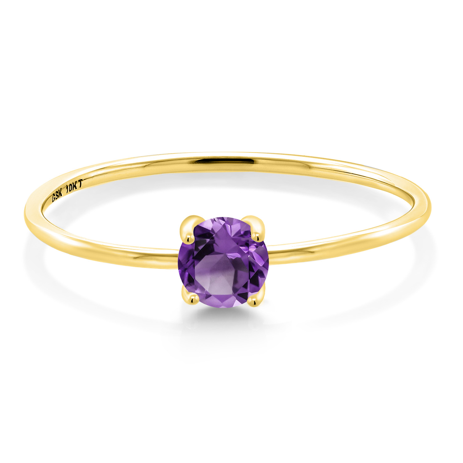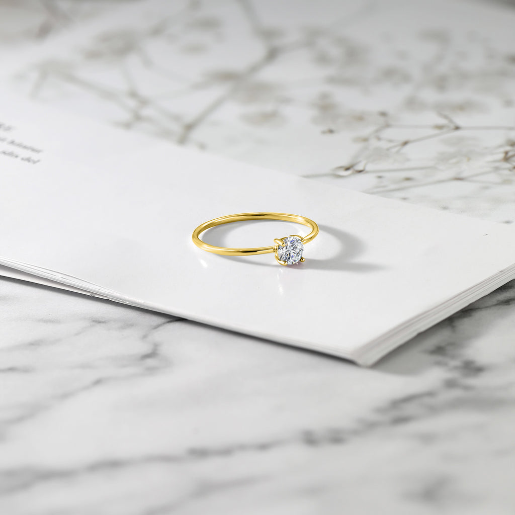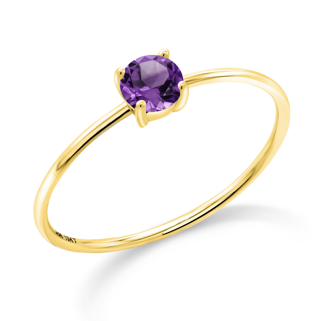 10K Yellow Gold 4MM Round Gemstone Birthstone Solitaire Engagement Ring For Women | Wedding Anniversary Promise Gold Ring For Women | Available in Size 5, 6, 7, 8, 9