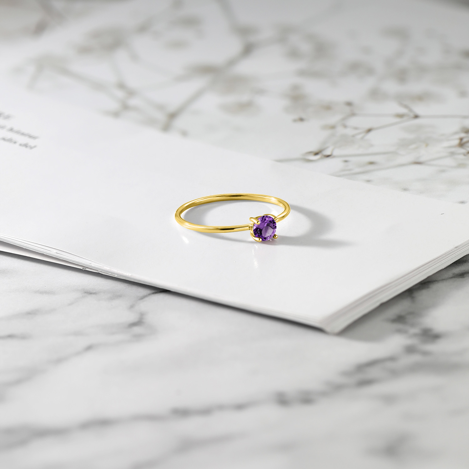 CUSTOMIZABLE GEMSTONE CENTERPIECE: Featuring a 4MM round gemstone birthstone at the heart of this solitaire ring, this piece radiates a vibrant and timeless allure. Available in a selection of personalized birthstone options, each stone is precision-cut to maximize its natural brilliance and fire.