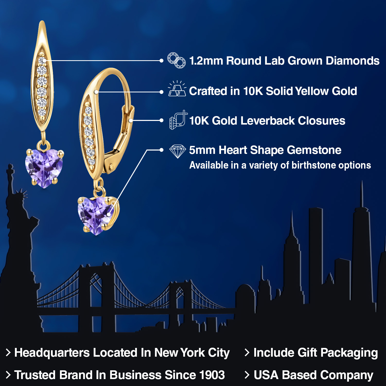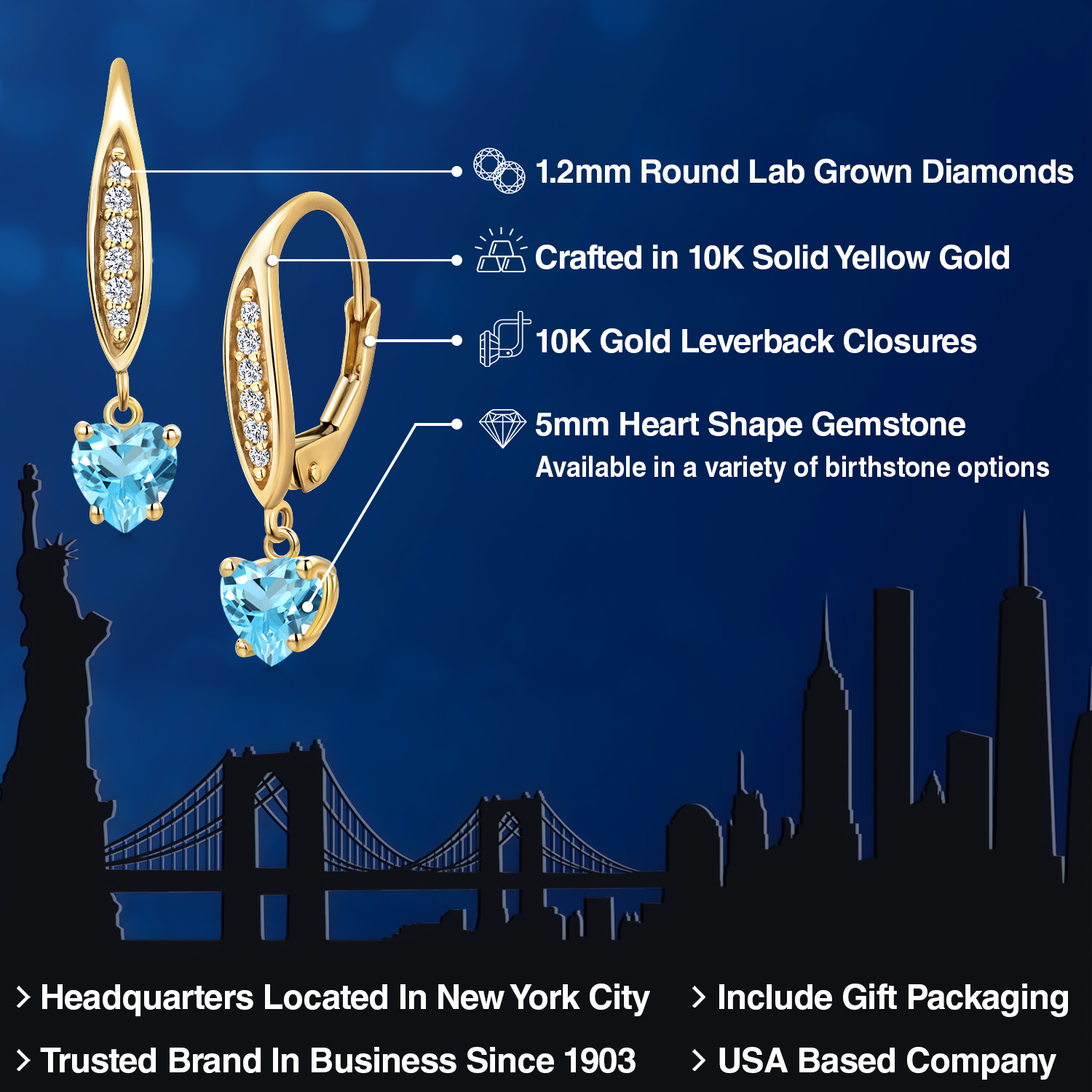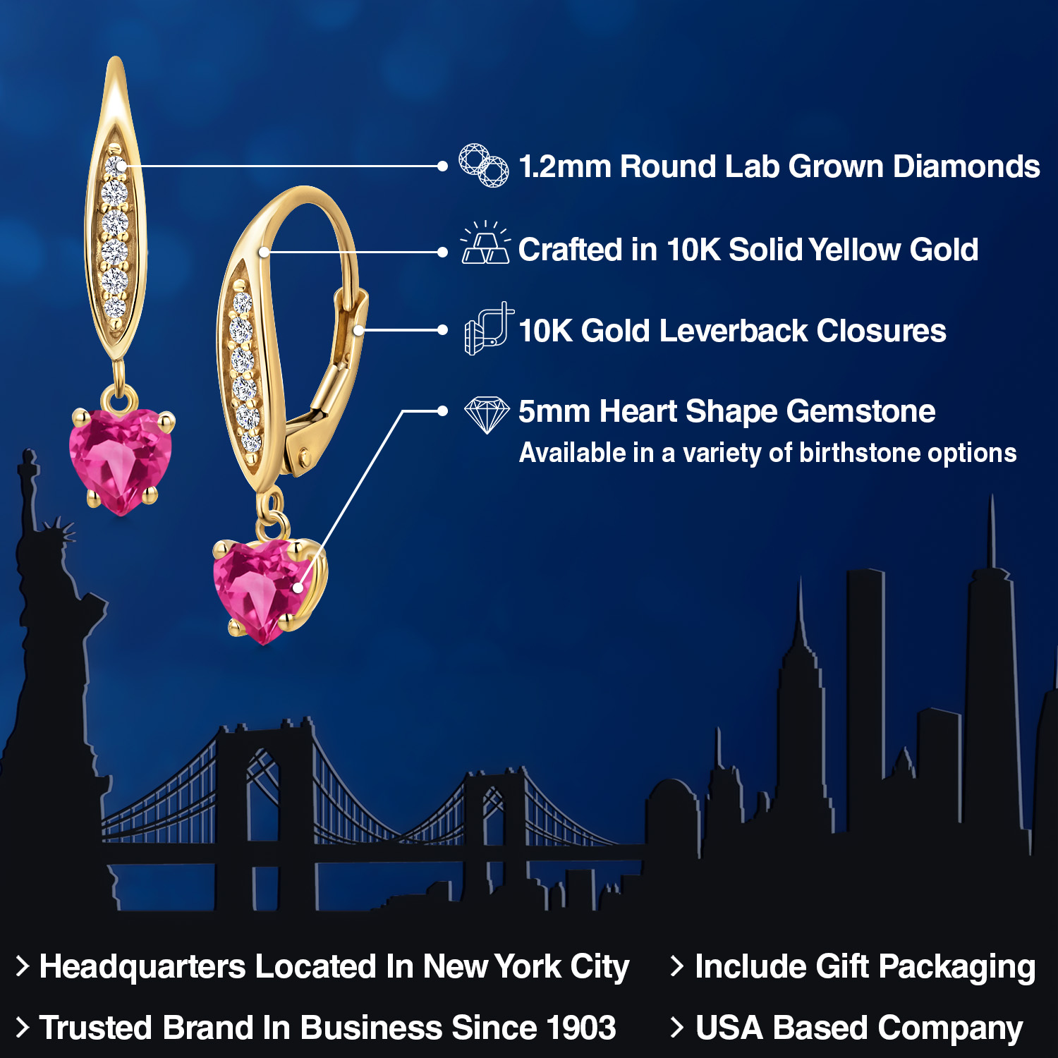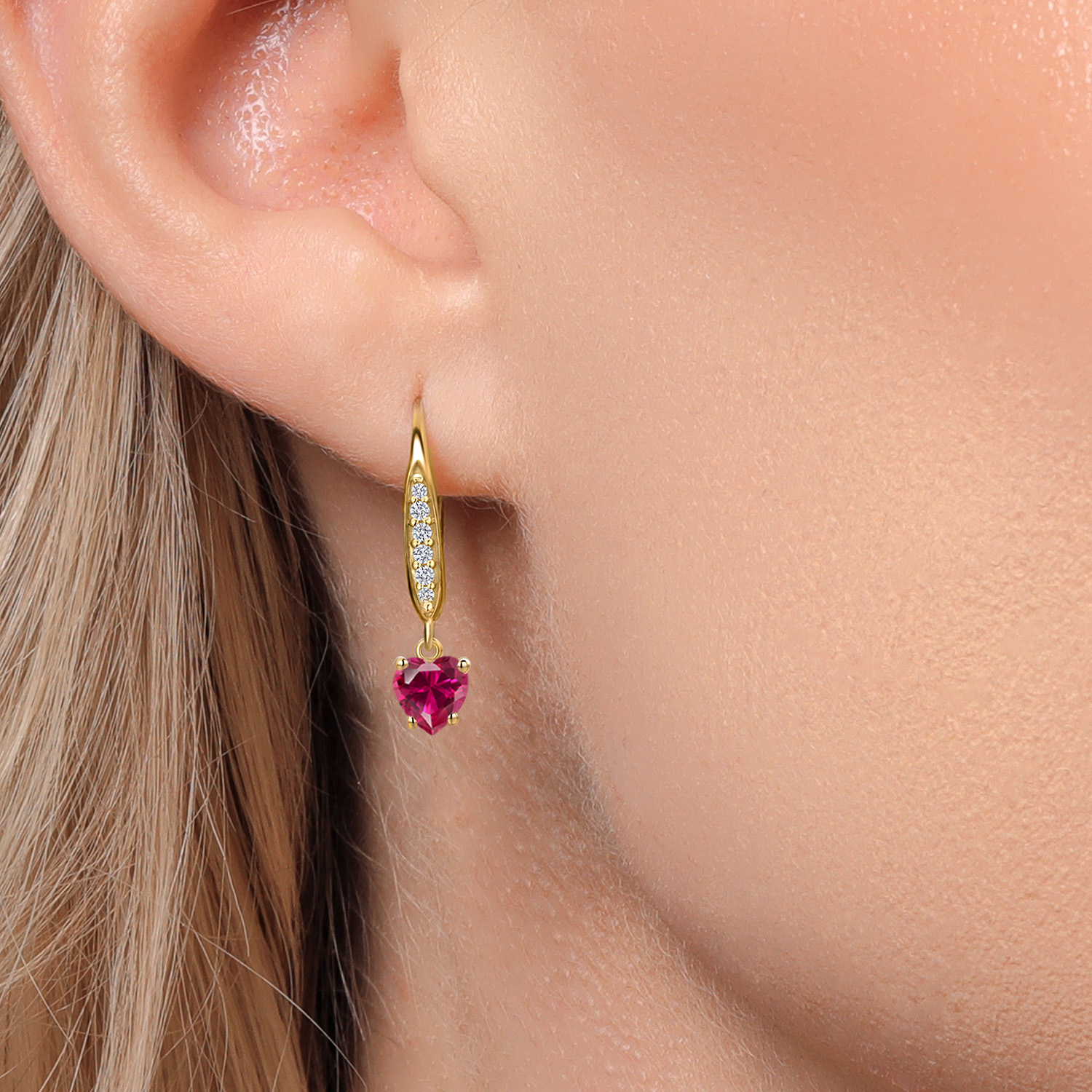 STUNNING 5MM HEART-SHAPED GEMSTONE: Expertly cut into an exquisite heart shape, this 5MM gemstone is a birthstone option that adds a personal and meaningful touch to the jewelry. Each gemstone is carefully selected for its brilliance and clarity, making it a significant and sentimental centerpiece of these elegant earrings.