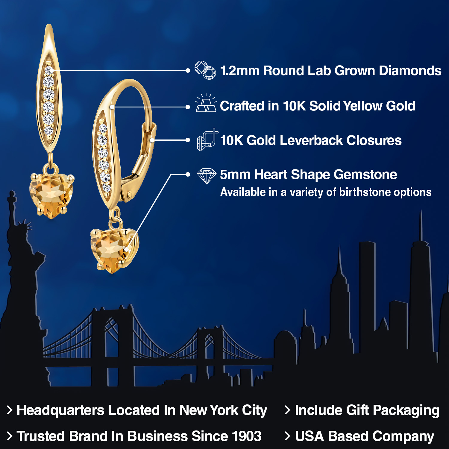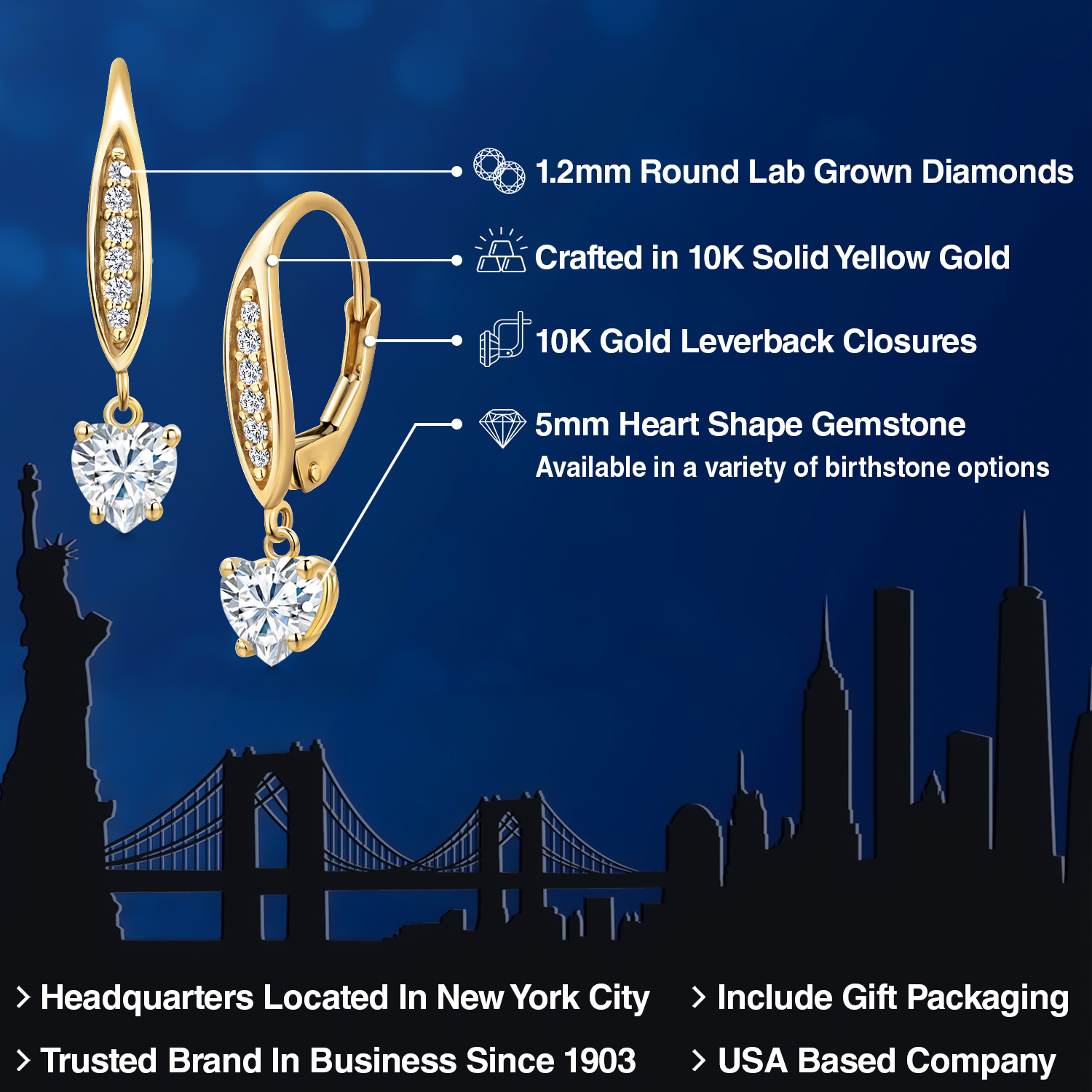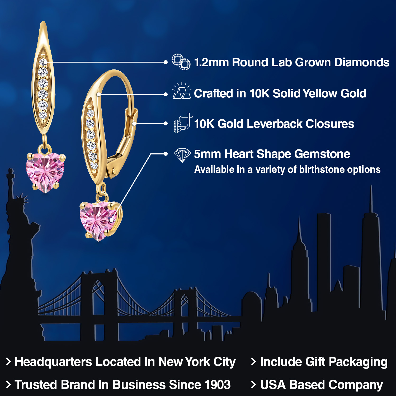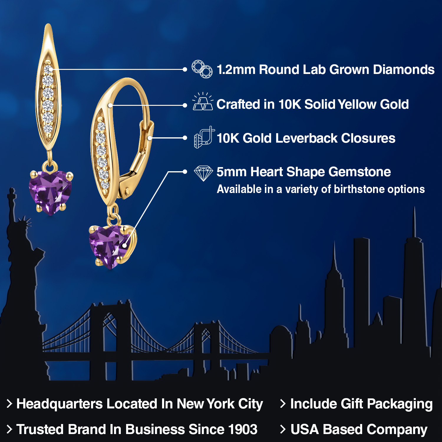 STUNNING 5MM HEART-SHAPED GEMSTONE: Expertly cut into an exquisite heart shape, this 5MM gemstone is a birthstone option that adds a personal and meaningful touch to the jewelry. Each gemstone is carefully selected for its brilliance and clarity, making it a significant and sentimental centerpiece of these elegant earrings.
