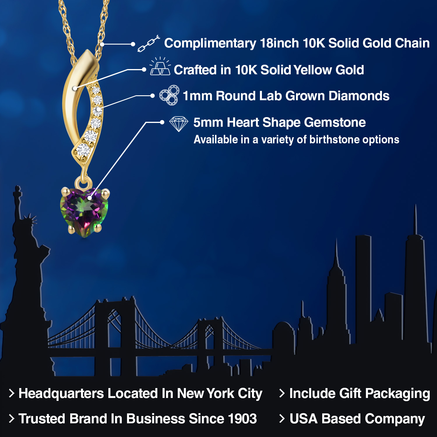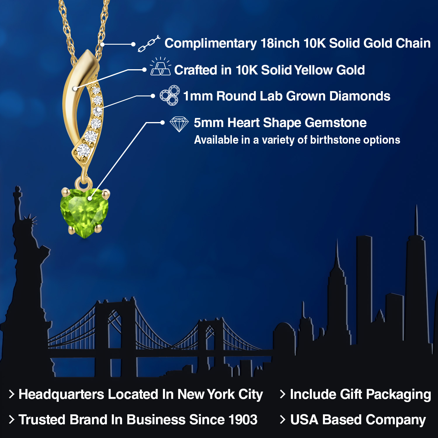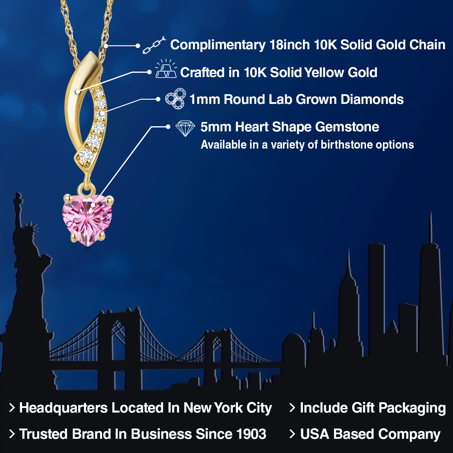 10K Yellow Gold 5MM Heart Shape Gemstone Birthstone and White Lab Grown Diamond Infinity Pendant Necklace For Women | Gold Necklace For Women | With 18 Inch Gold Chain