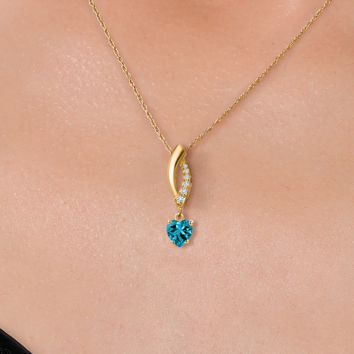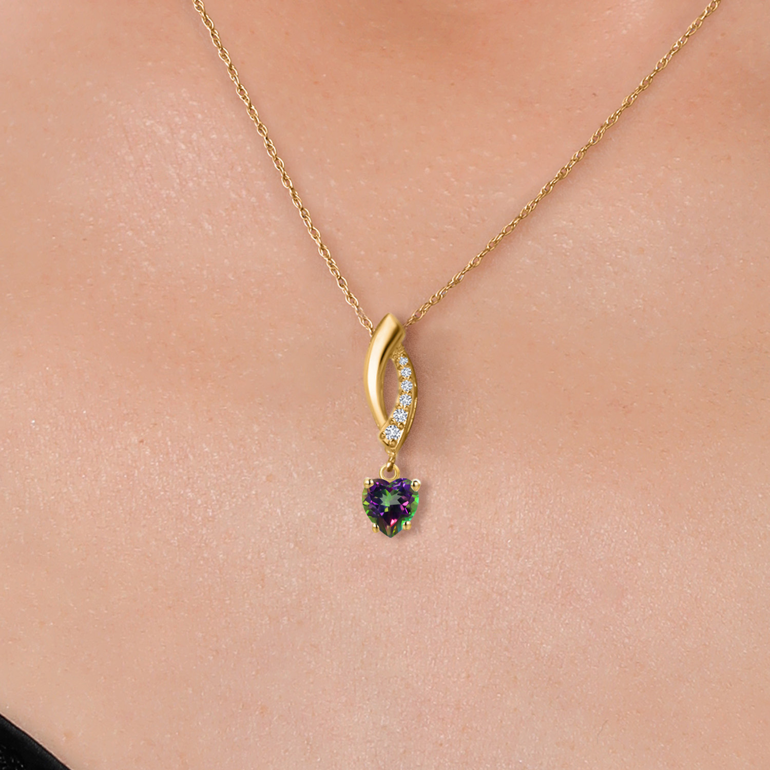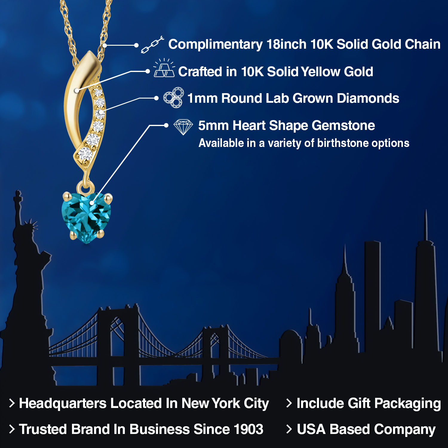 10K Yellow Gold 5MM Heart Shape Gemstone Birthstone and White Lab Grown Diamond Infinity Pendant Necklace For Women | Gold Necklace For Women | With 18 Inch Gold Chain