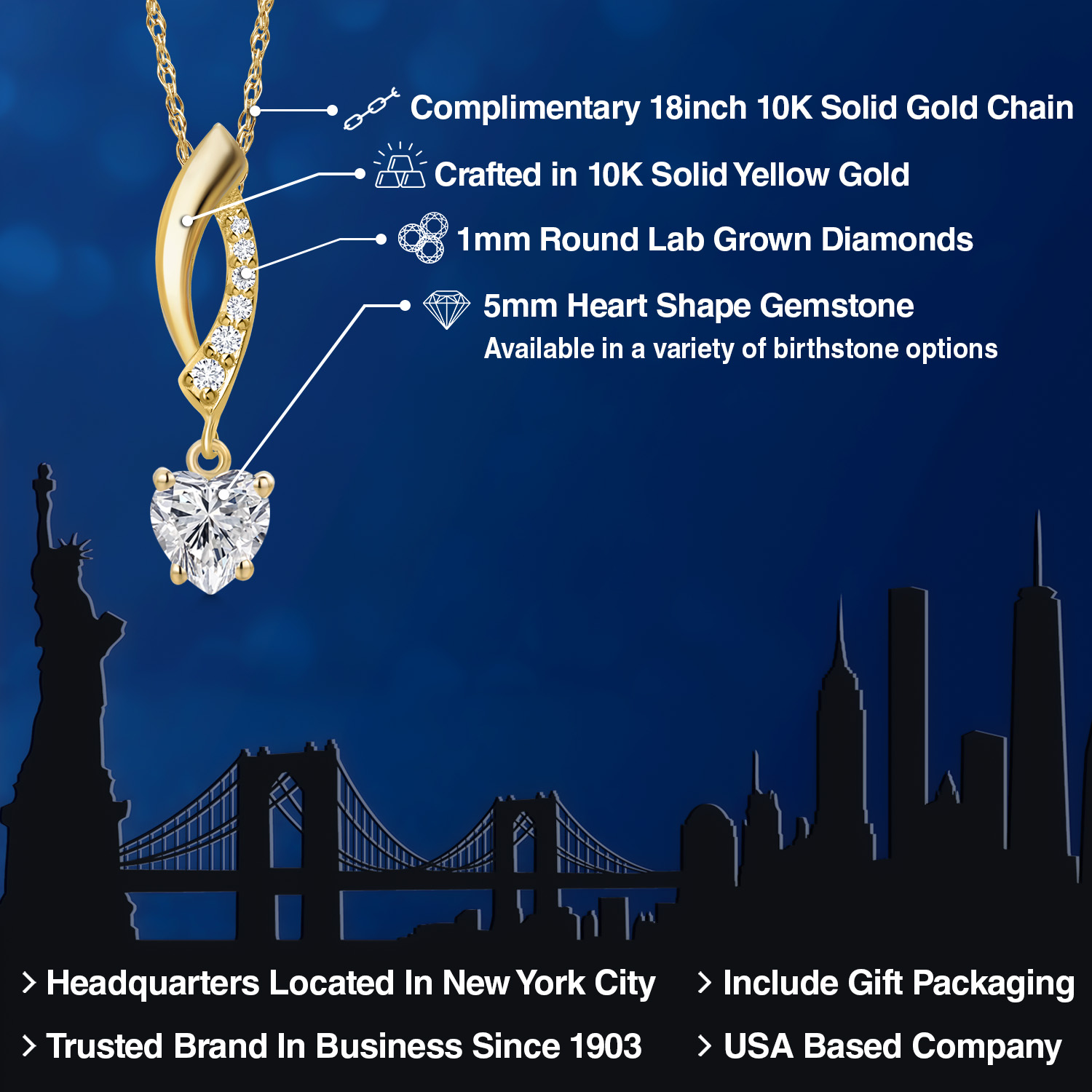 ELEGANT INFINITY DESIGN: This 10K yellow gold pendant necklace showcases a graceful infinity motif, accented with a 5MM heart-shaped gemstone birthstone and shimmering White Lab Grown Diamonds, offering timeless beauty and sophistication.