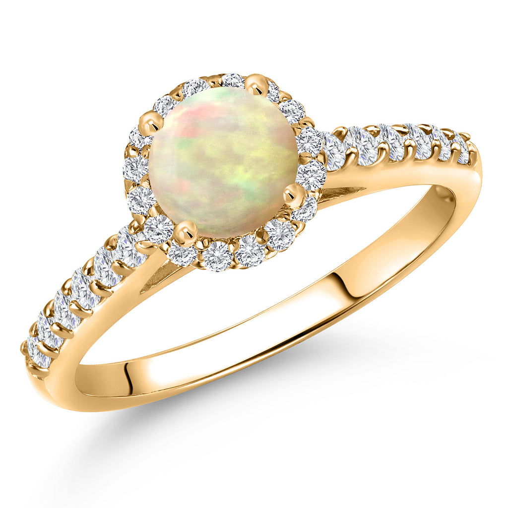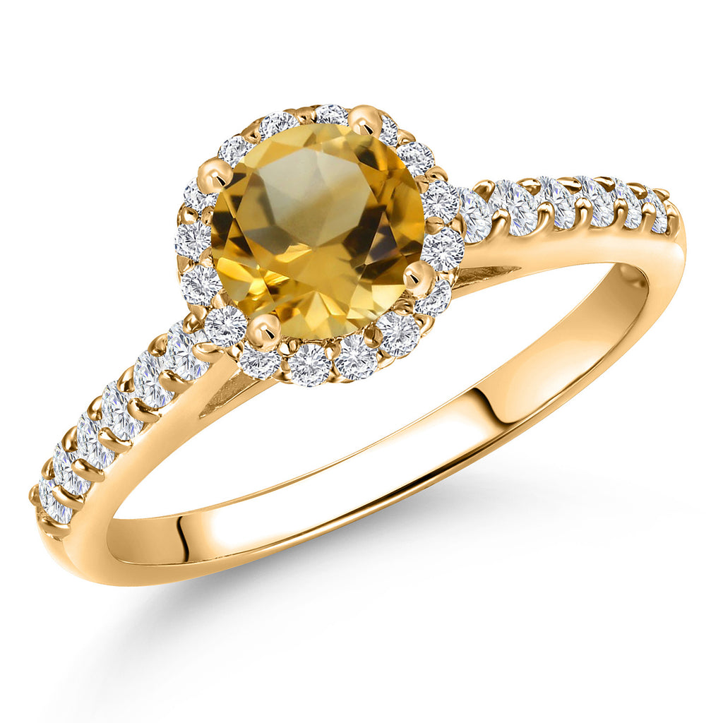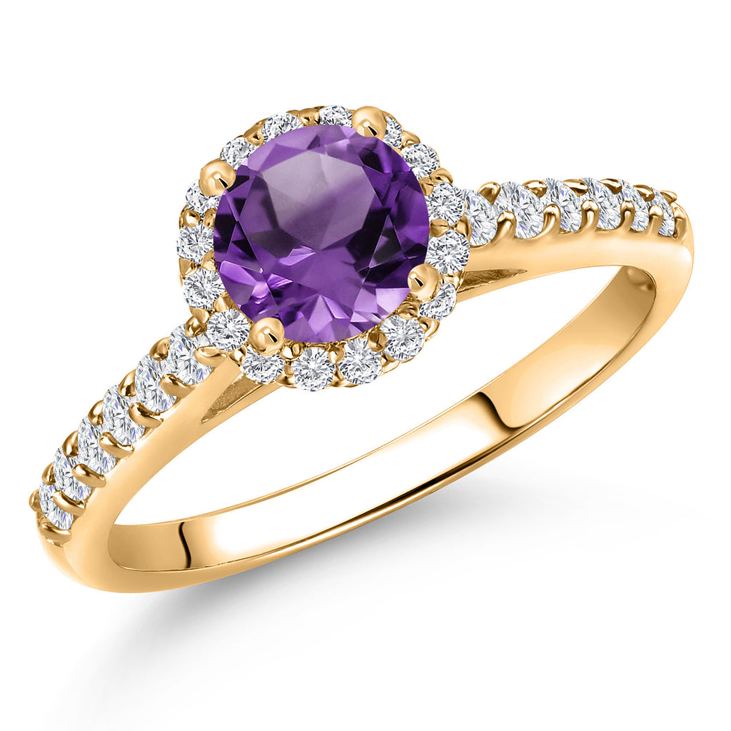 10K Yellow Gold 6MM Round Gemstone Birthstone and Lab Grown Diamond Engagement Ring For Women | Wedding Anniversary Promise Gold Ring For Women | Available in Size 5, 6, 7, 8, 9