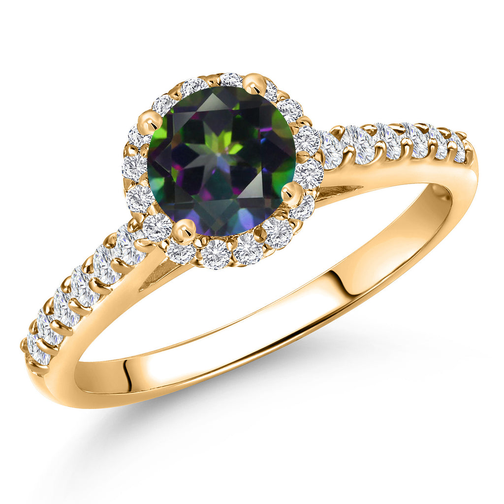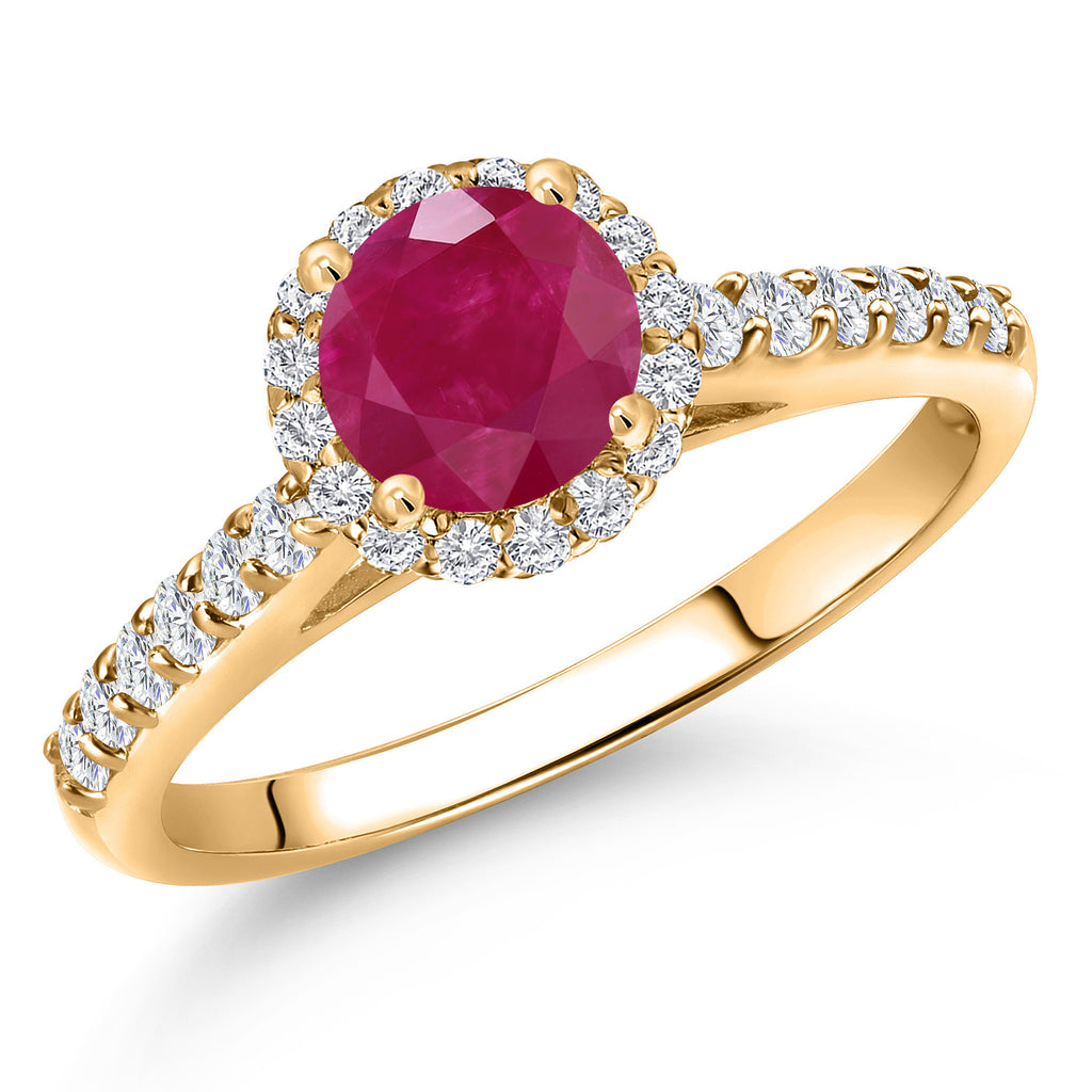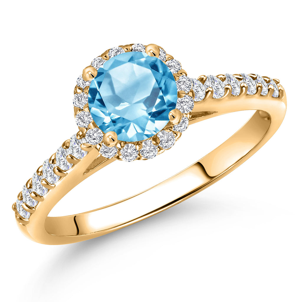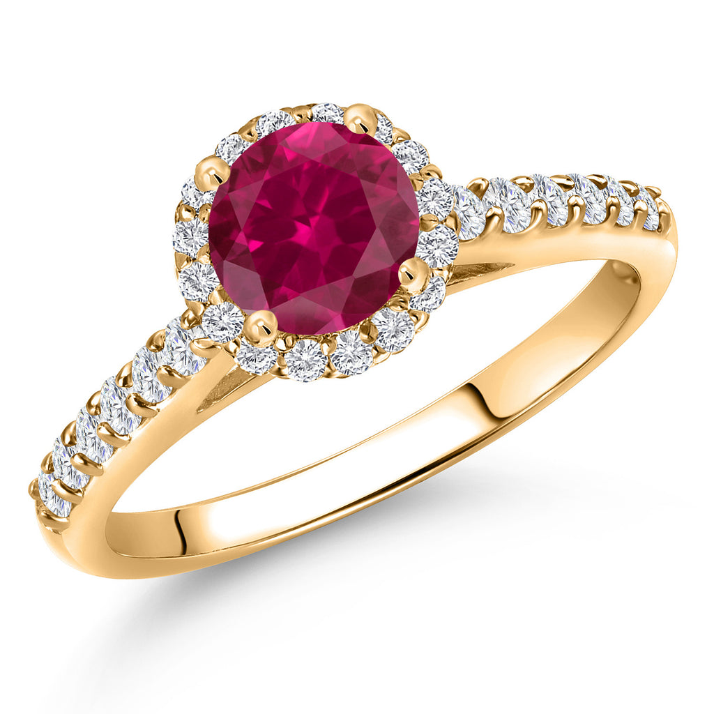 10K Yellow Gold 6MM Round Gemstone Birthstone and Lab Grown Diamond Engagement Ring For Women | Wedding Anniversary Promise Gold Ring For Women | Available in Size 5, 6, 7, 8, 9