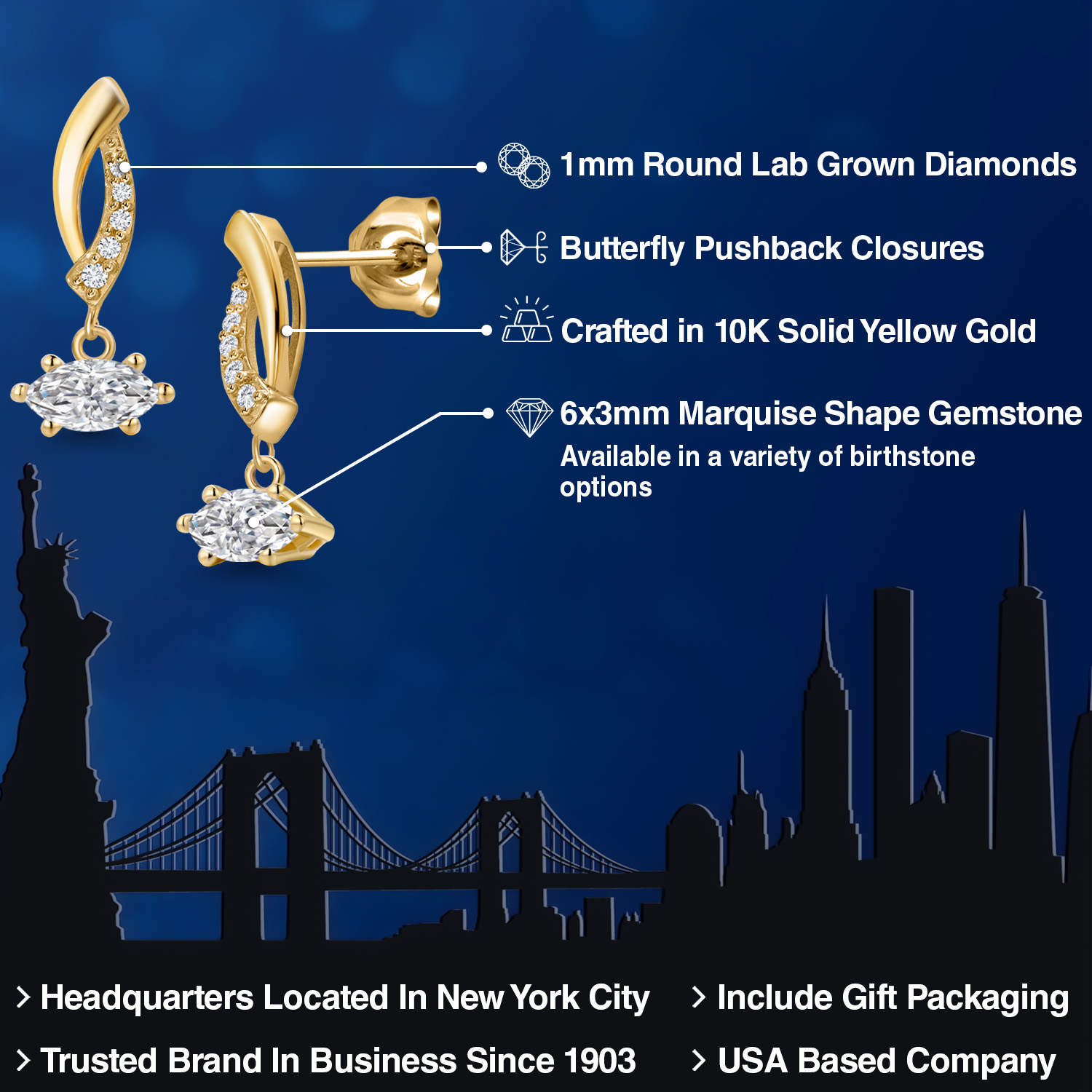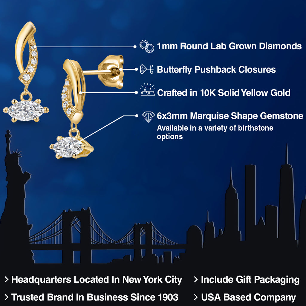 DAZZLING 6X3MM MARQUISE CUT GEMSTONE: Featuring a striking marquise-shaped gemstone measuring 6X3MM, these dangle earrings combine elegance and precision. Choose your favorite birthstone or gemstone option to make them truly personal and meaningful, ideal for celebrating milestones or special occasions.