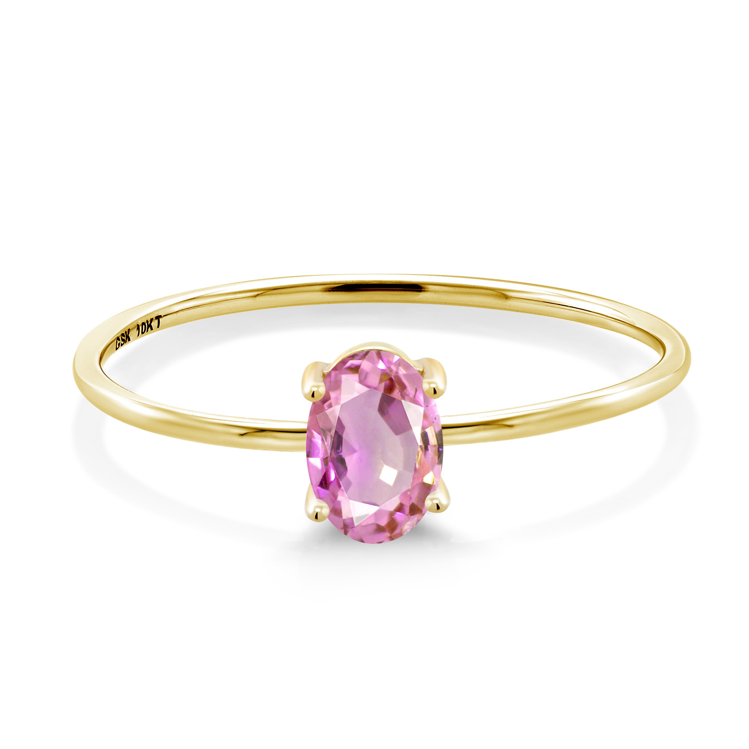 10K Yellow Gold 6X4MM Oval Gemstone Birthstone Engagement Ring For Women | Solitaire Anniversary Promise Gold Ring | Jewelry Gifts for Her Mom Wife