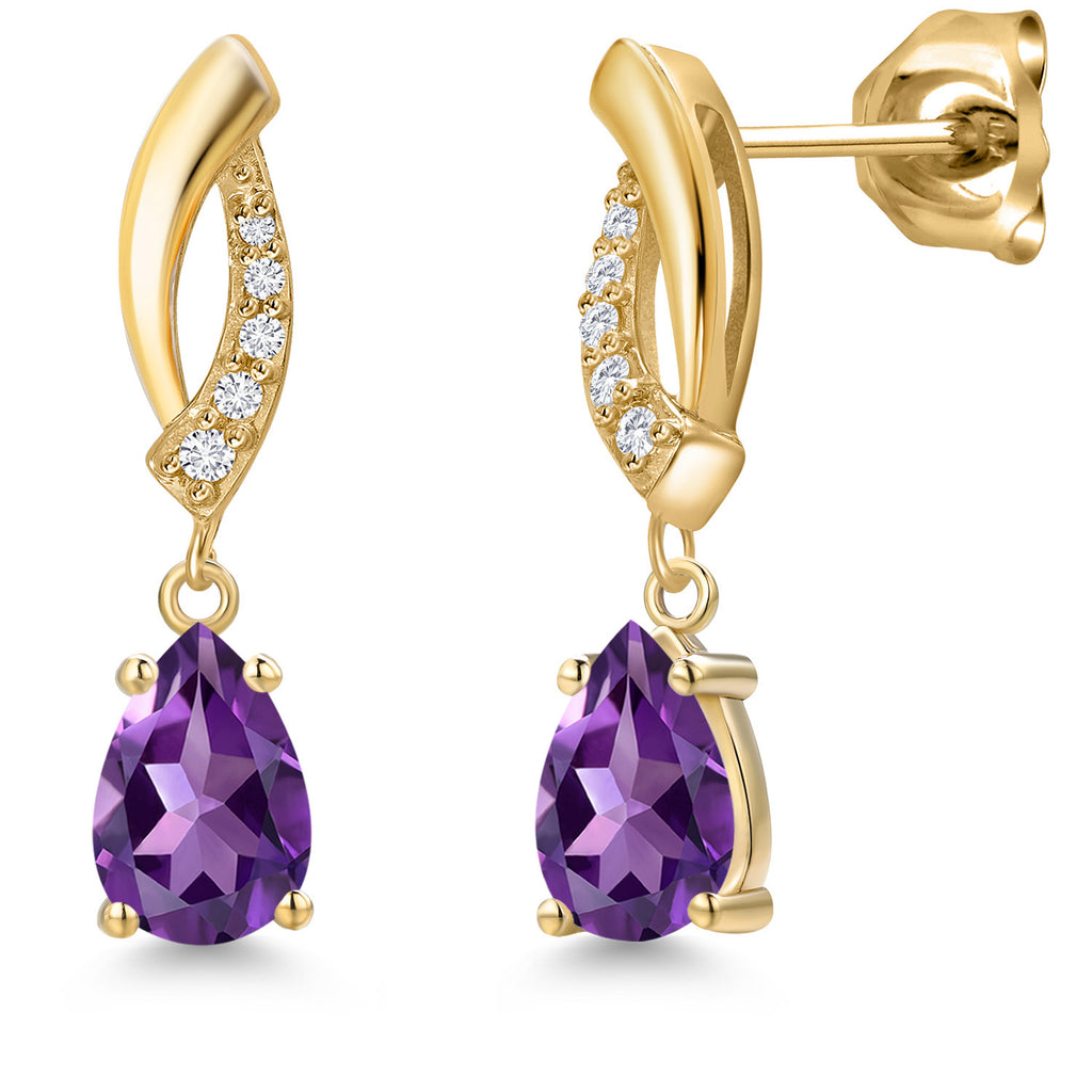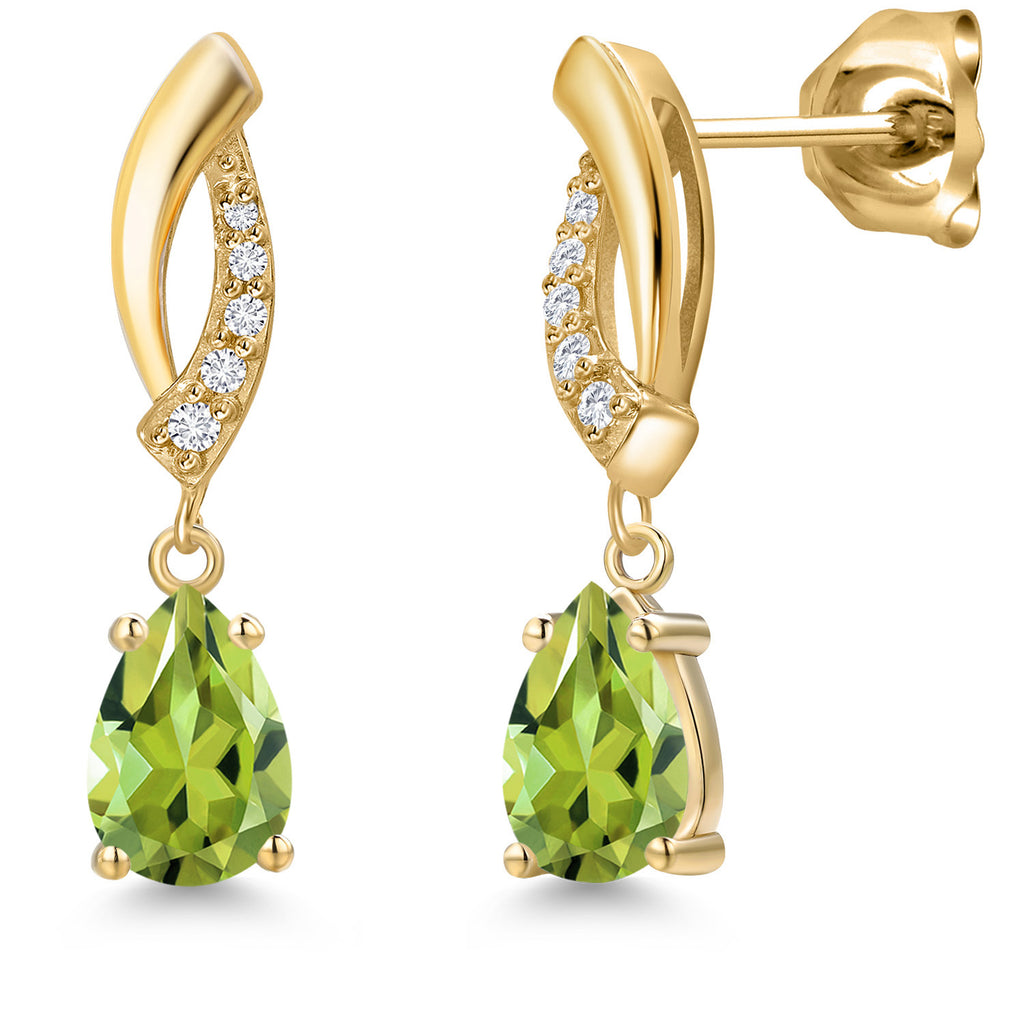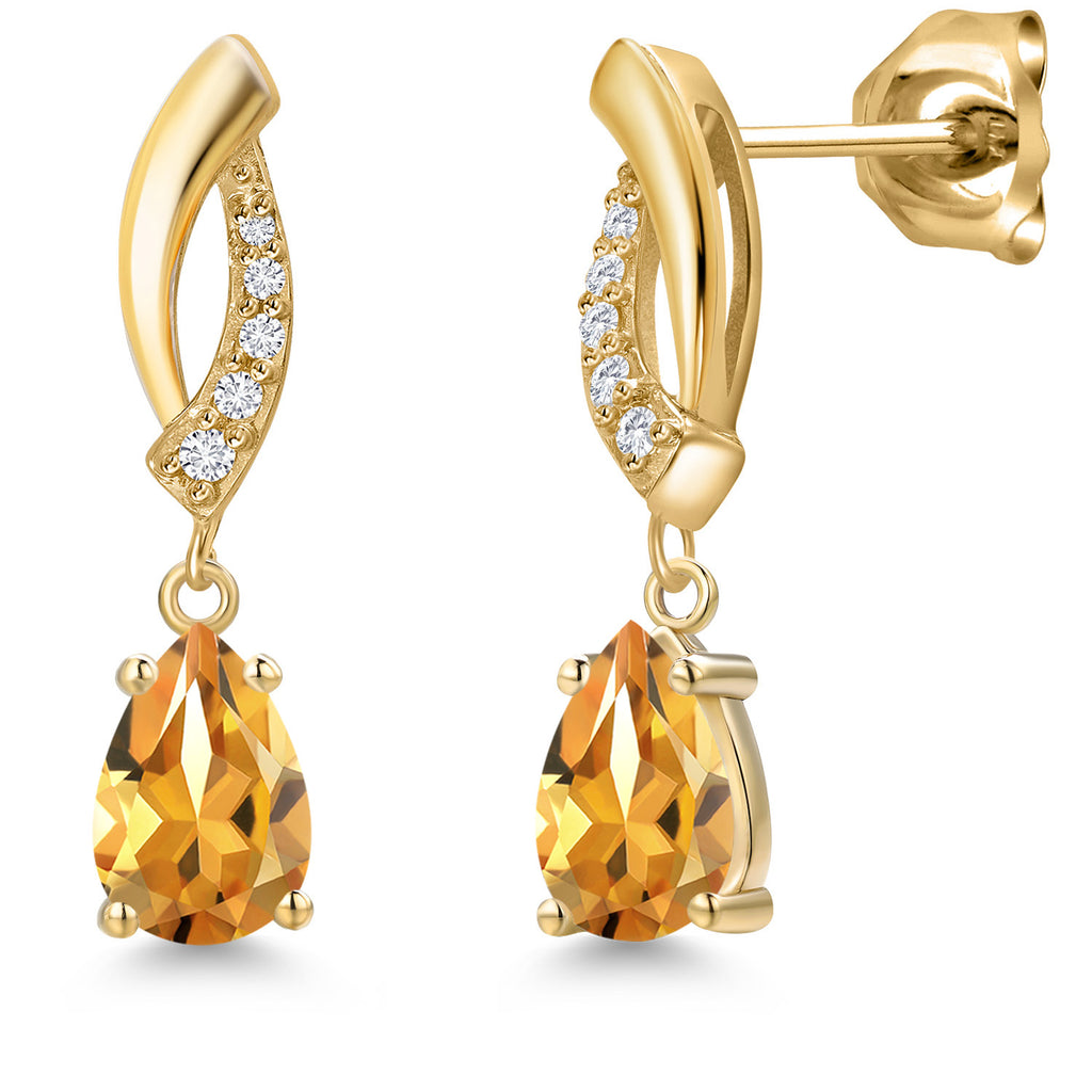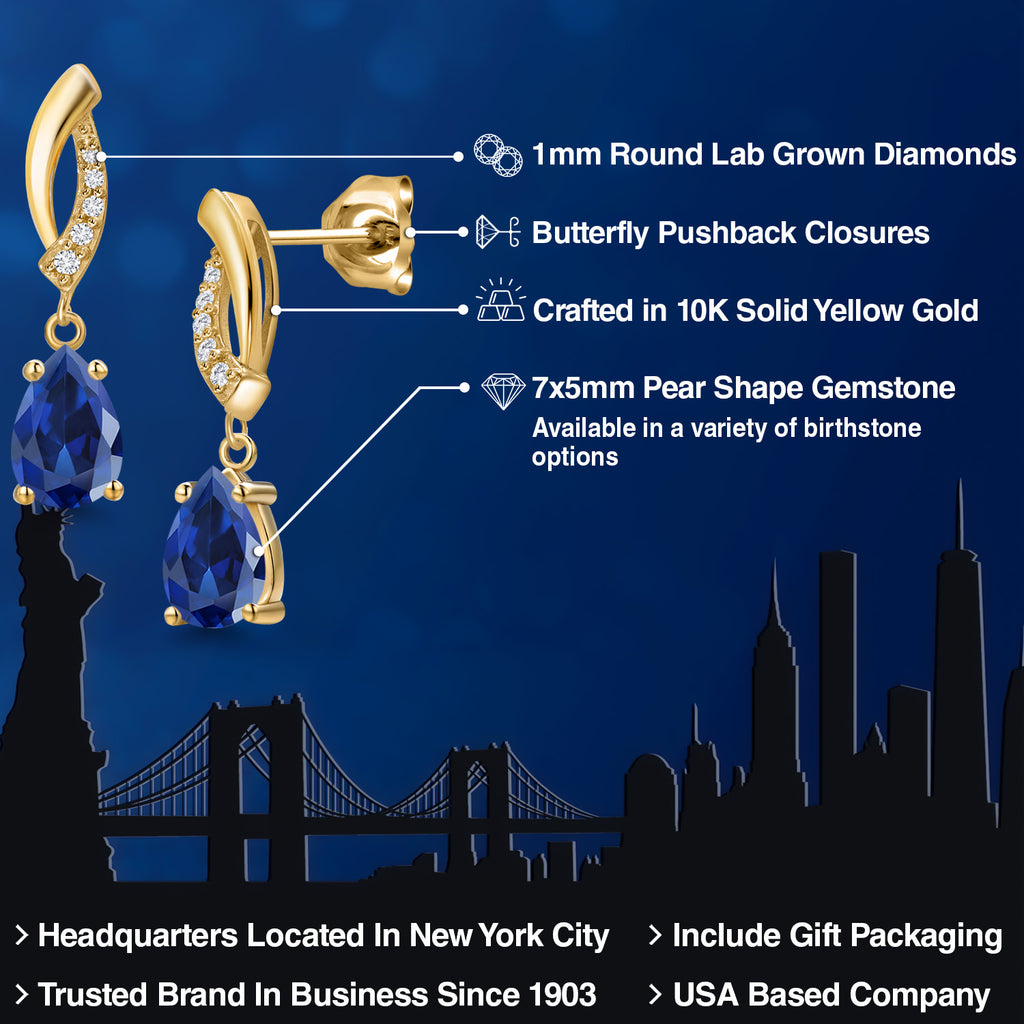 ELEGANT INFINITY DESIGN: These 10K yellow gold dangle earrings feature a sophisticated infinity motif, highlighting vibrant 7X5MM pear-shaped gemstone birthstones paired with sparkling white Lab Grown Diamonds, creating a timeless and graceful look.