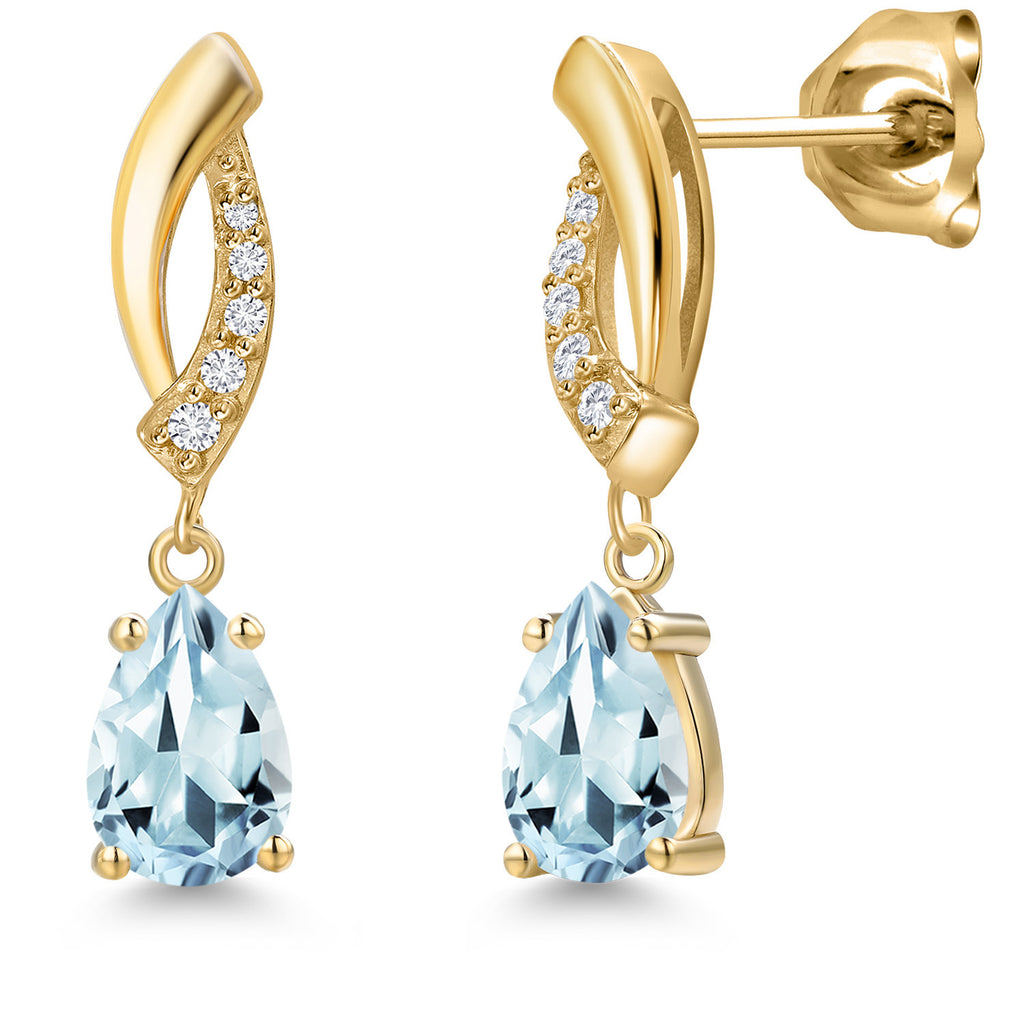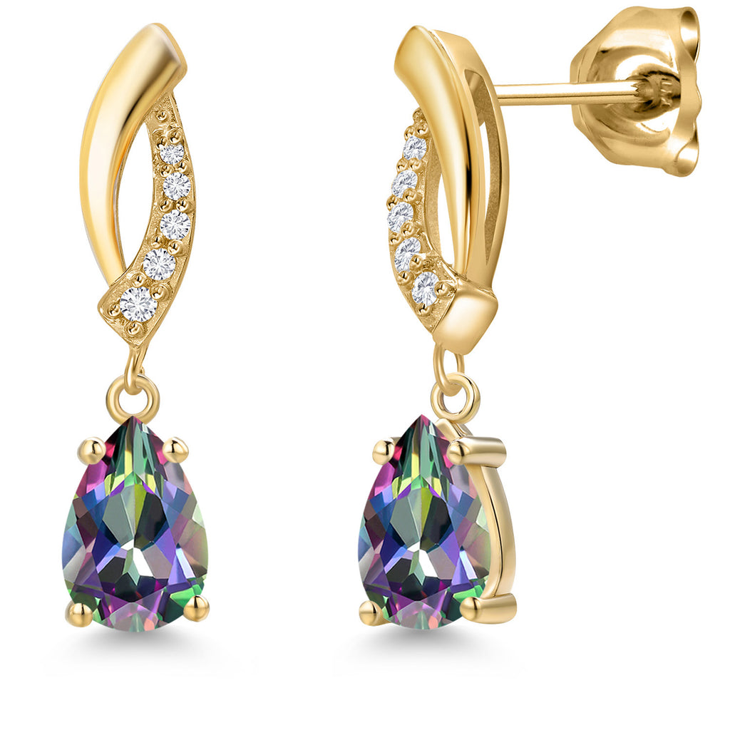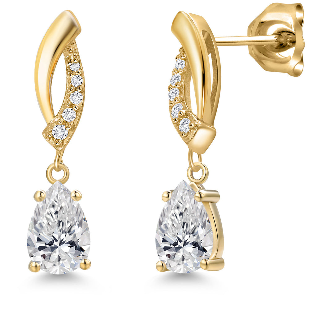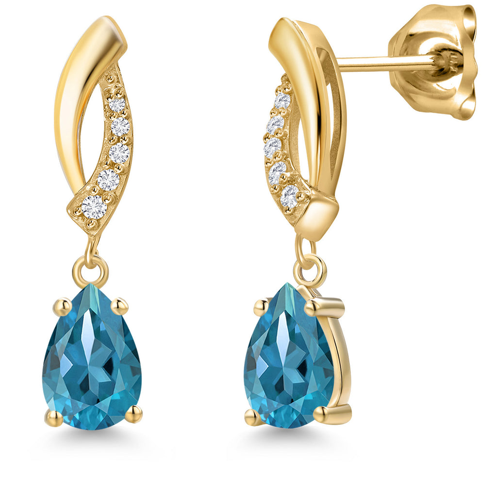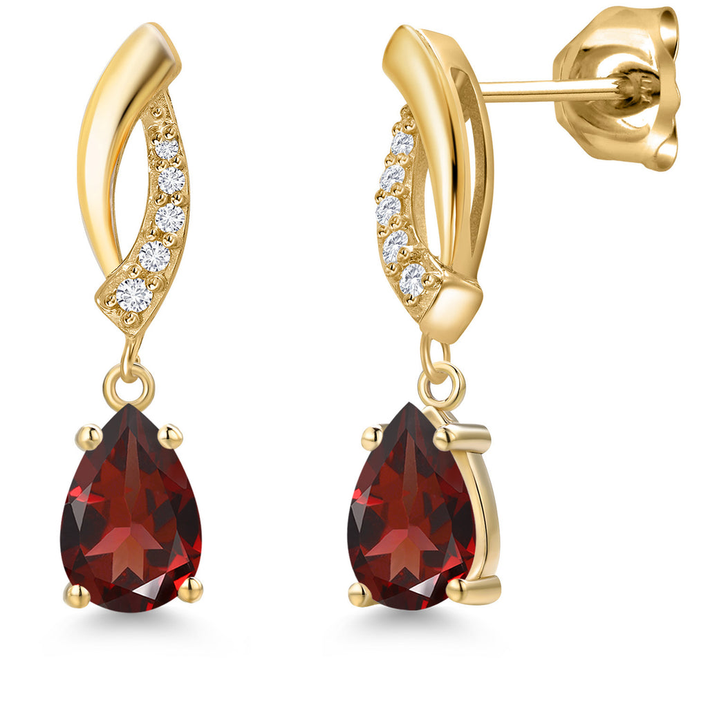 ELEGANT INFINITY DESIGN: These 10K yellow gold dangle earrings feature a sophisticated infinity motif, highlighting vibrant 7X5MM pear-shaped gemstone birthstones paired with sparkling white Lab Grown Diamonds, creating a timeless and graceful look.
