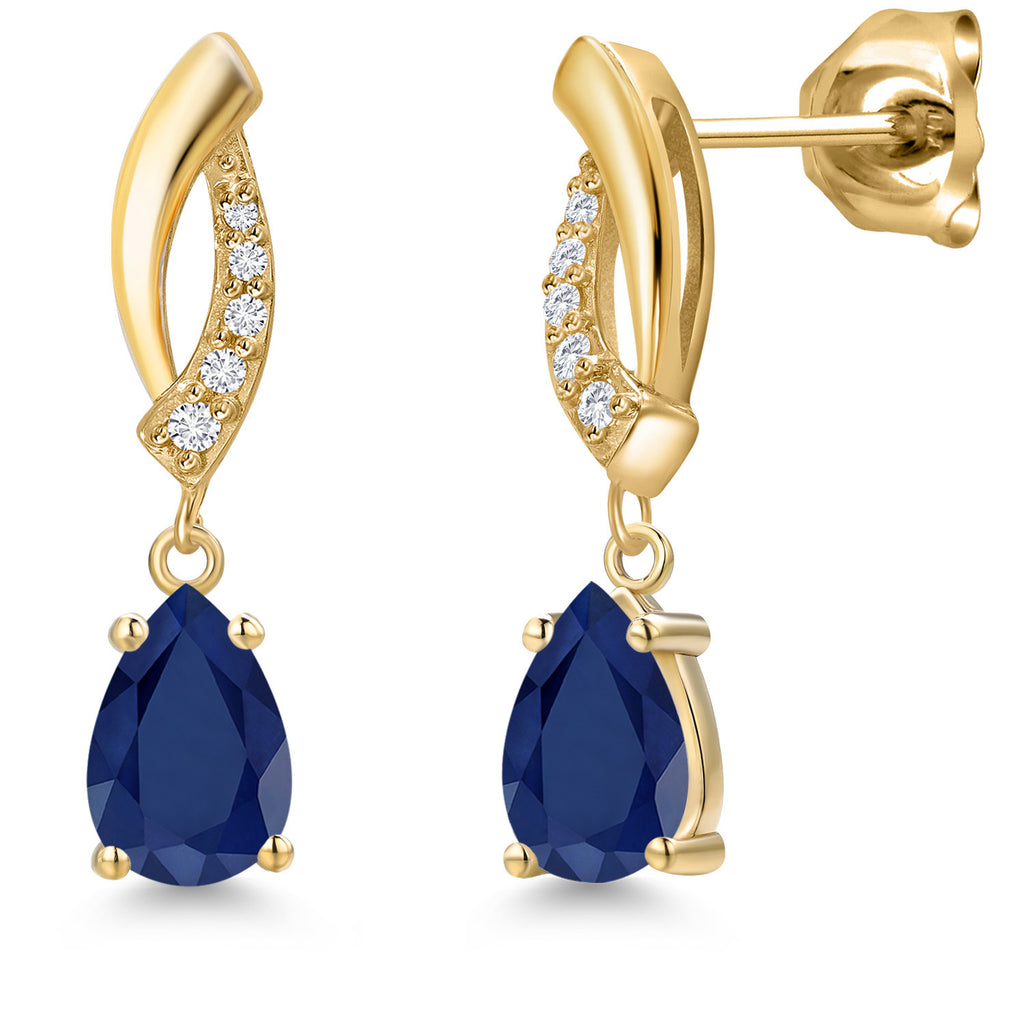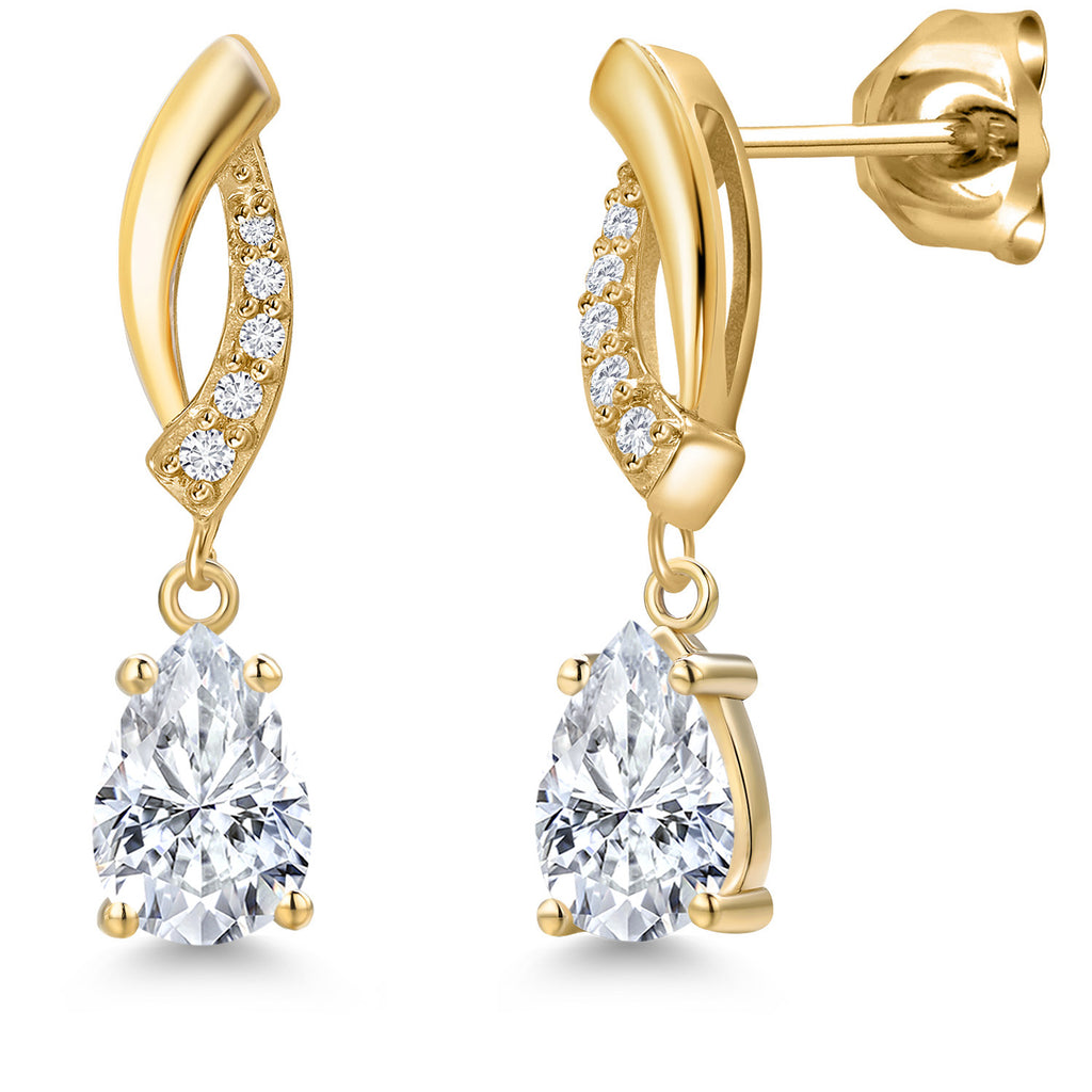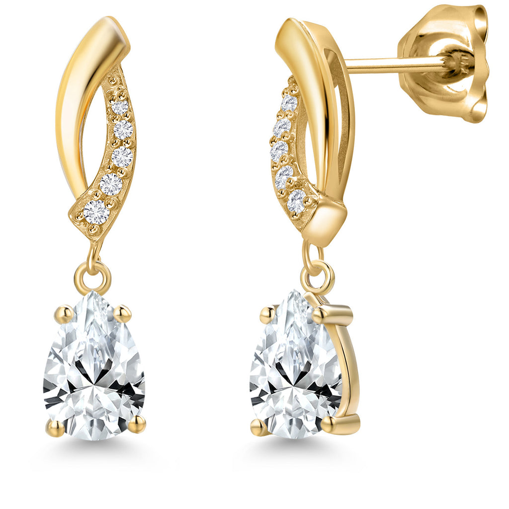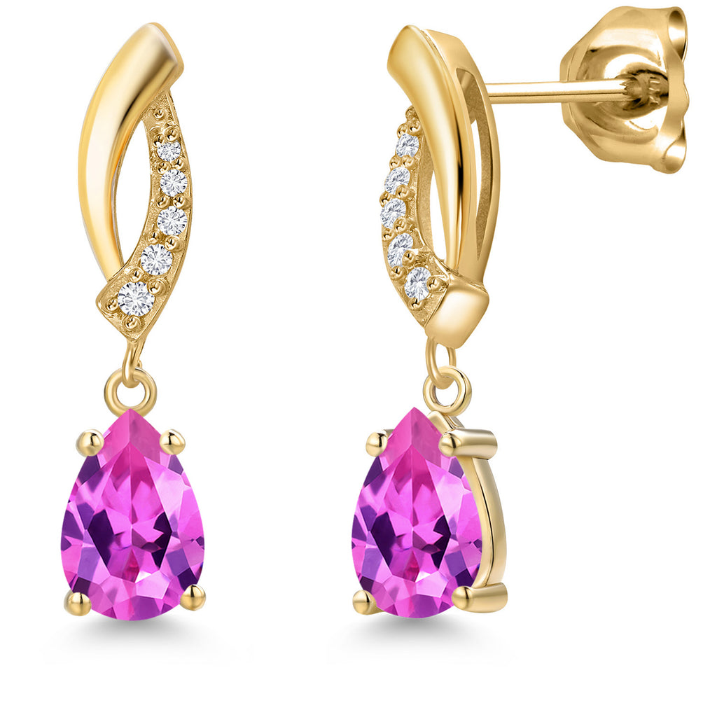 ELEGANT INFINITY DESIGN: These 10K yellow gold dangle earrings feature a sophisticated infinity motif, highlighting vibrant 7X5MM pear-shaped gemstone birthstones paired with sparkling white Lab Grown Diamonds, creating a timeless and graceful look.