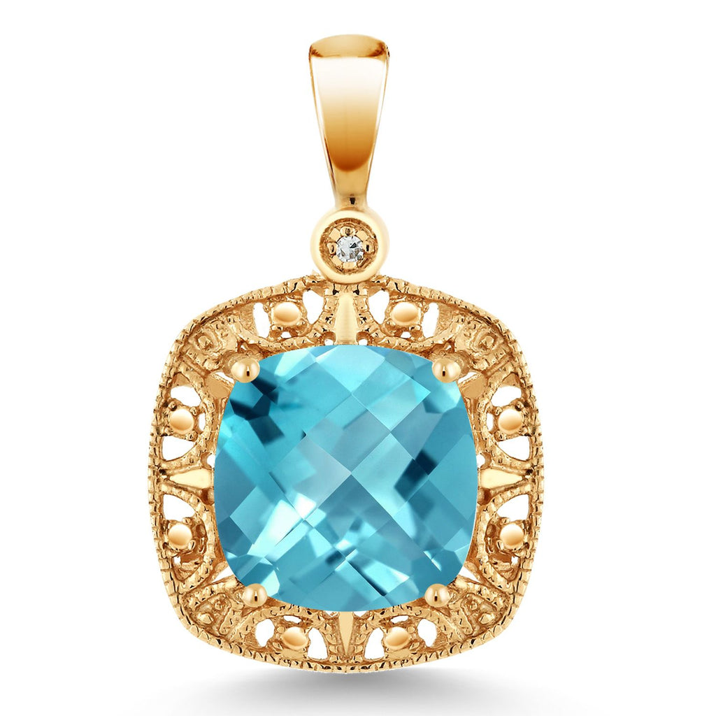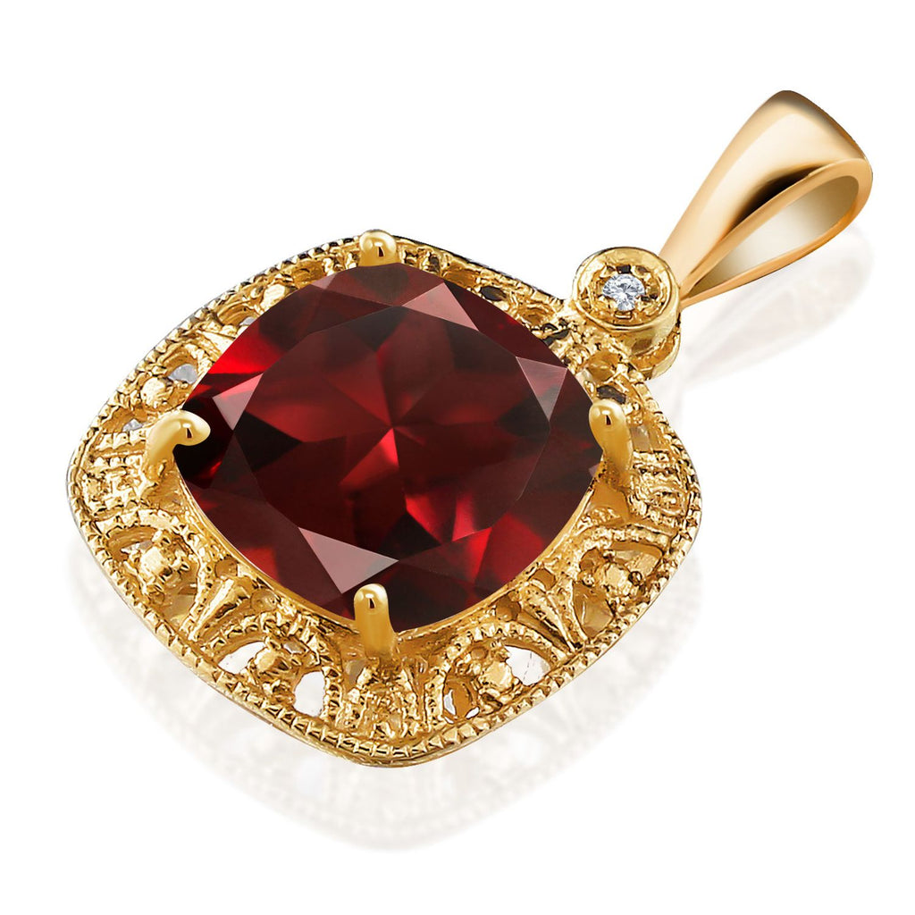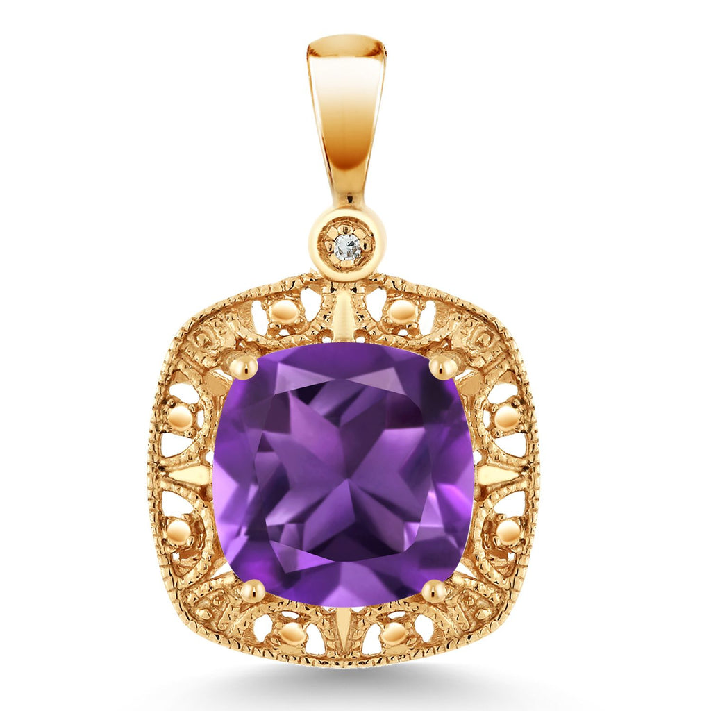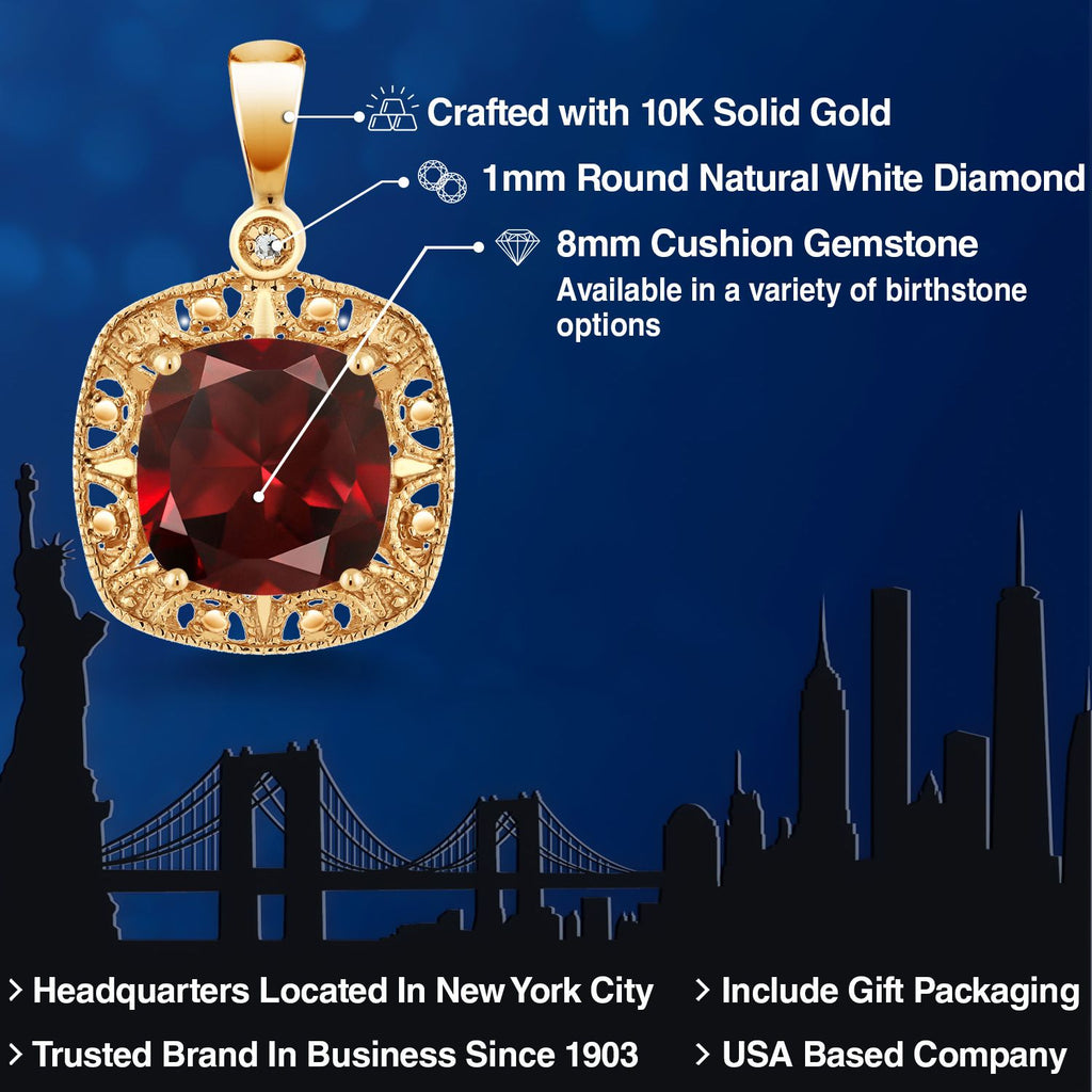 2-3 Cttw 10K Yellow Gold 8MM Cushion Gemstone Birthstone and White Diamond Accent Necklace | Gold Pendant Necklace For Women | Fine Jewelry Gifts for Her Mom Women Wife