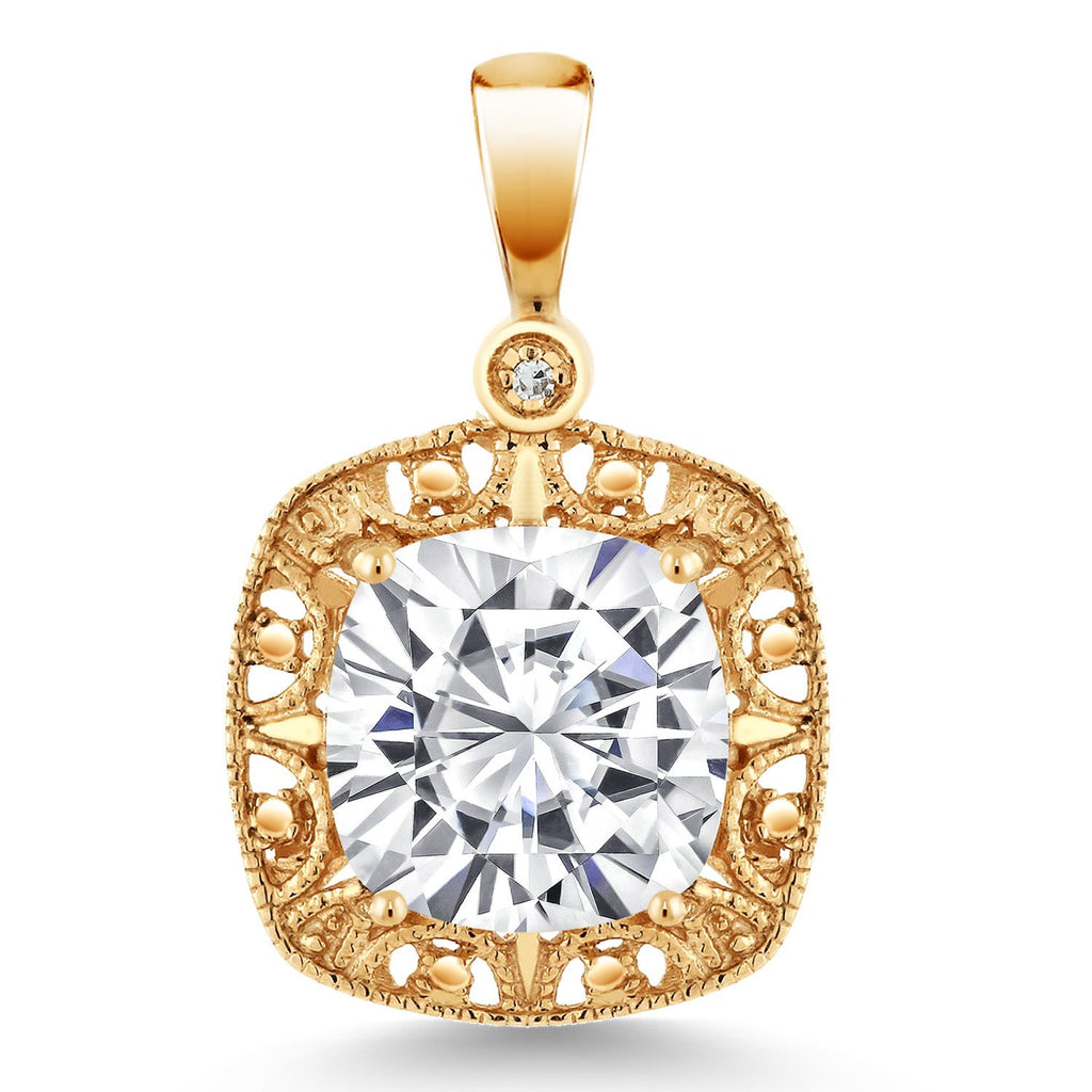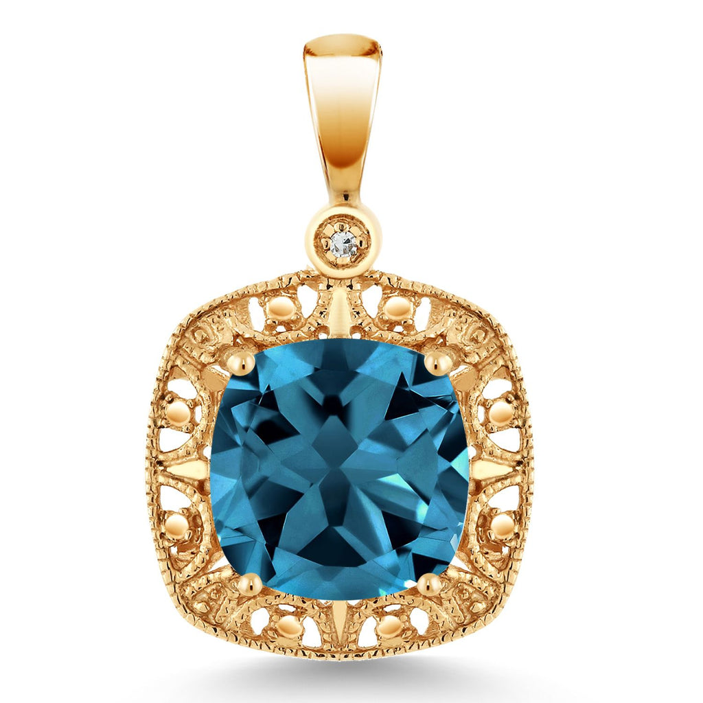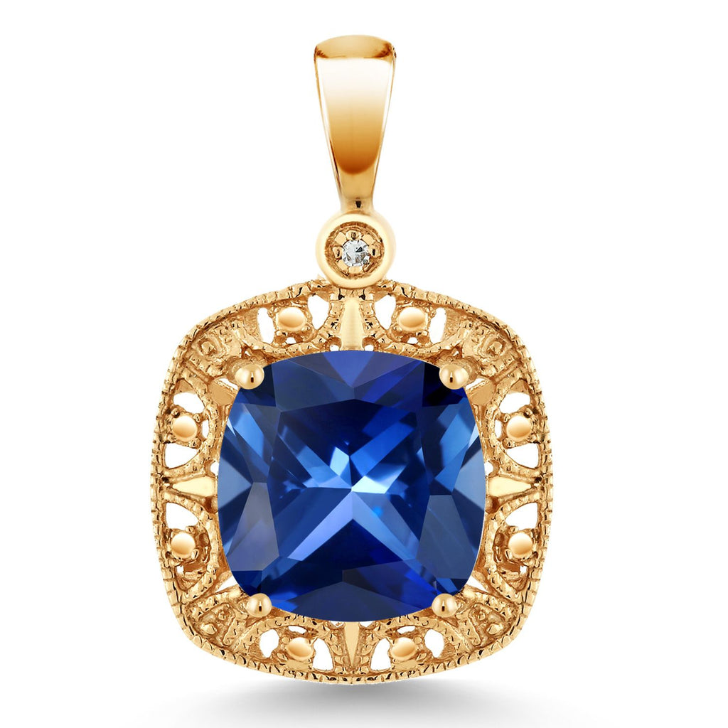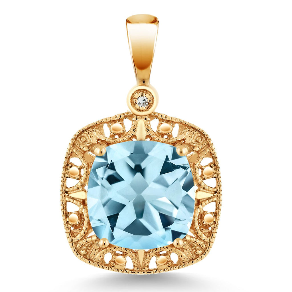 2-3 Cttw 10K Yellow Gold 8MM Cushion Gemstone Birthstone and White Diamond Accent Necklace | Gold Pendant Necklace For Women | Fine Jewelry Gifts for Her Mom Women Wife