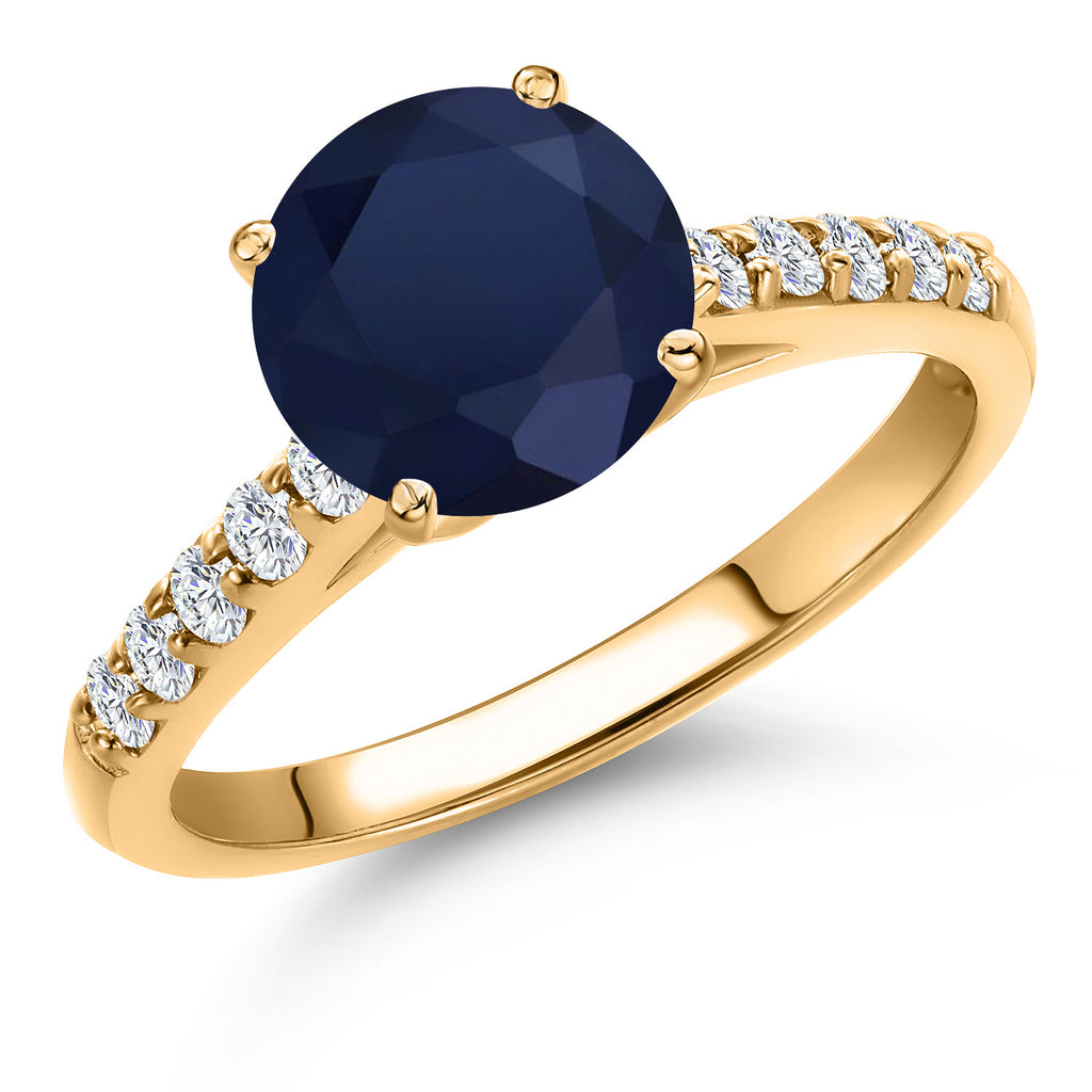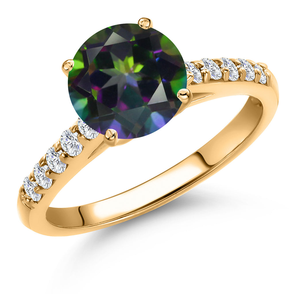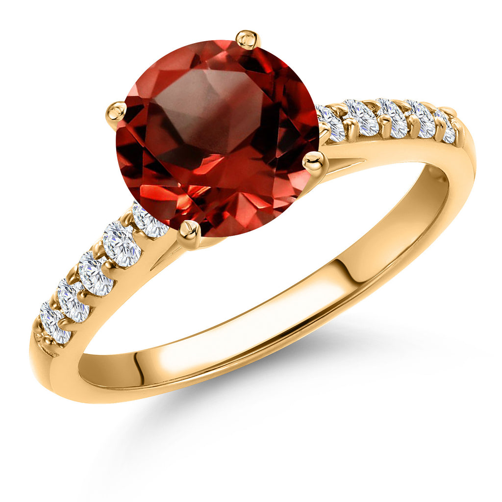 10K Yellow Gold 8MM Round Gemstone Birthstone and White Lab Grown Diamond Engagement Ring | Wedding Anniversary Promise Ring For Women | Available 5, 6, 7, 8, 9