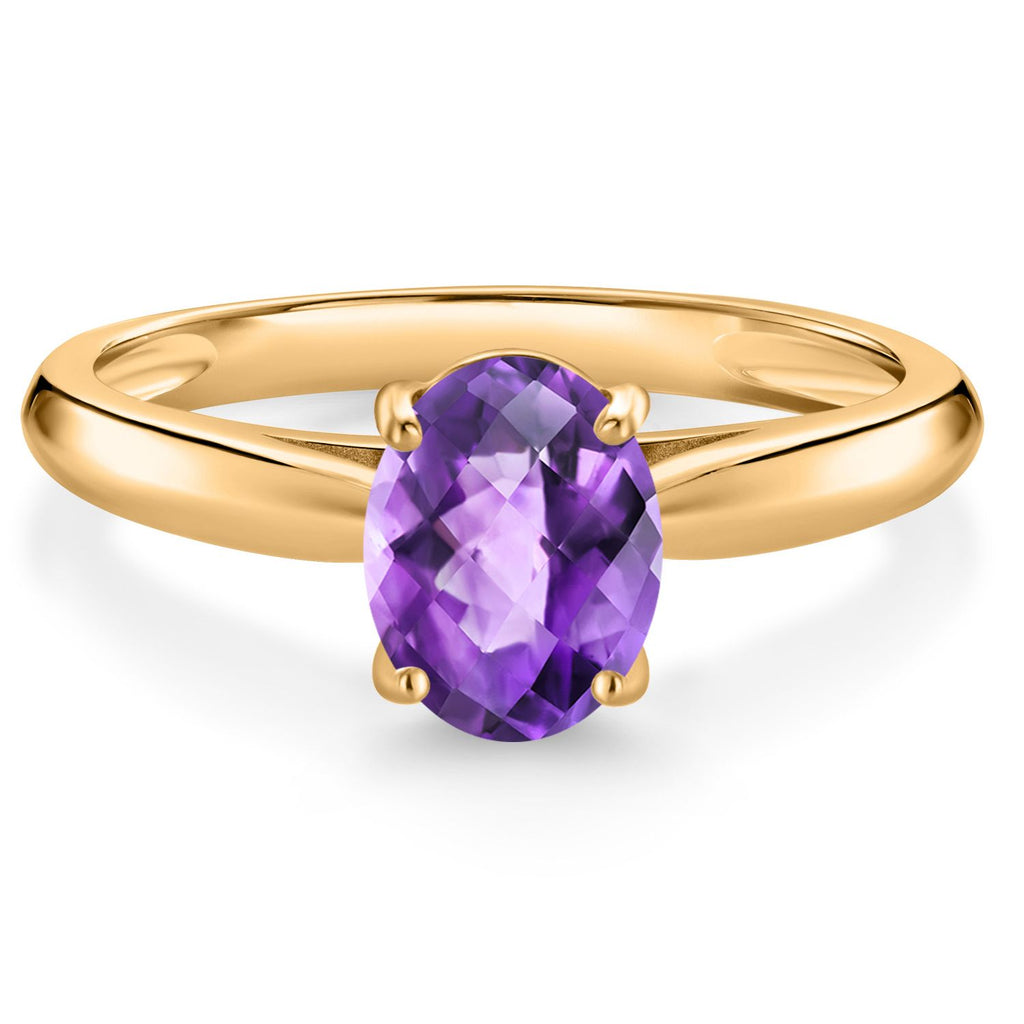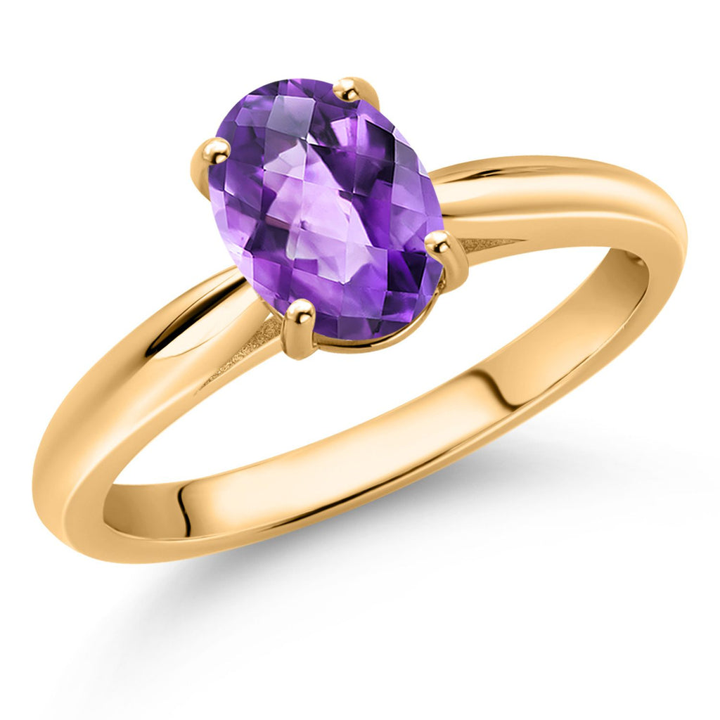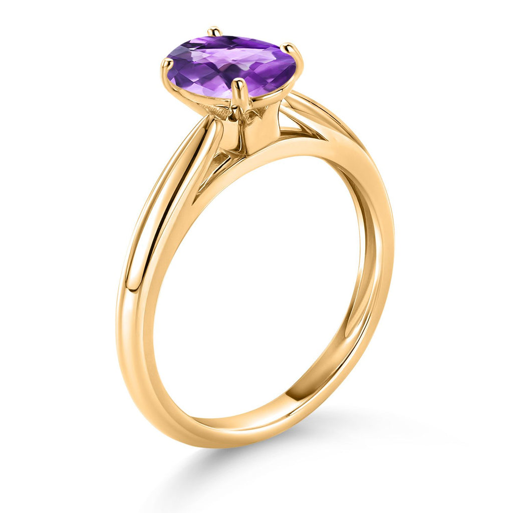 10K Yellow Gold 8X6MM Oval Gemstone Birthstone Solitaire Engagement Ring | Wedding Anniversary Promise Gold Ring For Women | Available In Size 5, 6, 7, 8, 9