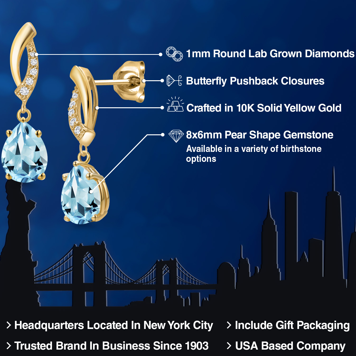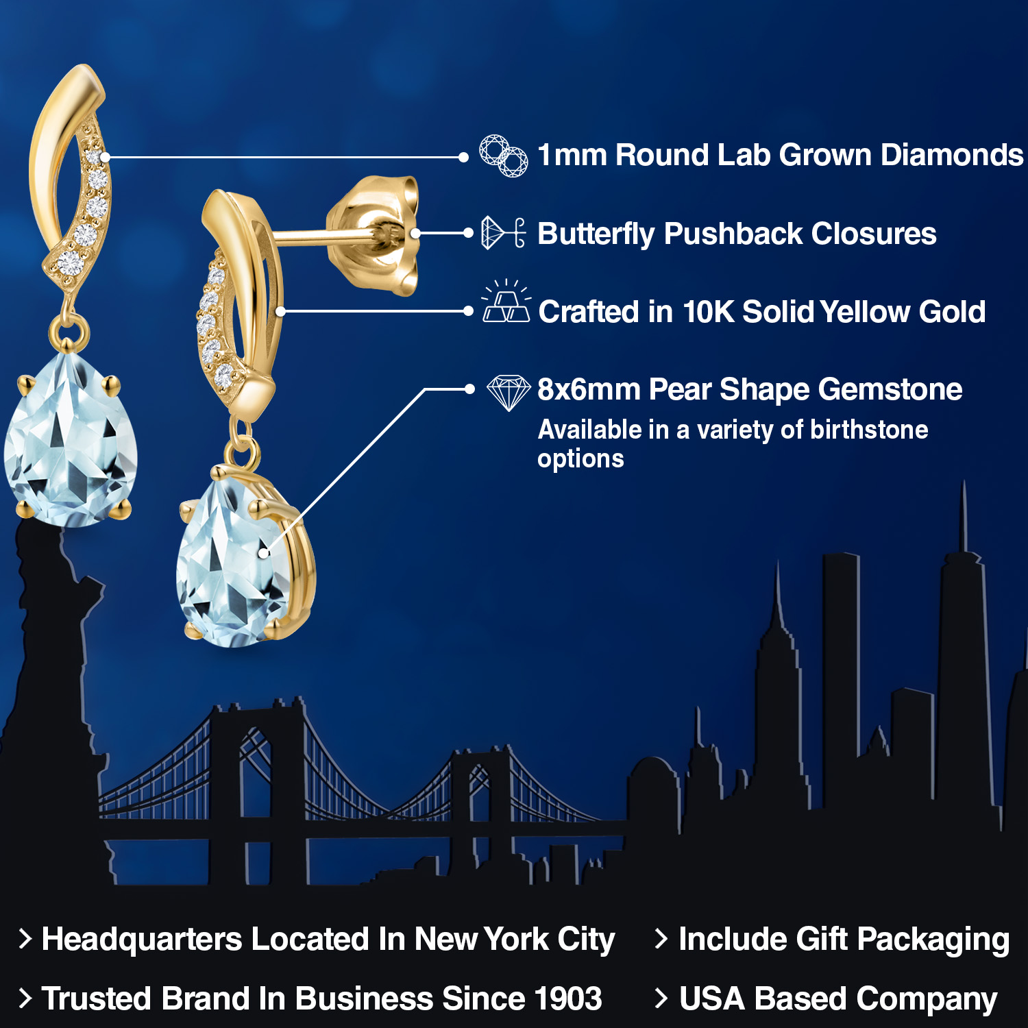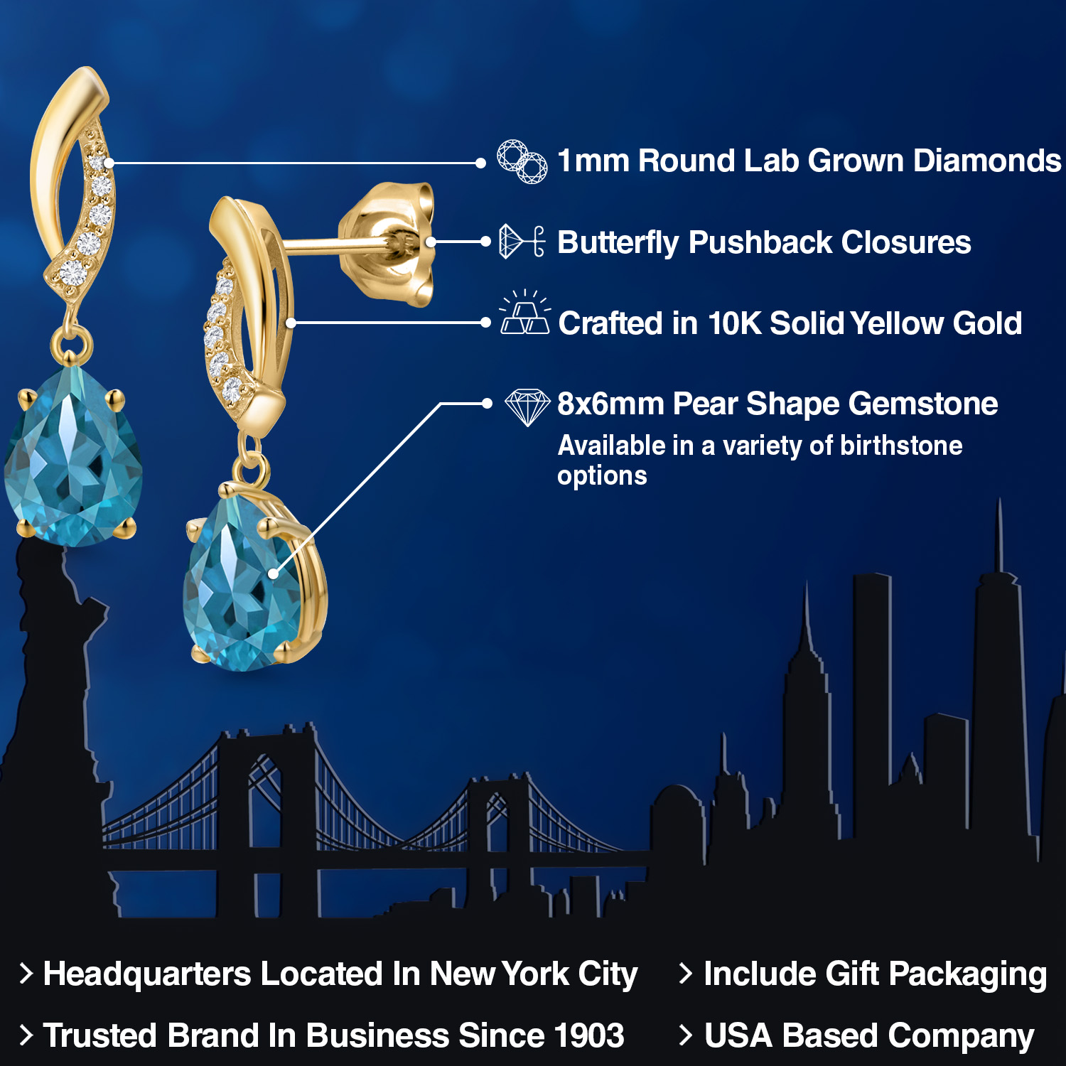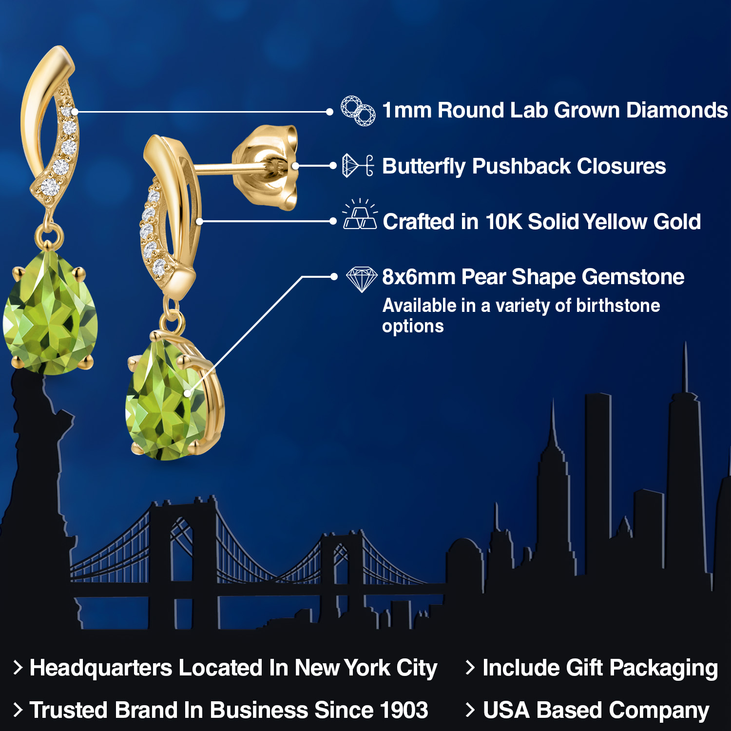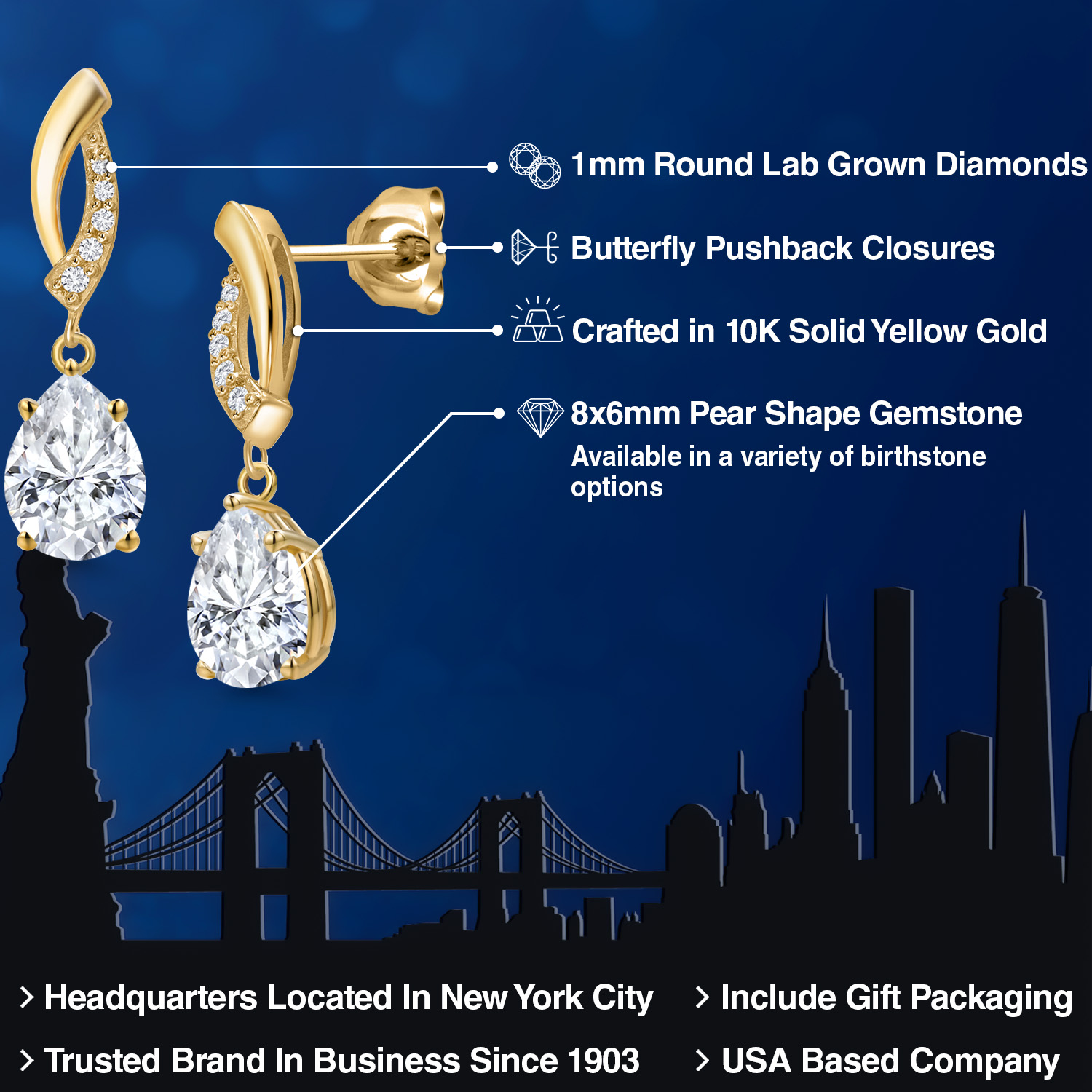 ELEGANT INFINITY DESIGN: These 10K yellow gold dangle earrings feature a timeless infinity motif, beautifully accentuated with 8X6MM pear-shaped gemstone birthstones and sparkling White Lab Grown Diamonds, creating a sophisticated and graceful look.