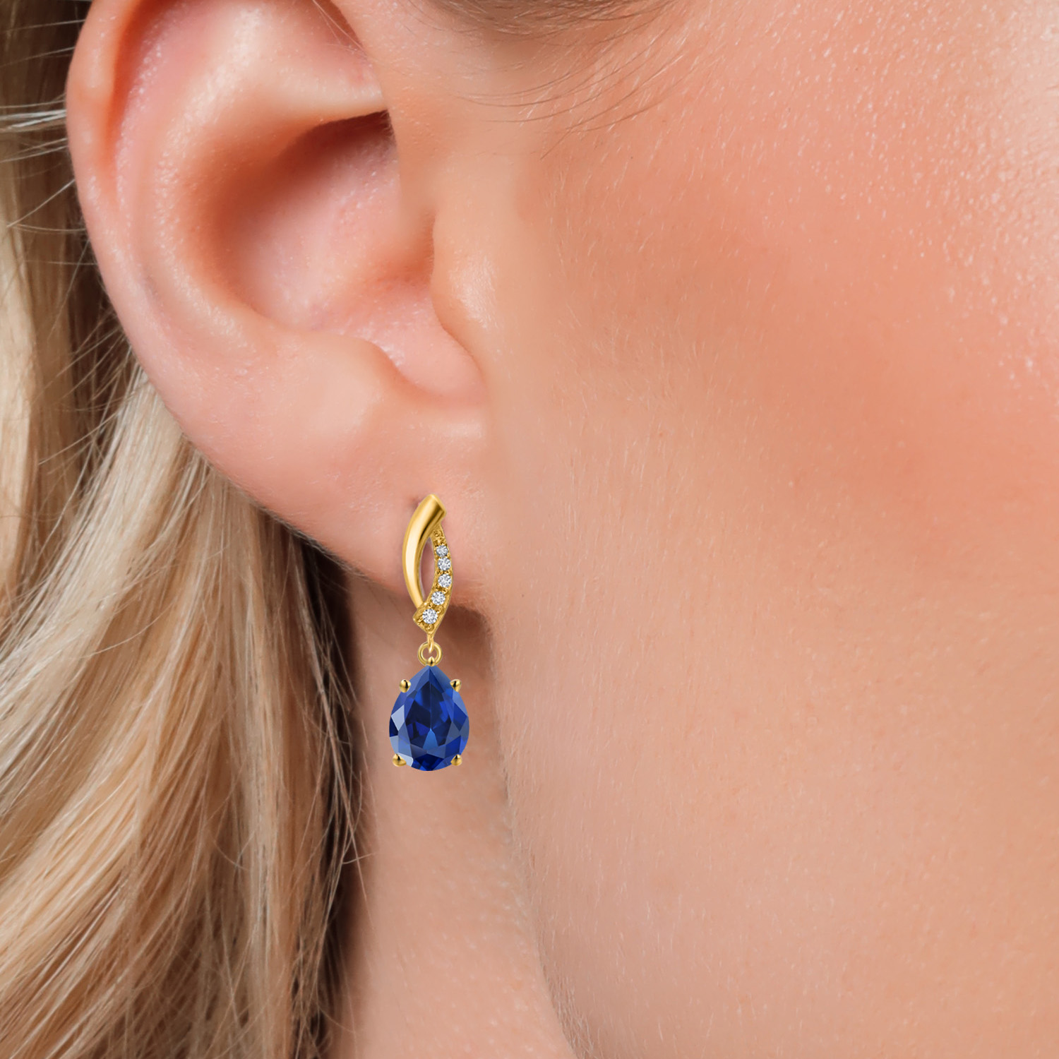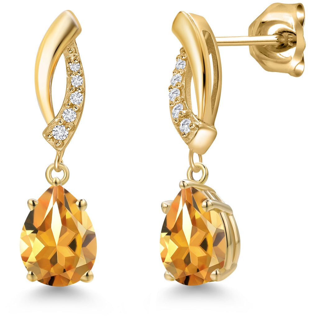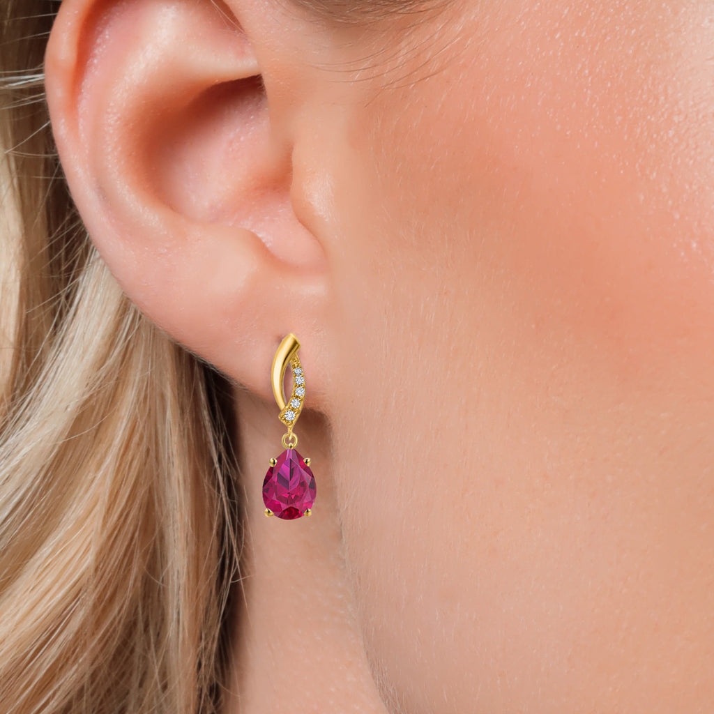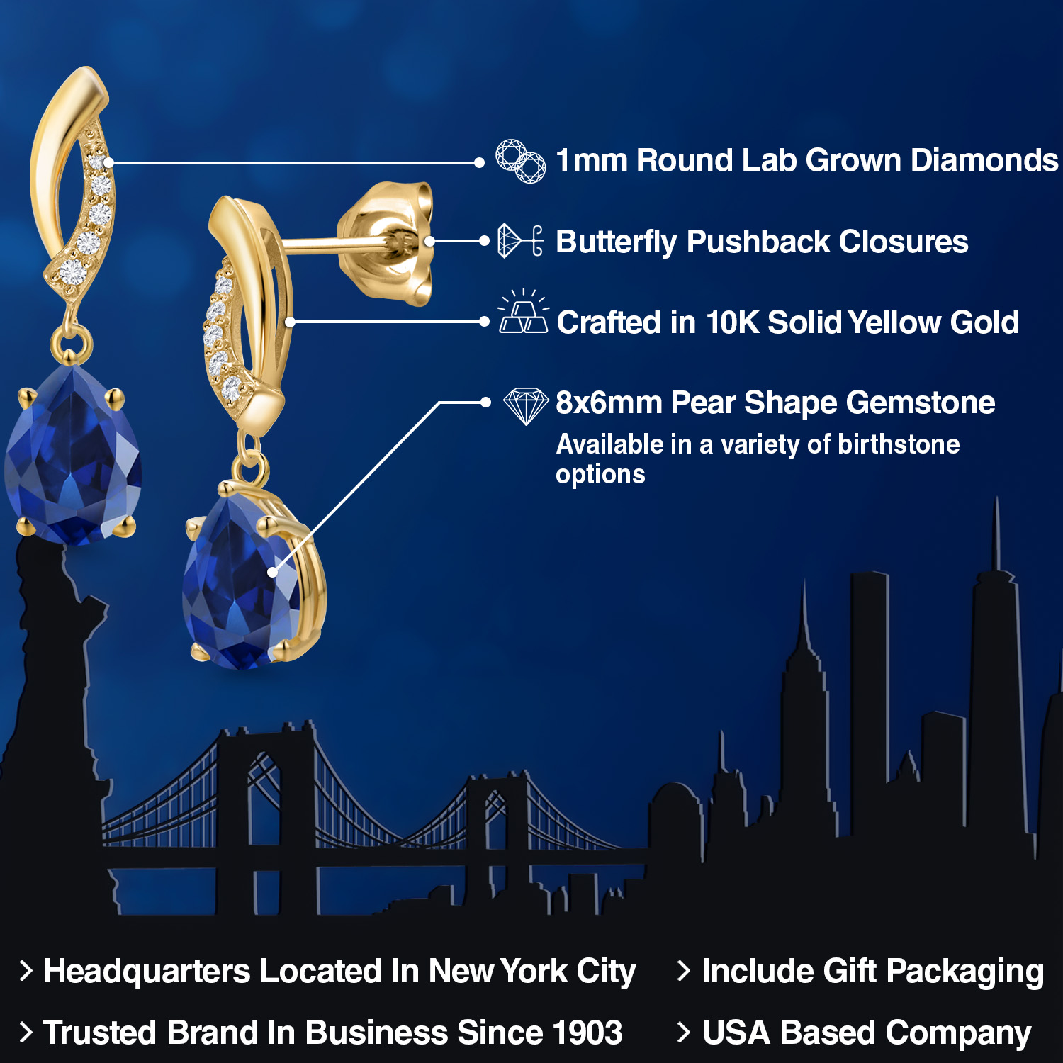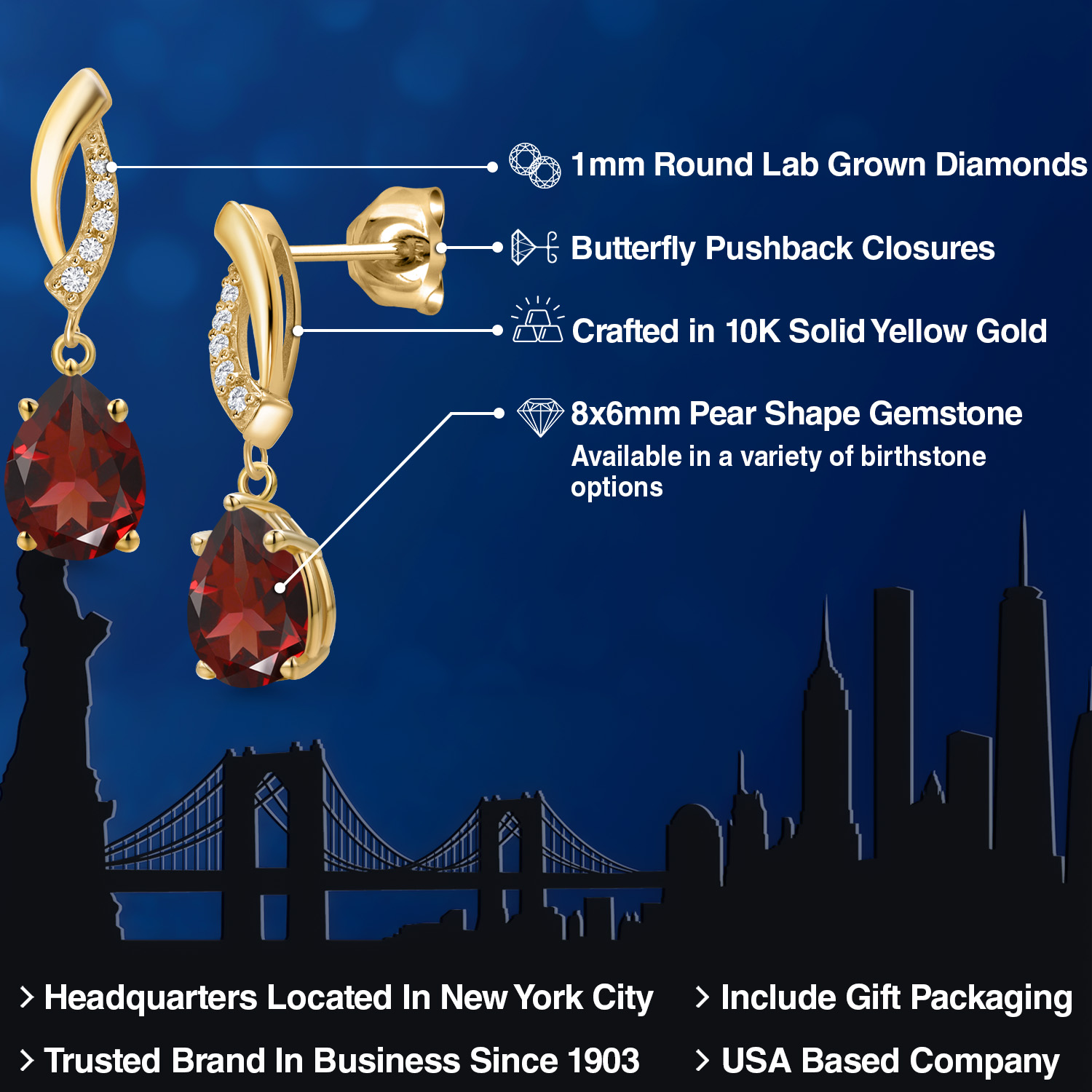 ELEGANT INFINITY DESIGN: These 10K yellow gold dangle earrings feature a timeless infinity motif, beautifully accentuated with 8X6MM pear-shaped gemstone birthstones and sparkling White Lab Grown Diamonds, creating a sophisticated and graceful look.