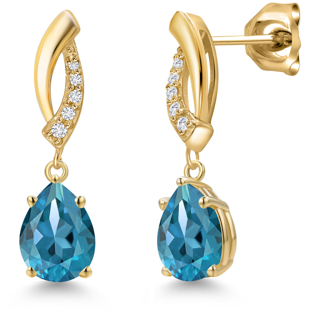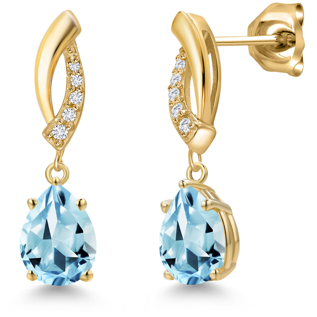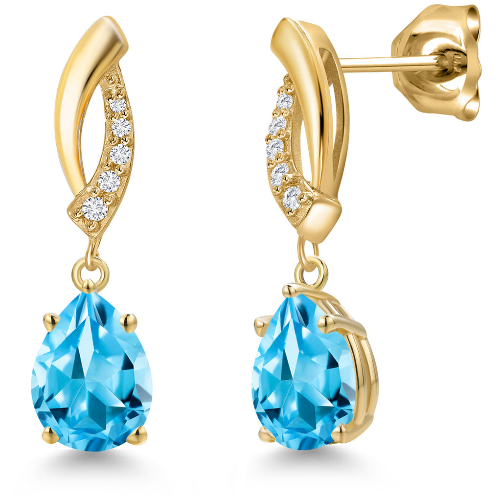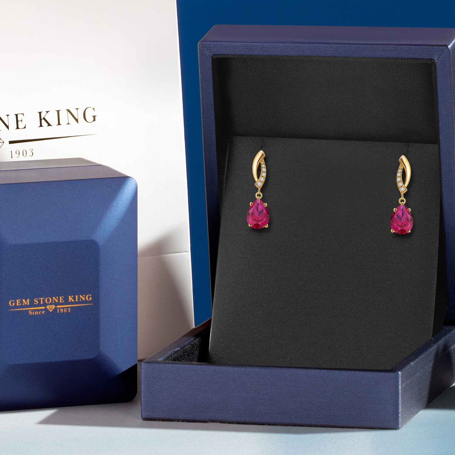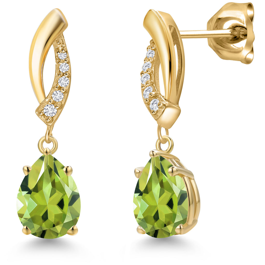 ELEGANT INFINITY DESIGN: These 10K yellow gold dangle earrings feature a timeless infinity motif, beautifully accentuated with 8X6MM pear-shaped gemstone birthstones and sparkling White Lab Grown Diamonds, creating a sophisticated and graceful look.