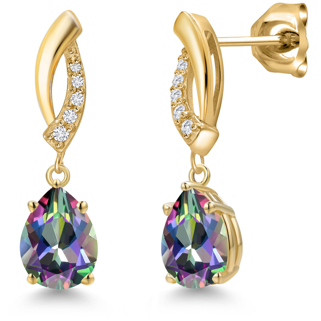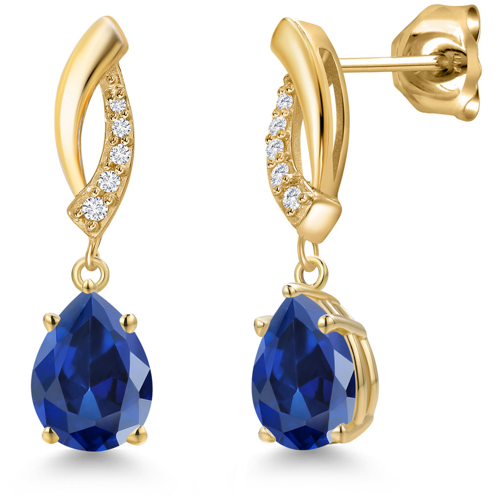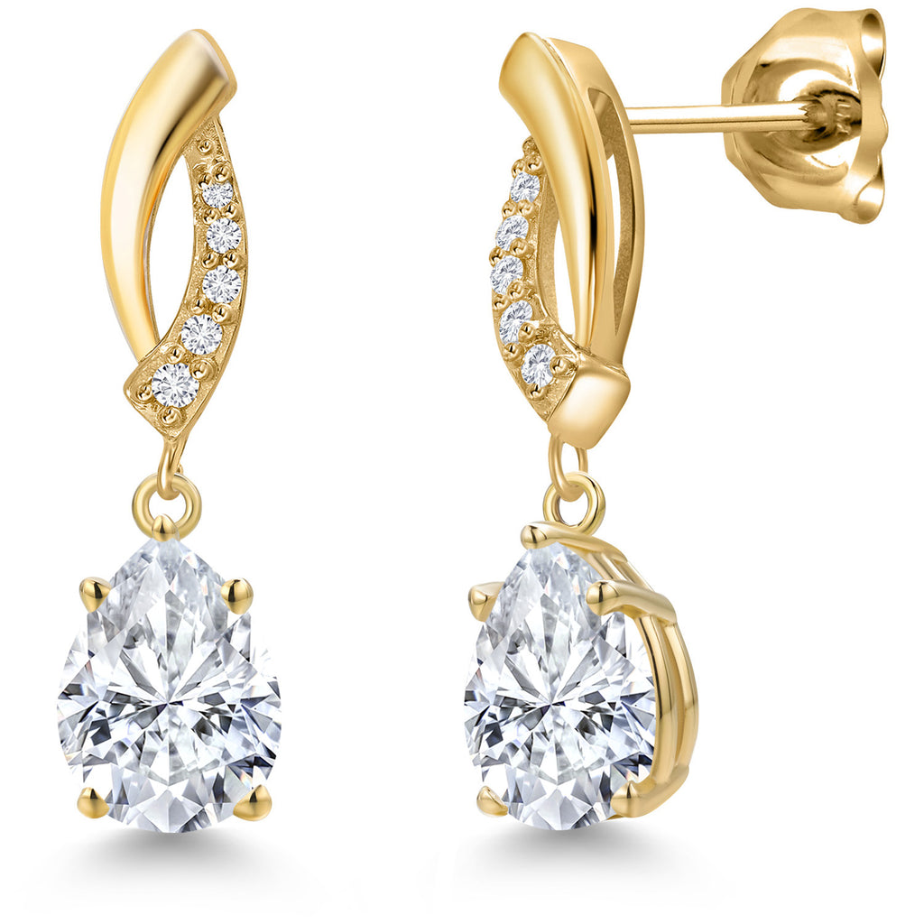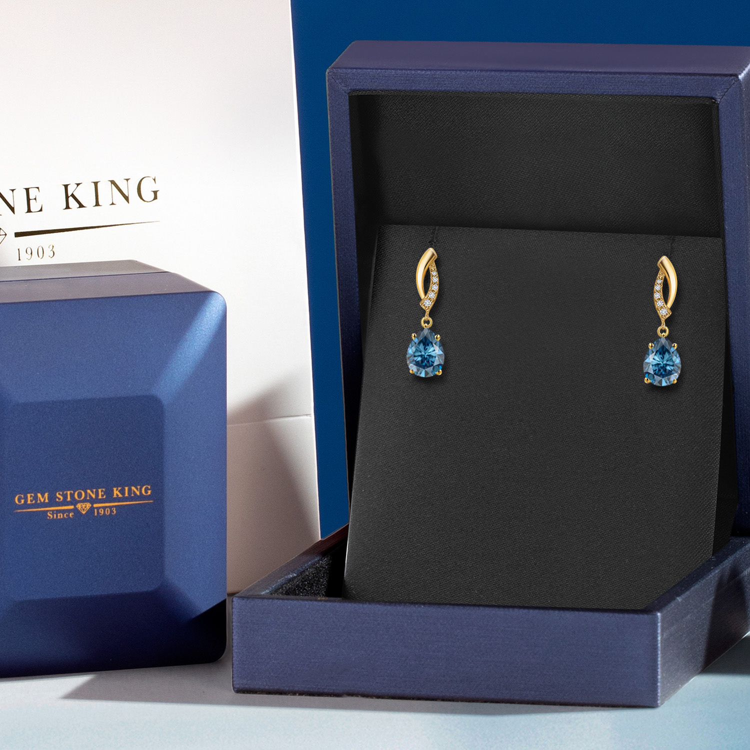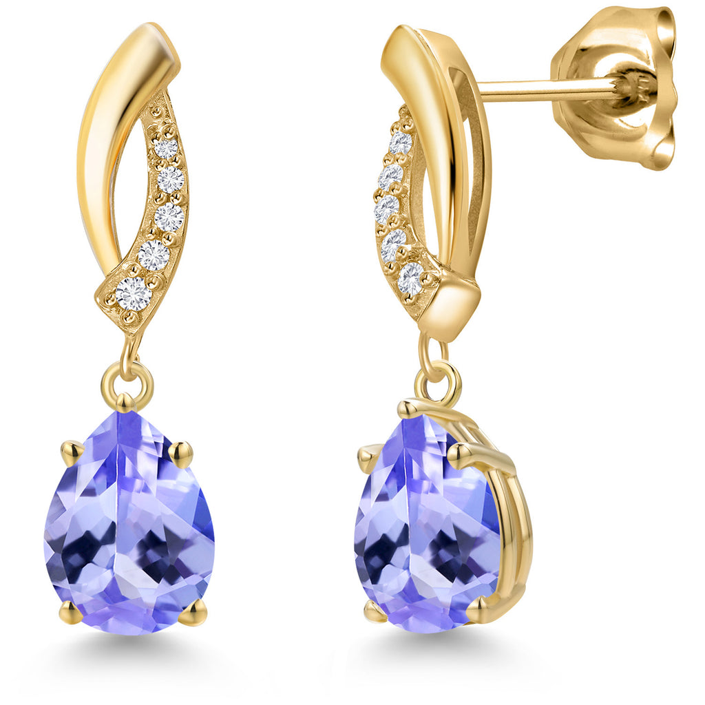 ELEGANT INFINITY DESIGN: These 10K yellow gold dangle earrings feature a timeless infinity motif, beautifully accentuated with 8X6MM pear-shaped gemstone birthstones and sparkling White Lab Grown Diamonds, creating a sophisticated and graceful look.