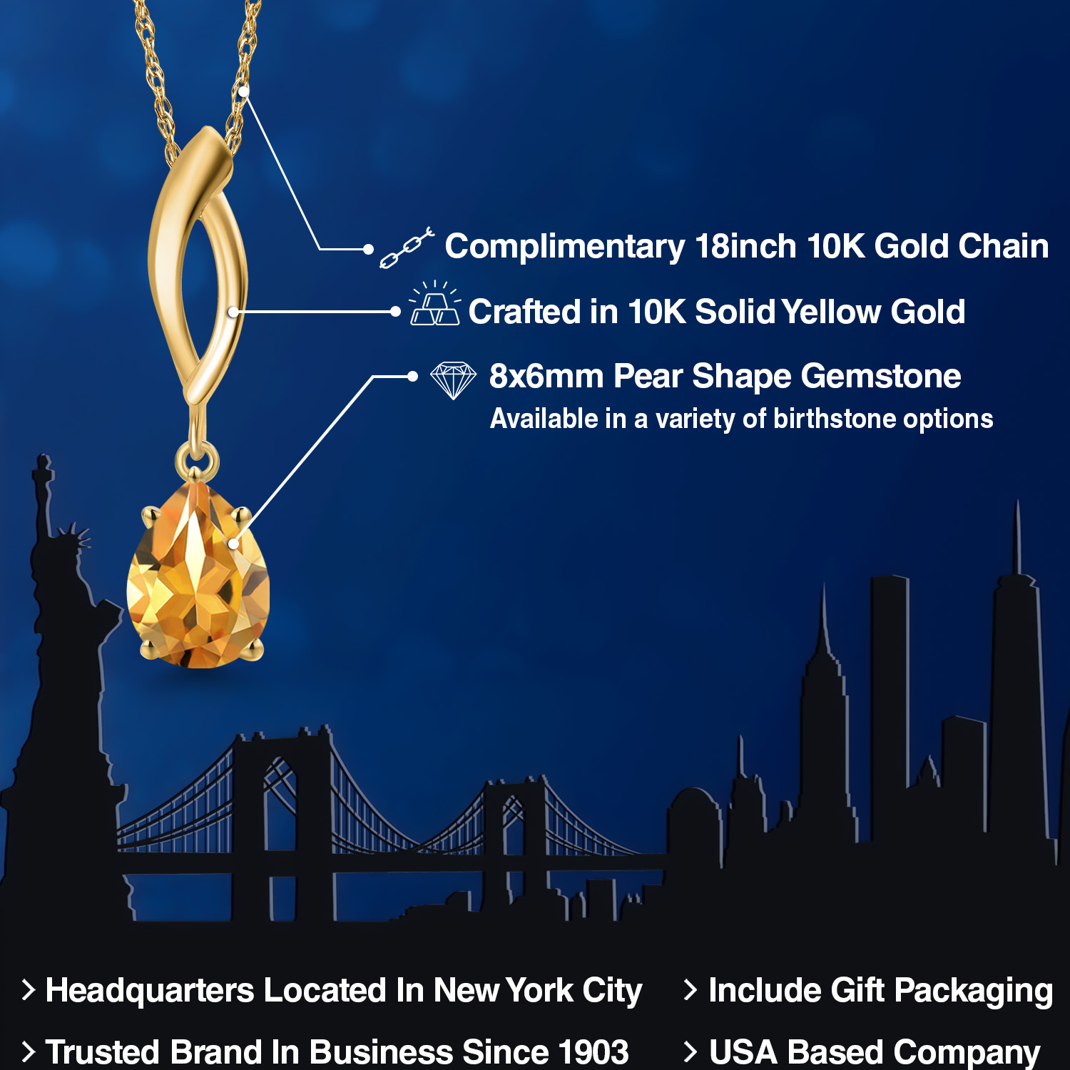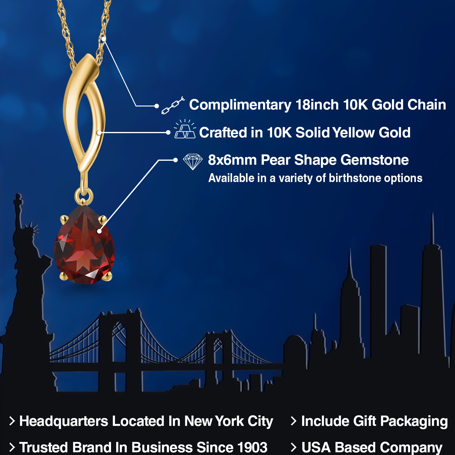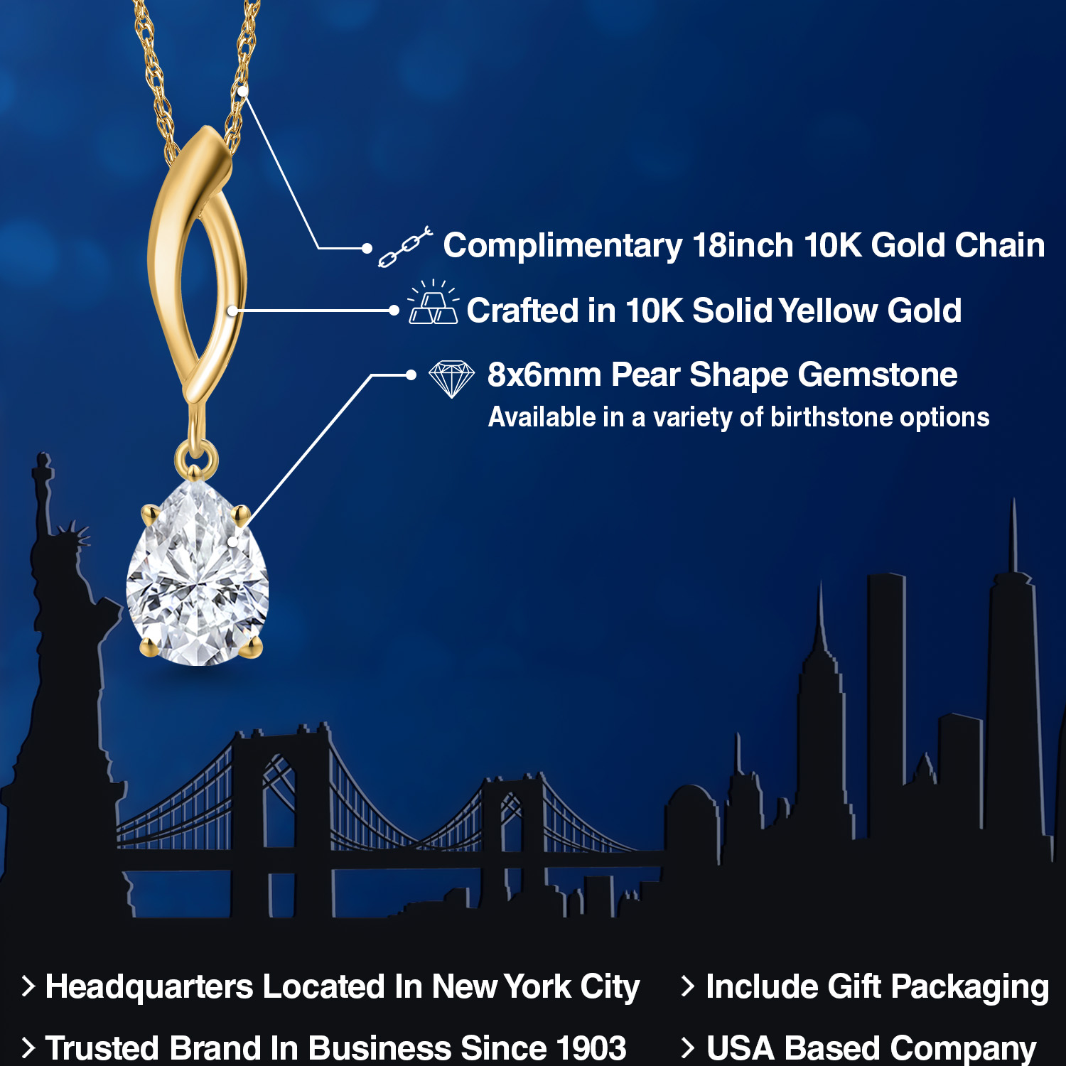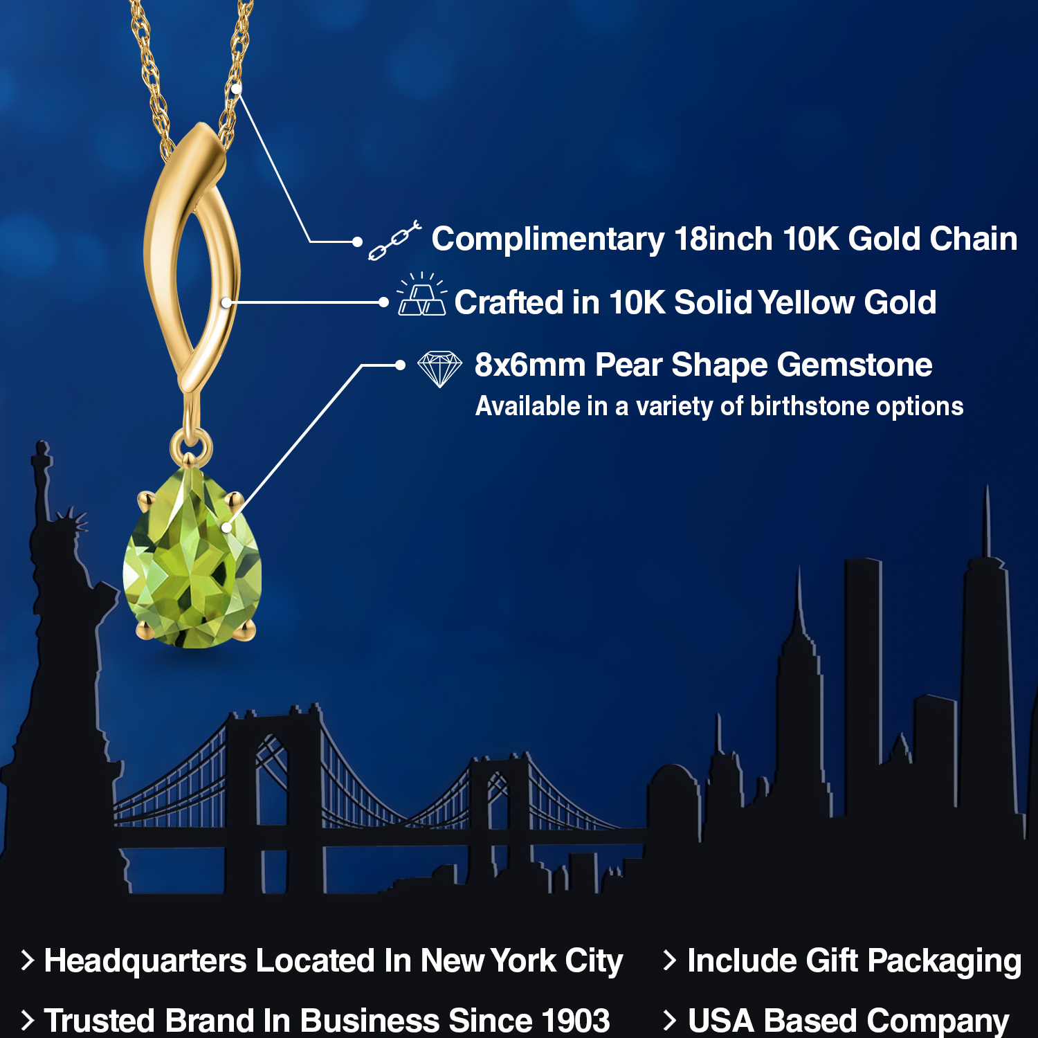 ELEGANT INFINITY DESIGN: This 10K yellow gold pendant necklace features a graceful infinity motif, showcasing a stunning 8X6MM pear-shaped gemstone birthstone, creating a timeless and sophisticated accessory.