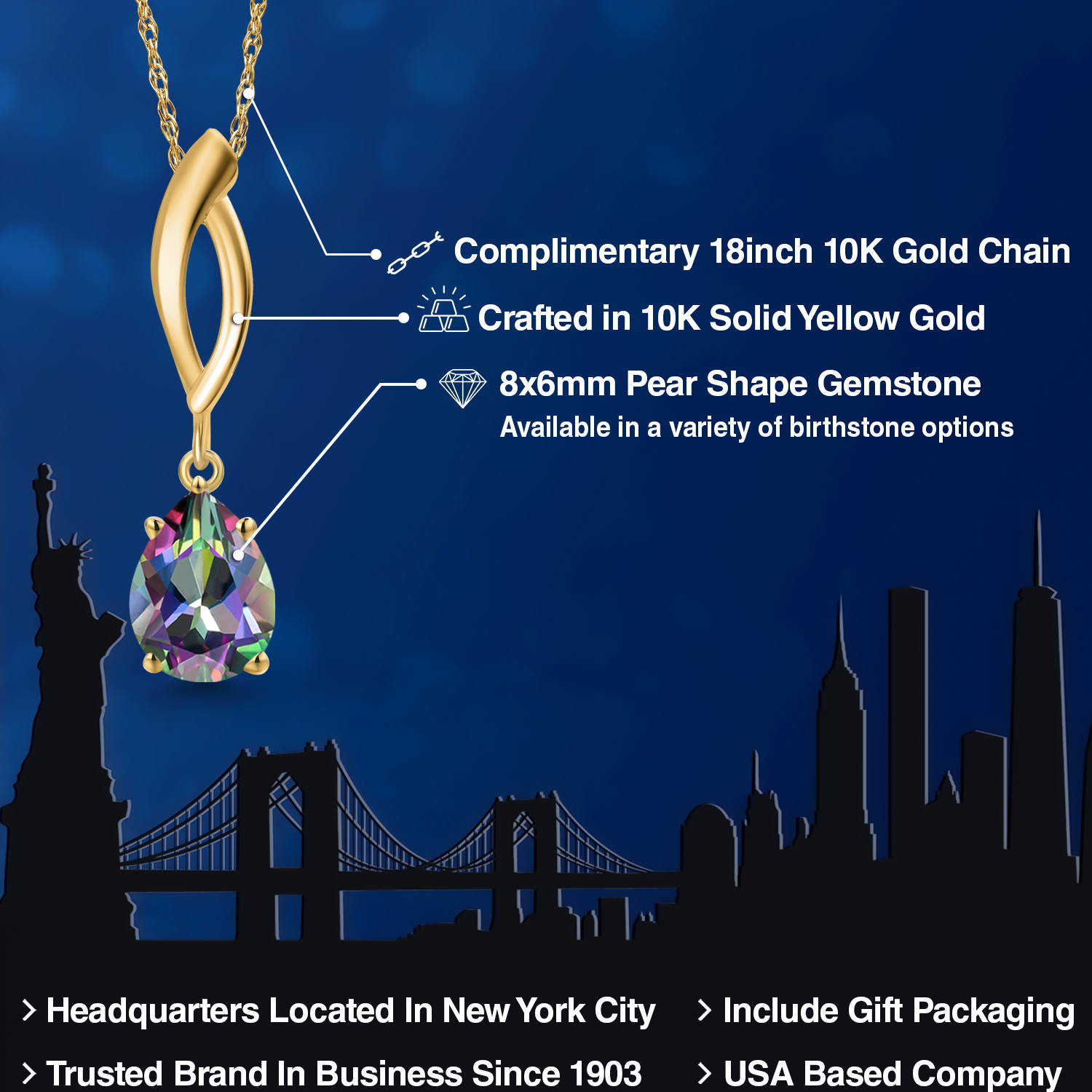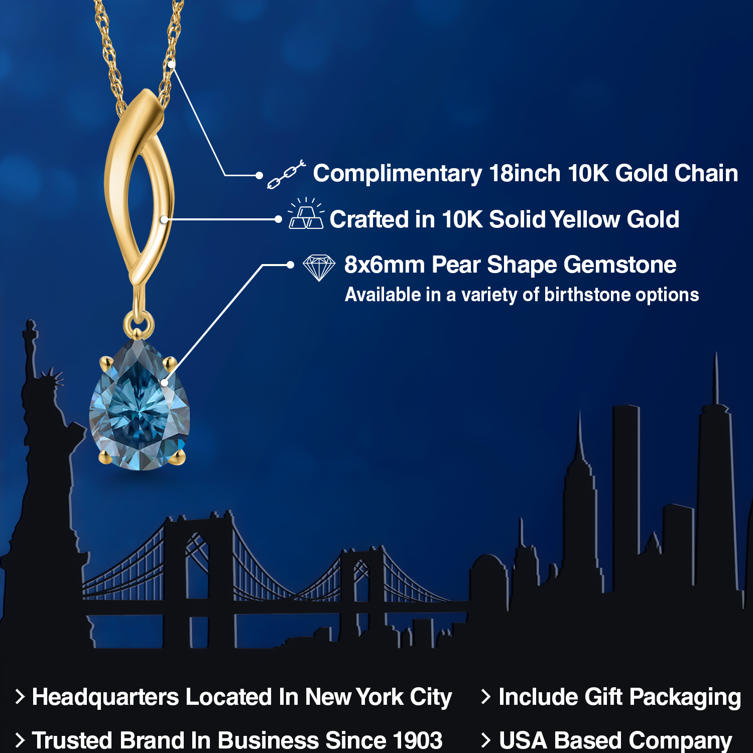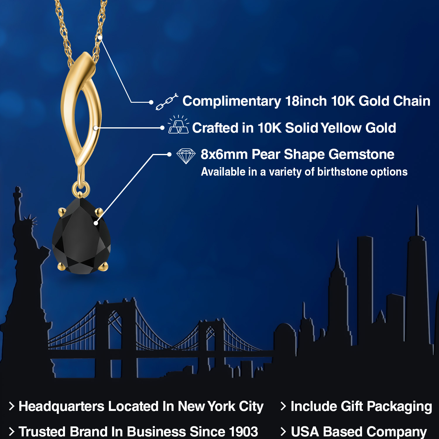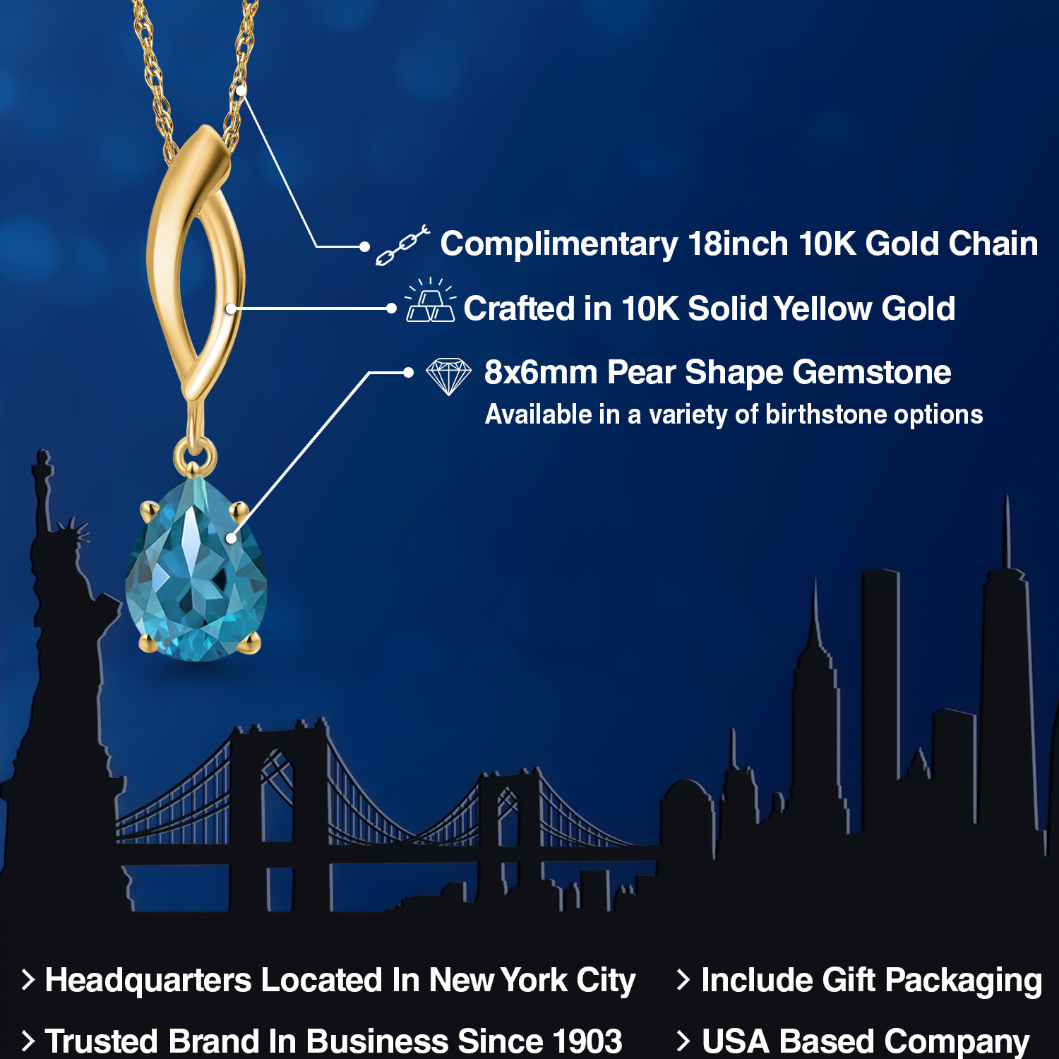 ELEGANT INFINITY DESIGN: This 10K yellow gold pendant necklace features a graceful infinity motif, showcasing a stunning 8X6MM pear-shaped gemstone birthstone, creating a timeless and sophisticated accessory.
