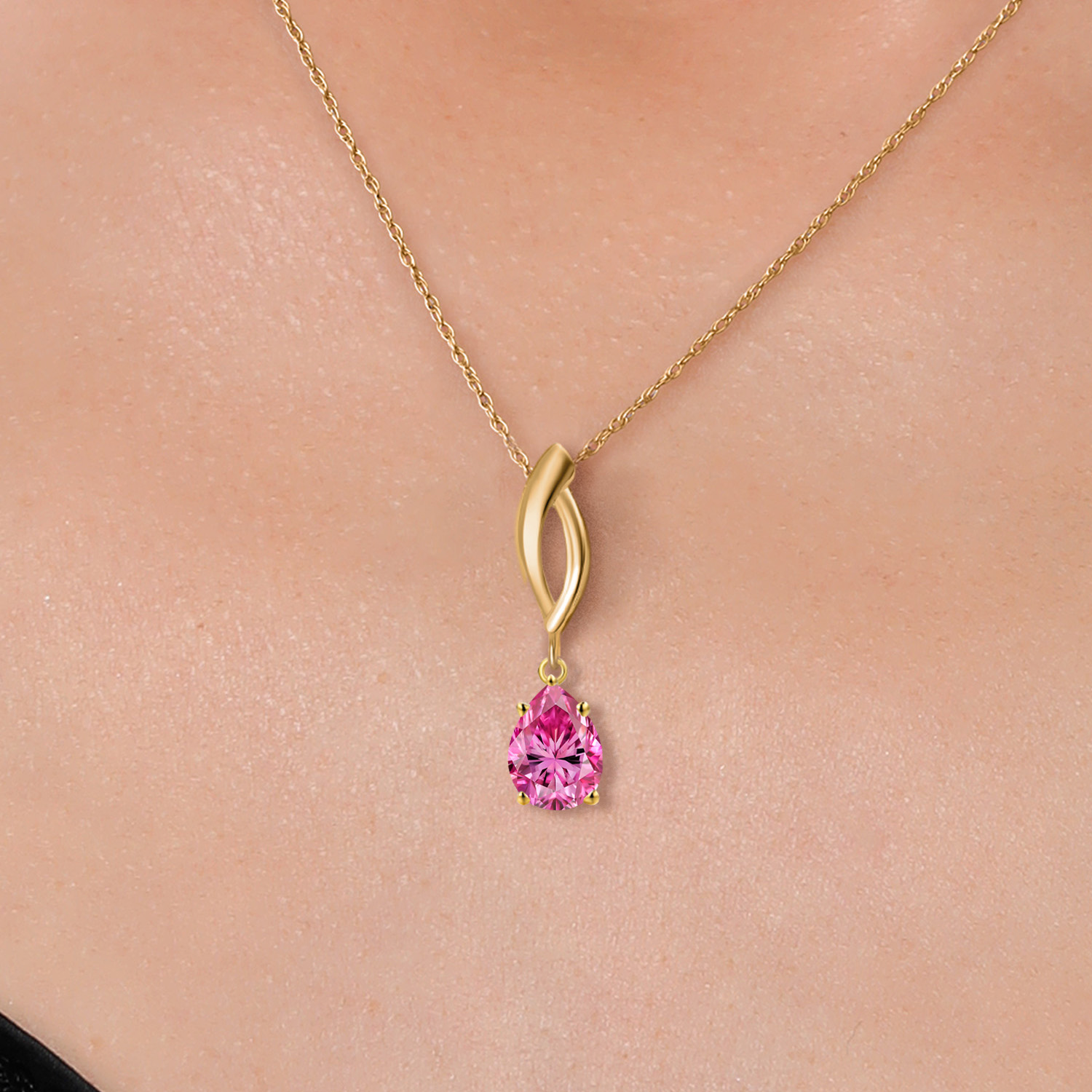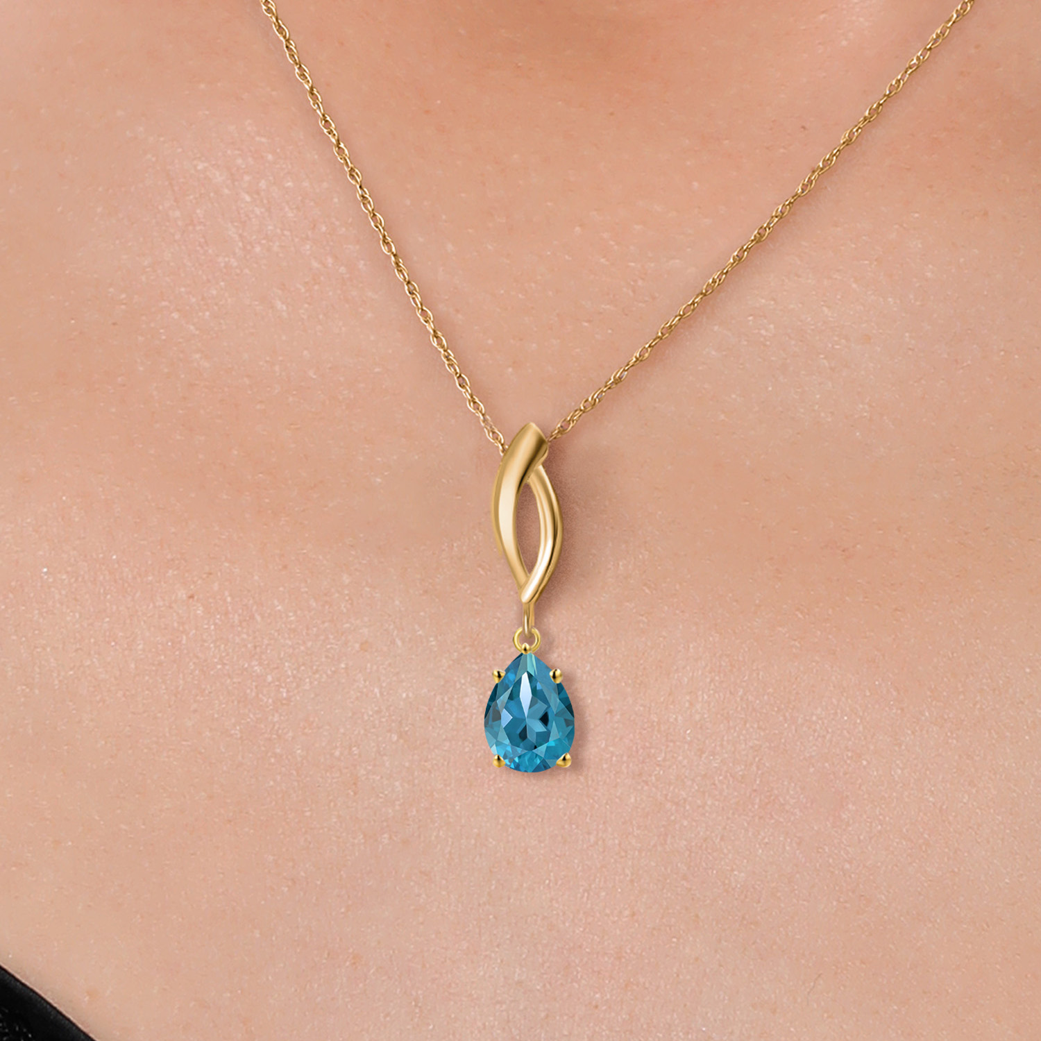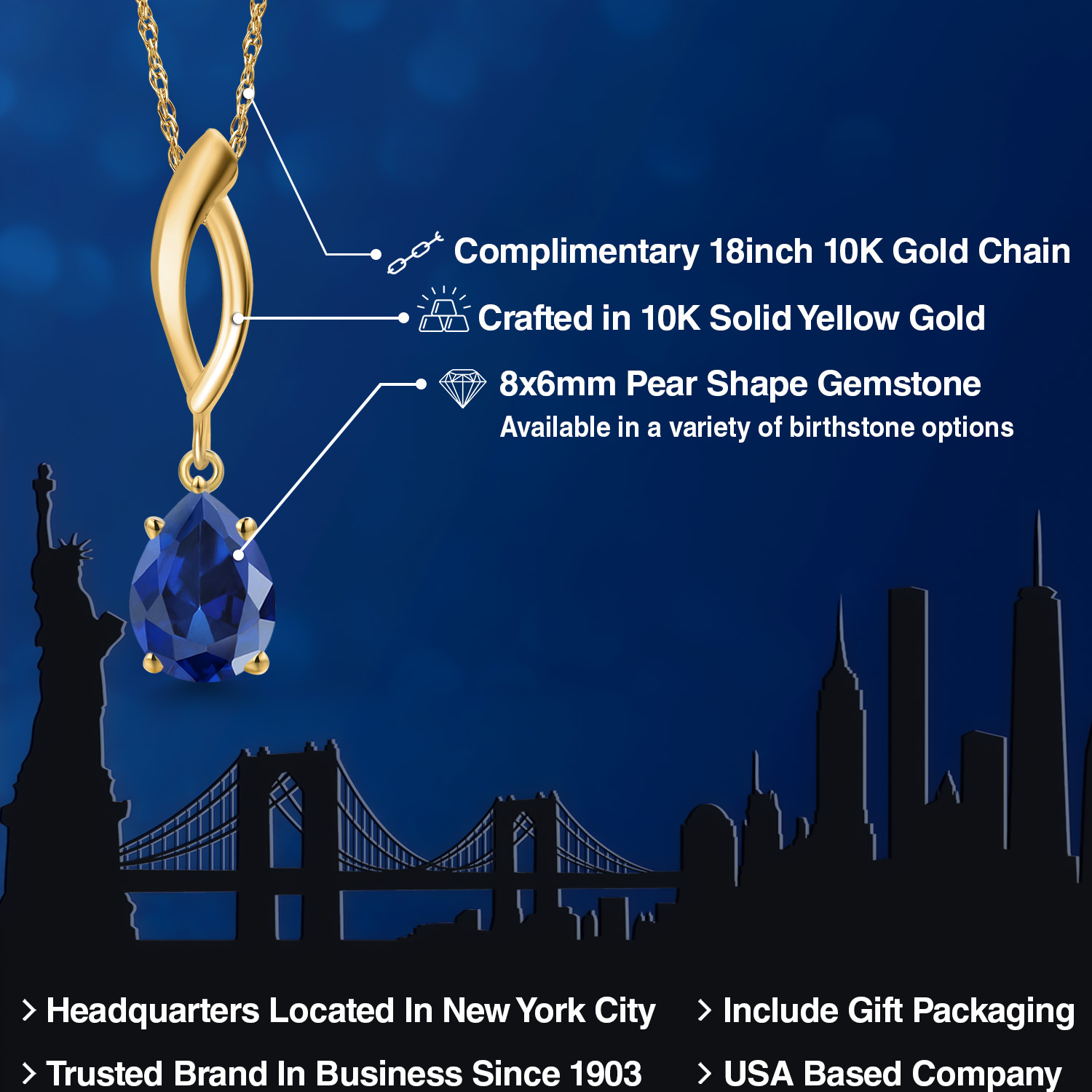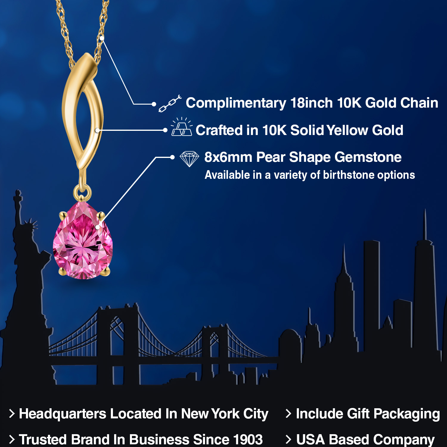 ELEGANT INFINITY DESIGN: This 10K yellow gold pendant necklace features a graceful infinity motif, showcasing a stunning 8X6MM pear-shaped gemstone birthstone, creating a timeless and sophisticated accessory.