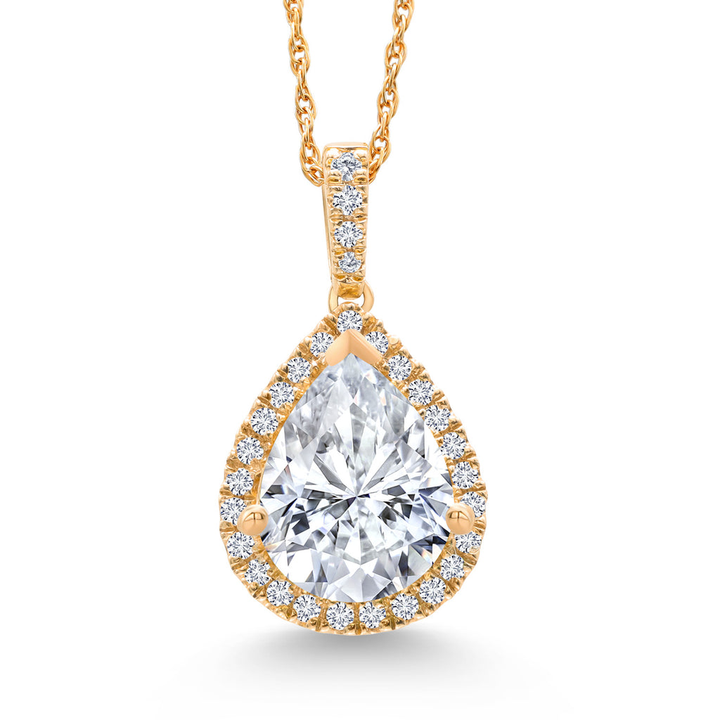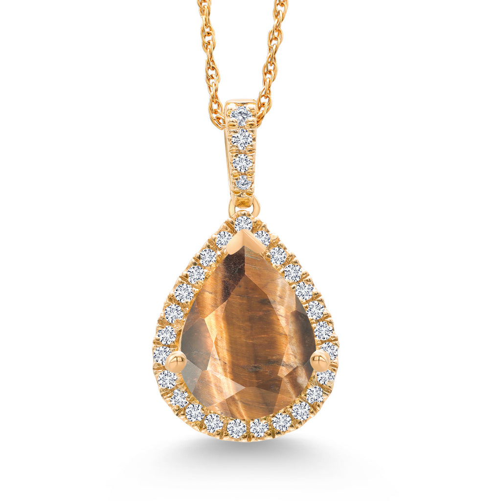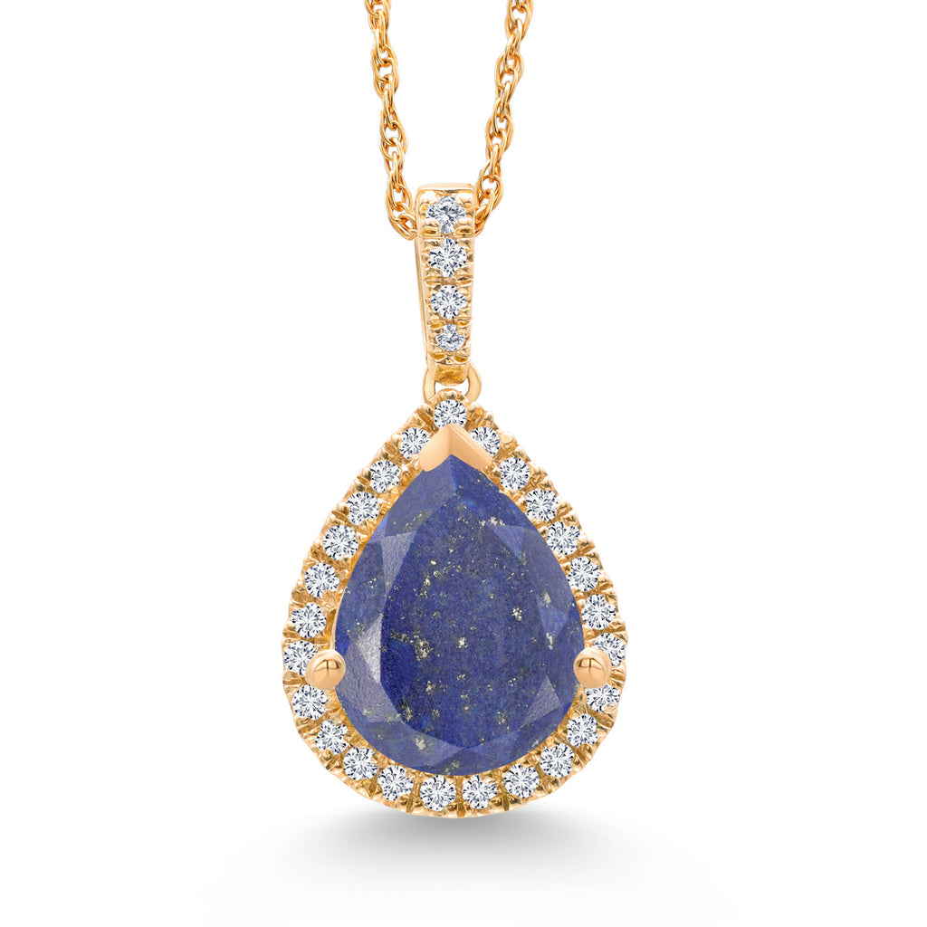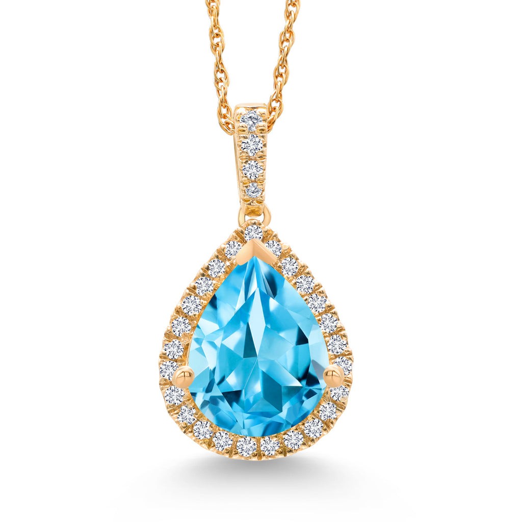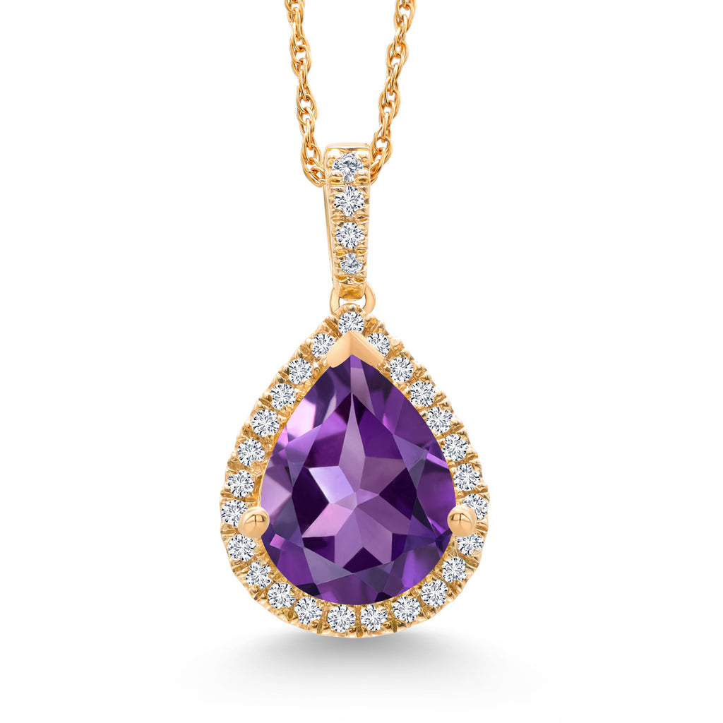 ELEGANT TEARDROP DESIGN: The 10K Yellow Gold 9x7MM Pear Shape Gemstone Birthstone and White Lab Grown Diamond Necklace features a stunning pear-shaped gemstone surrounded by a halo of sparkling white lab grown diamonds. This teardrop halo necklace for women exudes elegance and sophistication, making it the perfect accessory for any occasion.