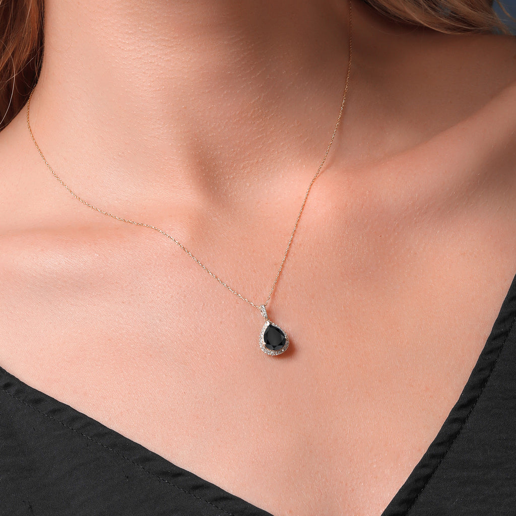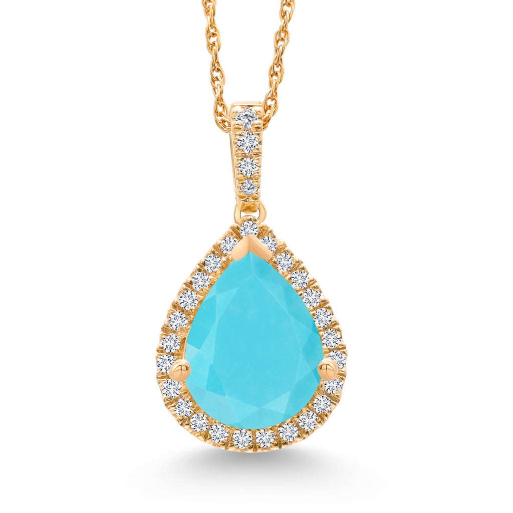 HIGH-QUALITY MATERIALS: Crafted from 10K yellow gold, this necklace combines durability with timeless appeal. The 9x7MM pear-shaped gemstone is carefully selected for its vibrant color and brilliance, while the lab grown diamonds provide exceptional sparkle, ensuring a high-quality piece that will be cherished for years to come.