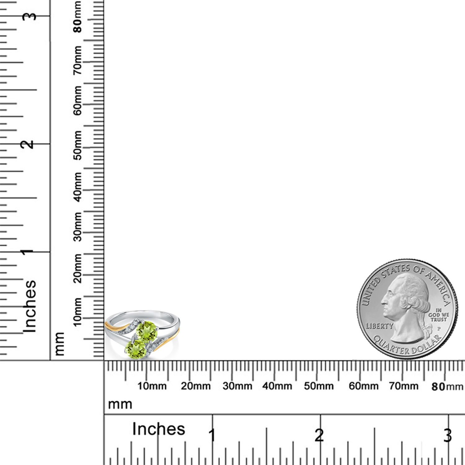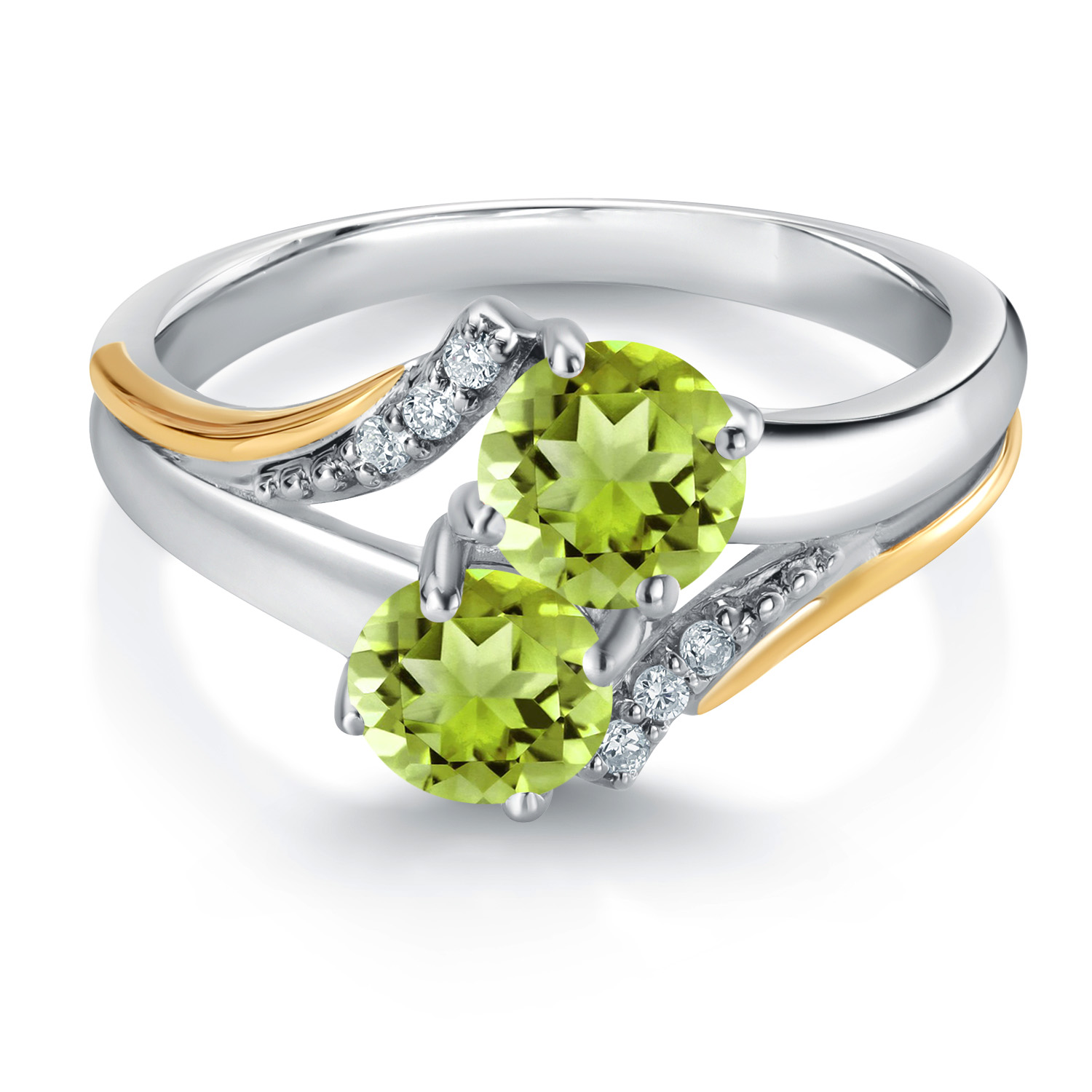10K Yellow Gold and 925 Silver Green Peridot and White Lab Grown Diamond Accent Engagement Ring For Women (1.13 Cttw, Gemstone August Birthstone, Round 5MM)
