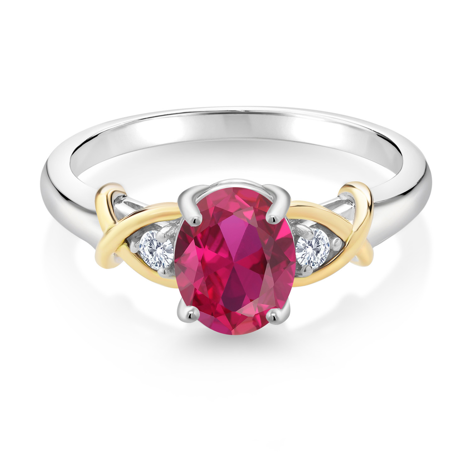 VIBRANT OVAL RED CREATED RUBY CENTERPIECE: The focal point of this ring is the stunning oval-cut Red Created Ruby, measuring 8x6mm. The deep red hues of the Created Ruby evoke passion and romance, making it a perfect symbol of love and elegance.