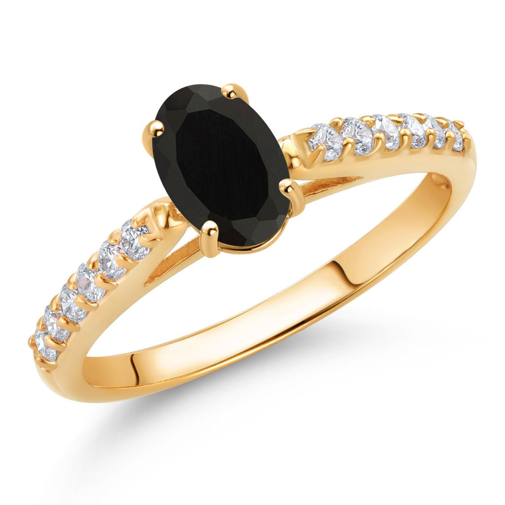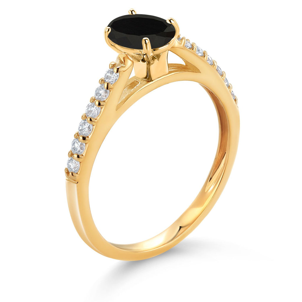 10K Yellow Gold Black Onyx and White Lab Grown Diamond Engagement Ring For Women (0.88 Cttw, Oval 7X5MM, Gemstone December Birthstone, Available In Size 5, 6, 7, 8, 9)