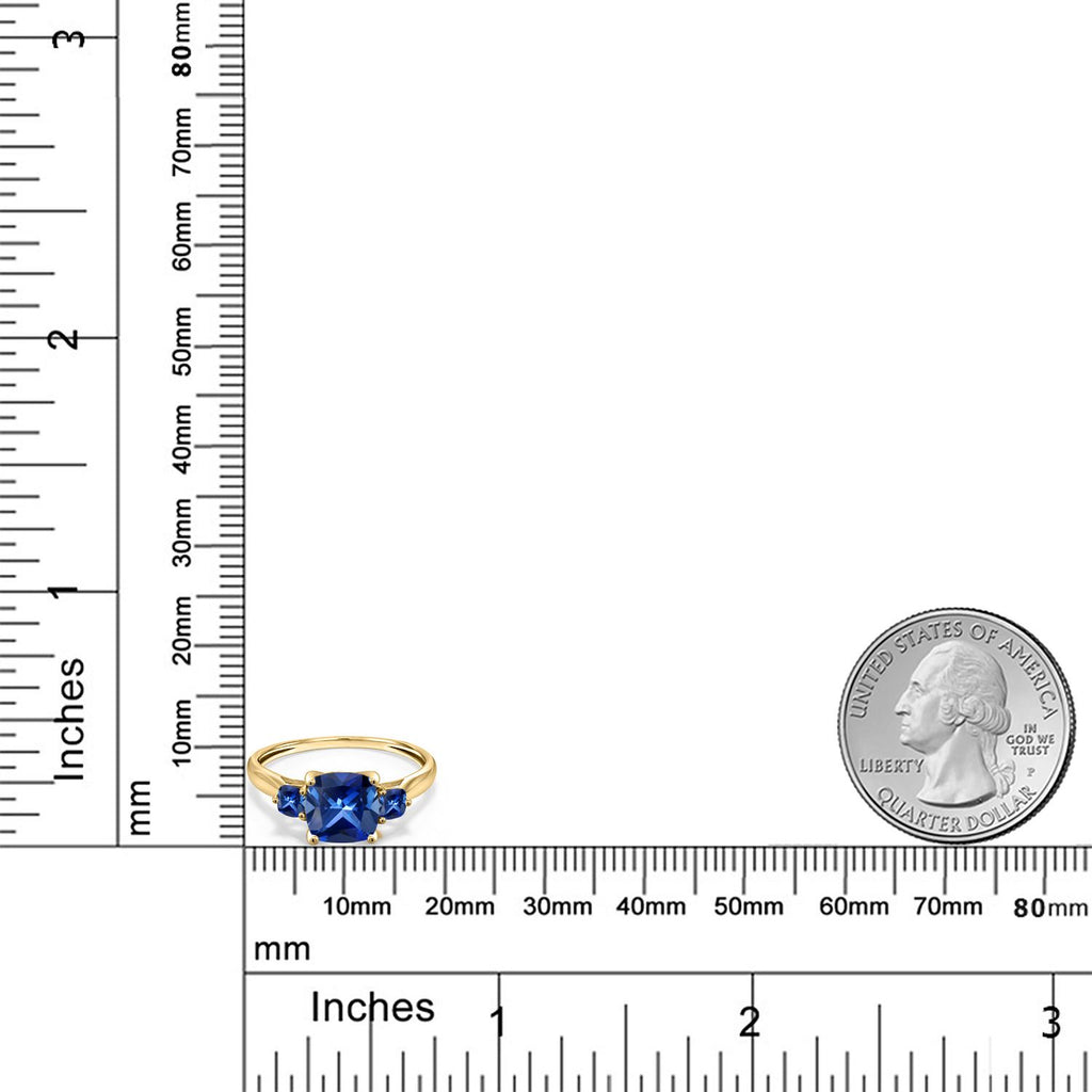 MEASUREMENTS: 7x7mm Cushion Heat-Treated Blue Created Sapphire, 3x3mm Cushion Heat-Treated Blue Created Sapphire. Total Carat Weight is 2.26 cttw