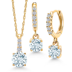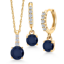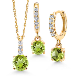 Gem Stone King 10K Yellow Gold Gemstone Birthstone and Lab Grown Diamond Pendant and Earrings Jewelry Set for Women | Round 5MM and 4MM | With 18 Inch Chain | Fine Jewelry for Her Mom Wife