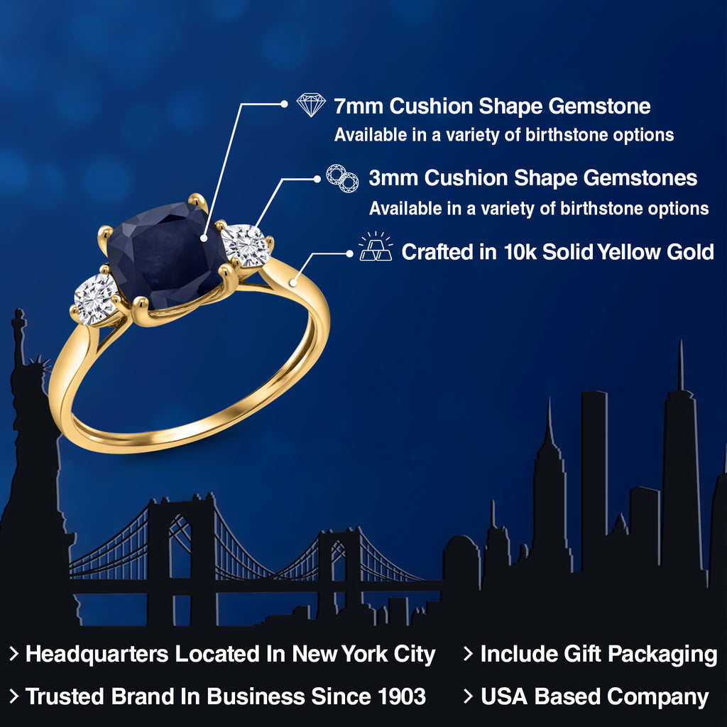 2-Tone Engagement Ring For Women | 925 Silver and 10K Yellow Gold | Gemstone Birthstone | 6MM Cushion Cut | Wedding Anniversary Promise Ring | Available In Size 5, 6, 7, 8, 9