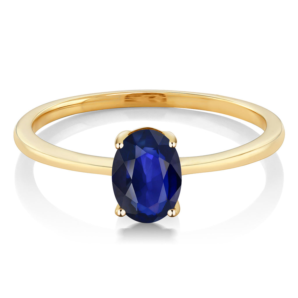 10K Yellow Gold Blue Sapphire Solitaire Engagement Ring | 0.57 Cttw | Oval 7X5MM | Gemstone September Birthstone | Wedding Engagement Anniversary Promise Ring For Women