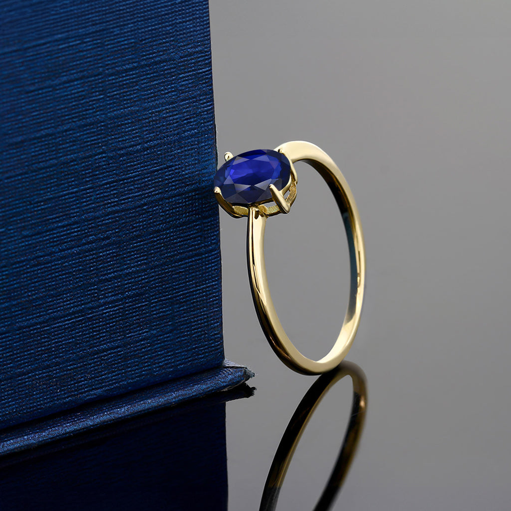LUXURIOUS 10K YELLOW GOLD SETTING: Crafted from high-quality 10K yellow gold, this ring provides a warm and classic backdrop that beautifully complements the vivid blue sapphire. The gold setting adds both durability and timeless elegance.