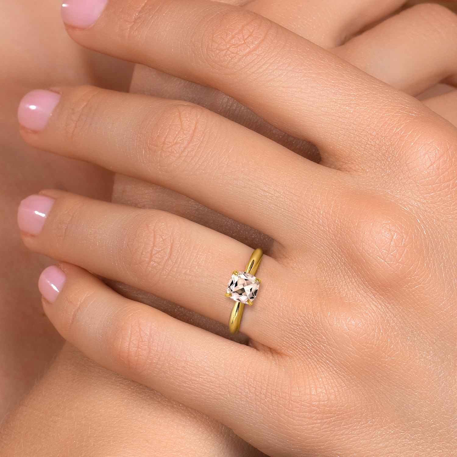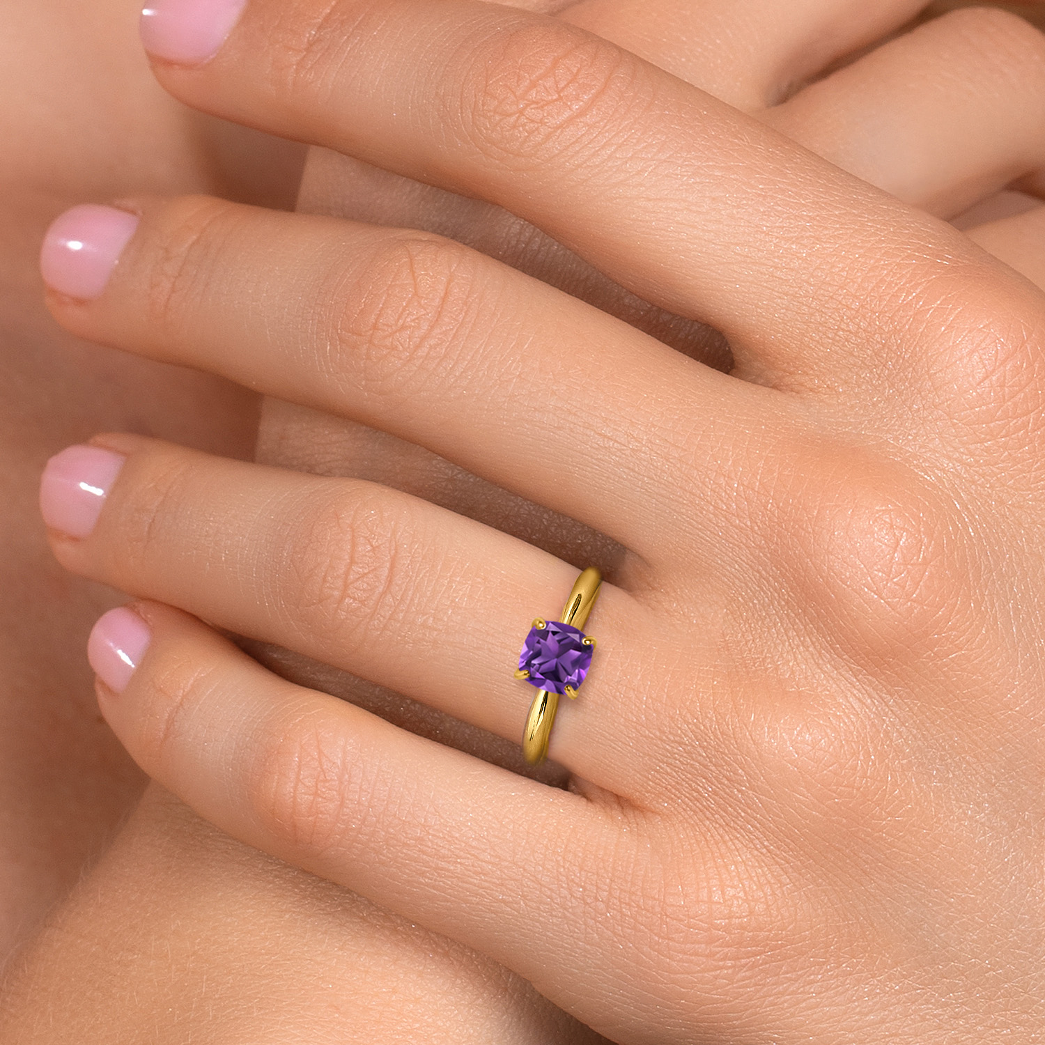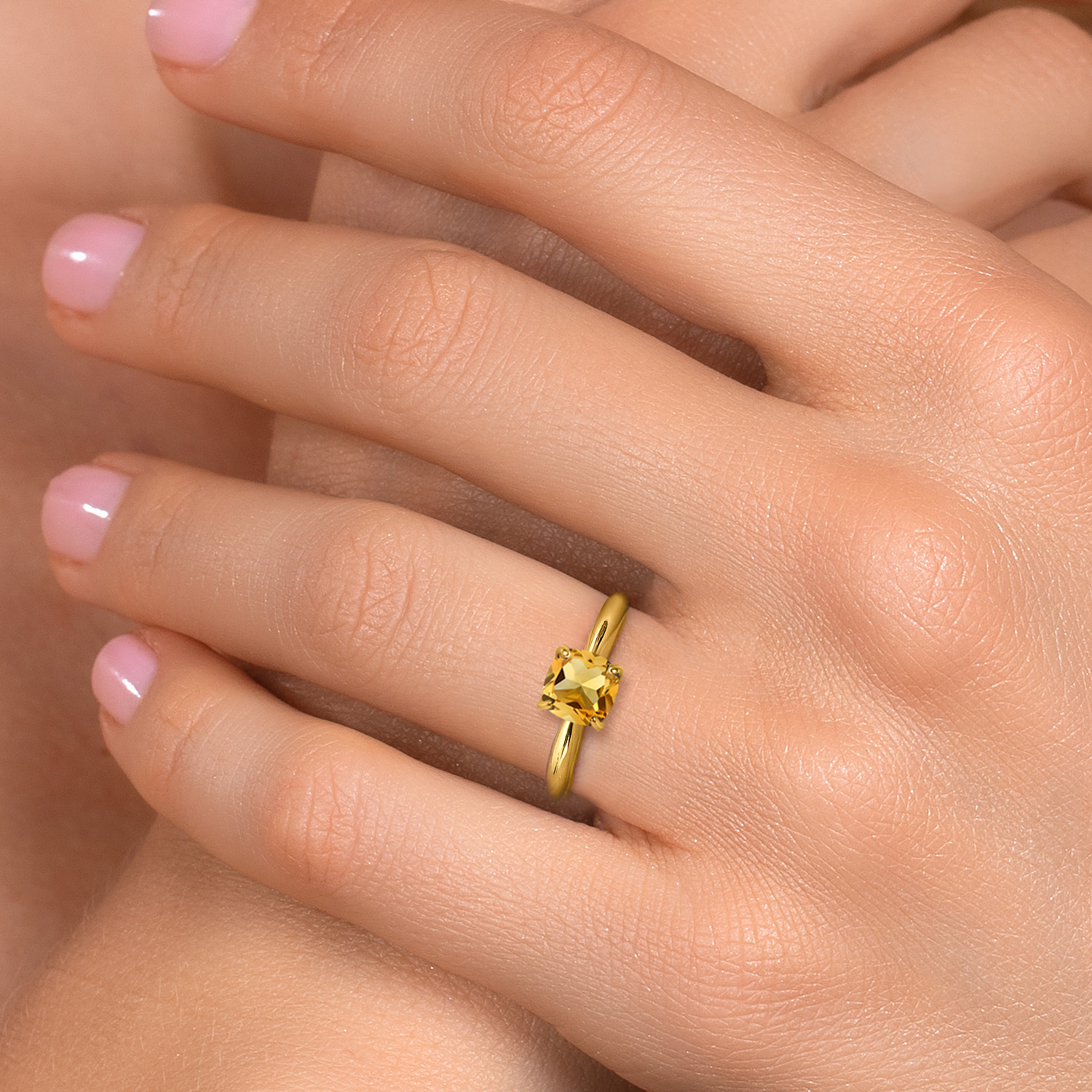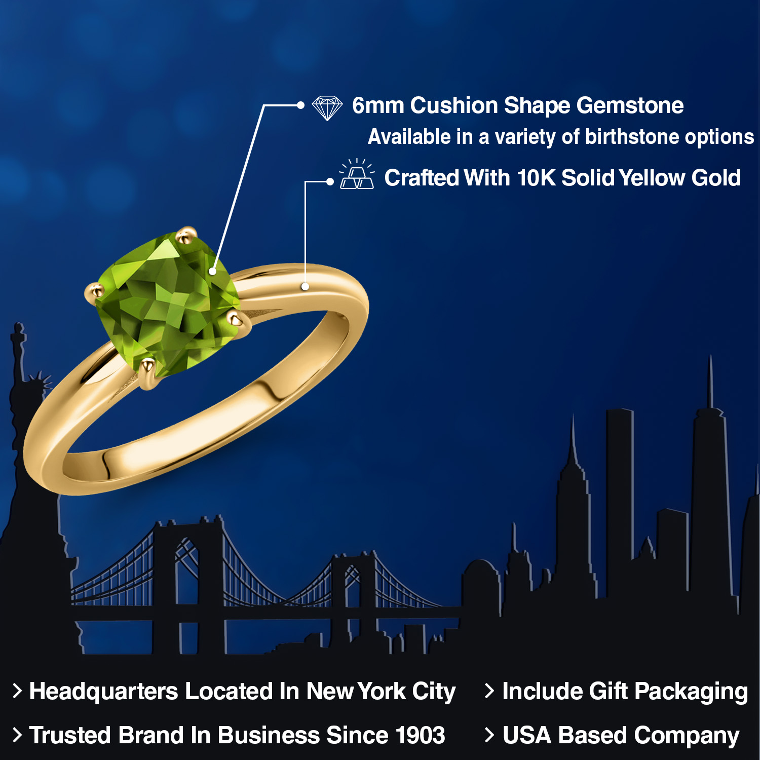 CAPTIVATING CUSHION CUT GEMSTONE: This elegant 10K yellow gold engagement ring showcases a stunning 6MM cushion-shaped gemstone, celebrated for its unique blend of classic elegance and modern sophistication. Available in a variety of birthstones, each gem radiates vibrant color and exceptional clarity, making it a perfect choice for commemorating special moments. The cushion cut enhances light reflection, resulting in a dazzling display of brilliance and fire that captivates the heart.