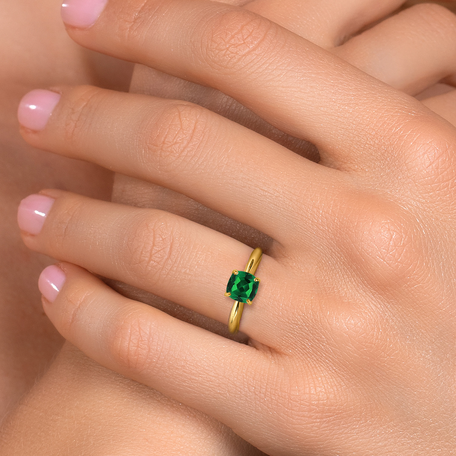 2-Tone Engagement Ring For Women | 925 Silver and 10K Yellow Gold | Gemstone Birthstone | 6MM Cushion Cut | Wedding Anniversary Promise Ring | Available In Size 5, 6, 7, 8, 9
