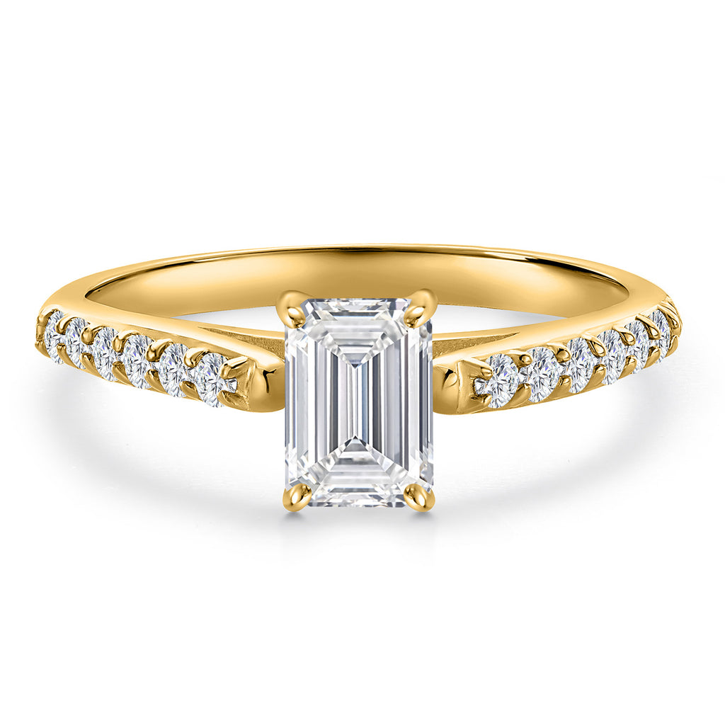 0.83 CARAT EMERALD-CUT LAB GROWN DIAMOND: This engagement ring features a radiant 6x4MM emerald-cut lab grown diamond totaling 0.83 carats, celebrated as the April birthstone. With its sleek step facets and elongated silhouette, the center stone shines with exceptional brilliance, DEF color, and VVS–VS clarity—offering timeless elegance with sustainable beauty