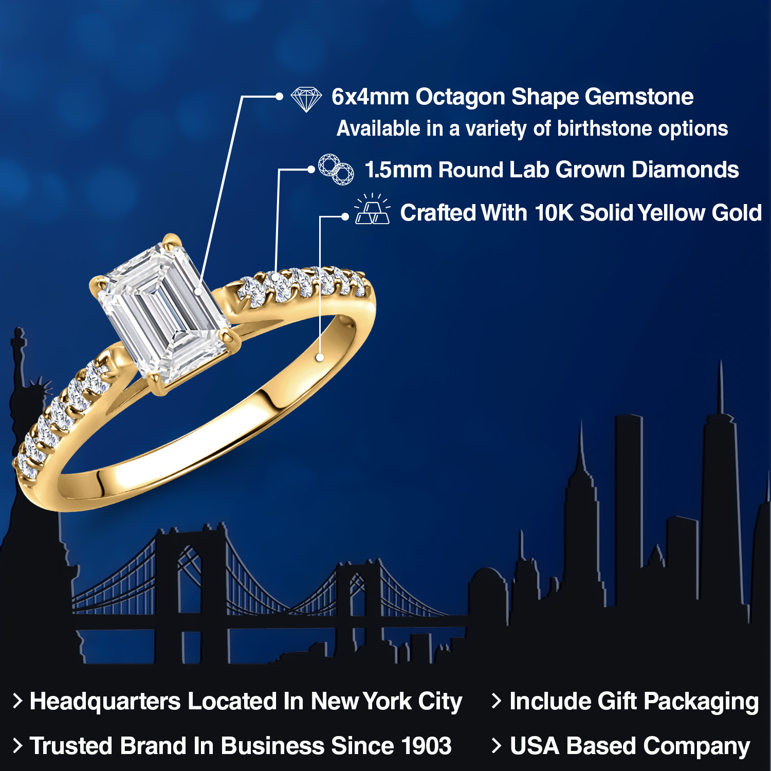 SOLID 10K YELLOW GOLD WITH LASTING LUSTER: Crafted from genuine 10K yellow gold, the setting provides a warm, enduring glow that enhances the diamond’s crisp clarity. Hypoallergenic and nickel-free, this precious metal is ideal for daily wear, offering a smooth, comfortable fit with long-lasting shine and heirloom-worthy durability.