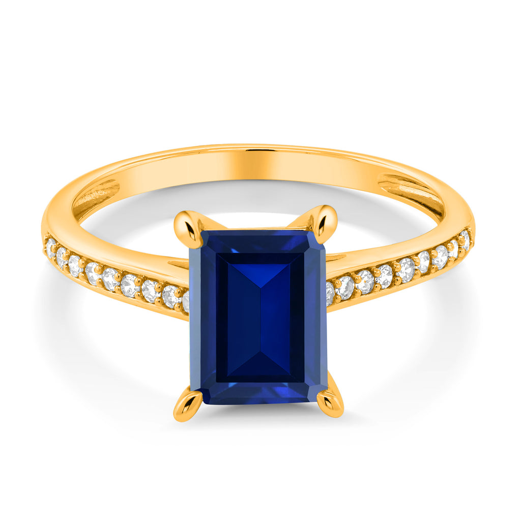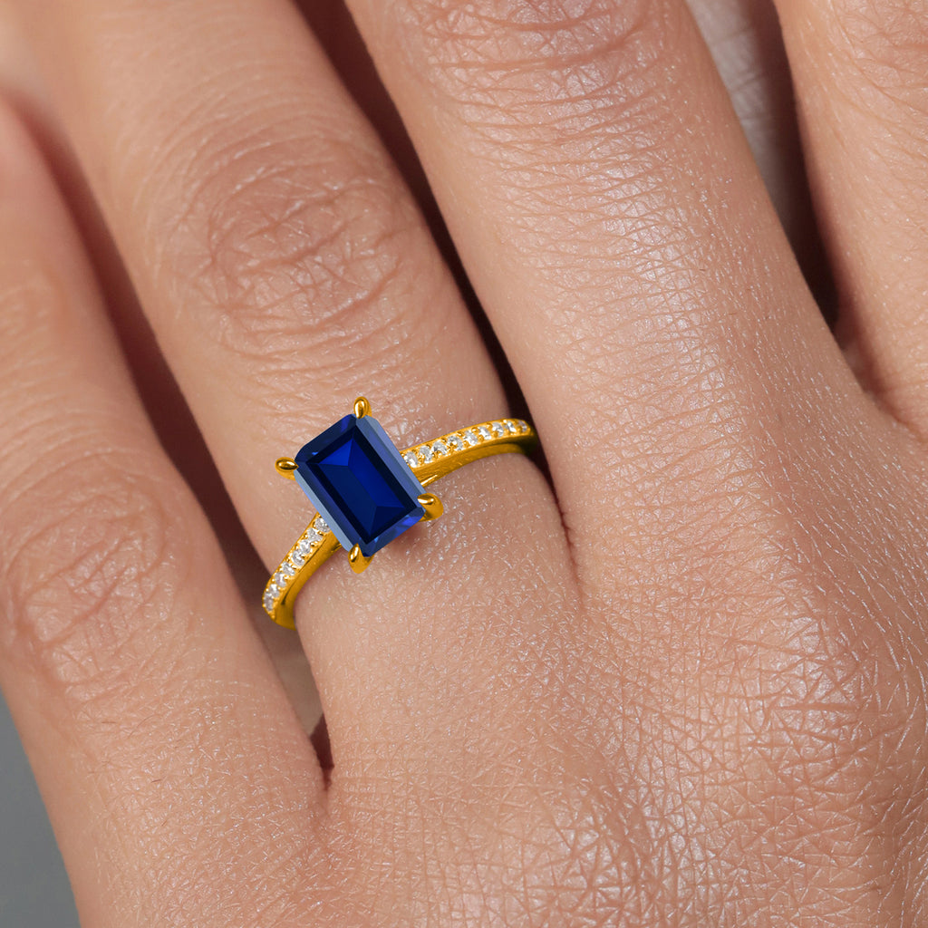 STRIKING EMERALD CUT GEMSTONE: This exquisite engagement ring showcases an 8X6MM emerald-cut gemstone, available in various birthstones. The refined emerald cut emphasizes the stone's rich color and clarity, making it a focal point of this sophisticated piece, perfect for those who value timeless elegance.